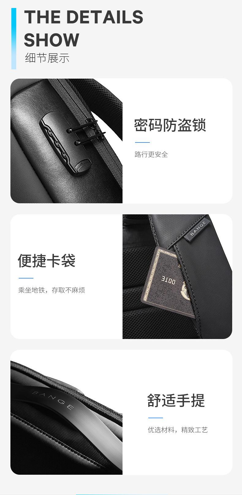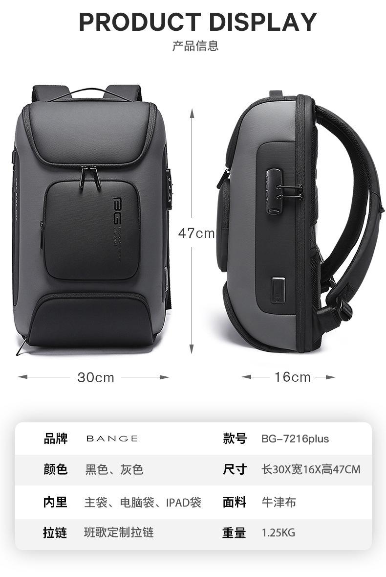 BANGE Nueva mochila para hombre de gran capacidad, mochila para computadora de negocios, mochila para viajes al aire libre, mochila deportiva para coche