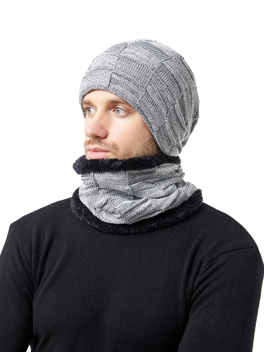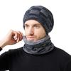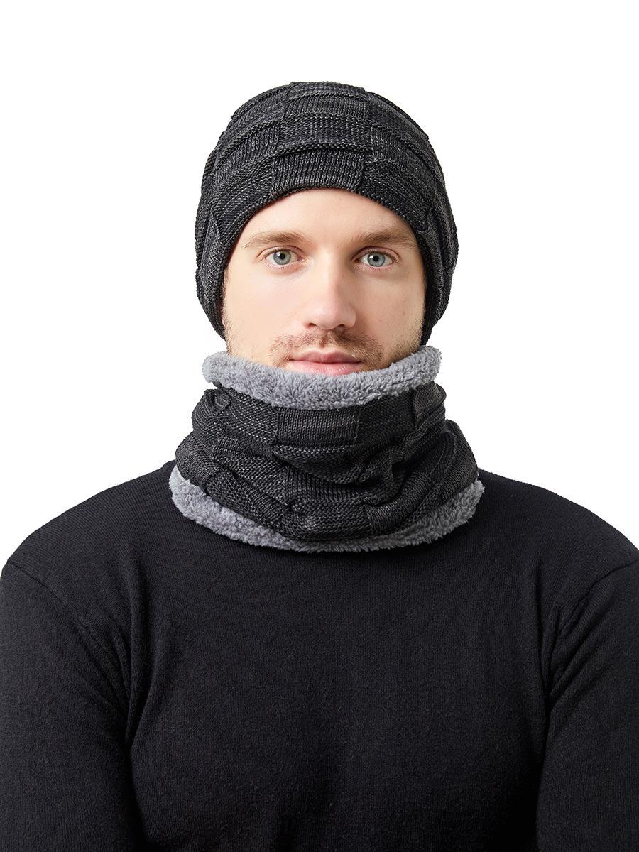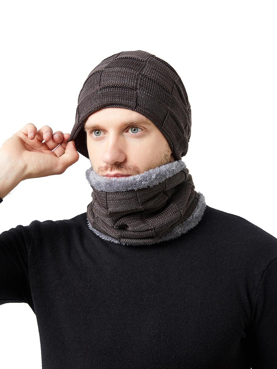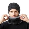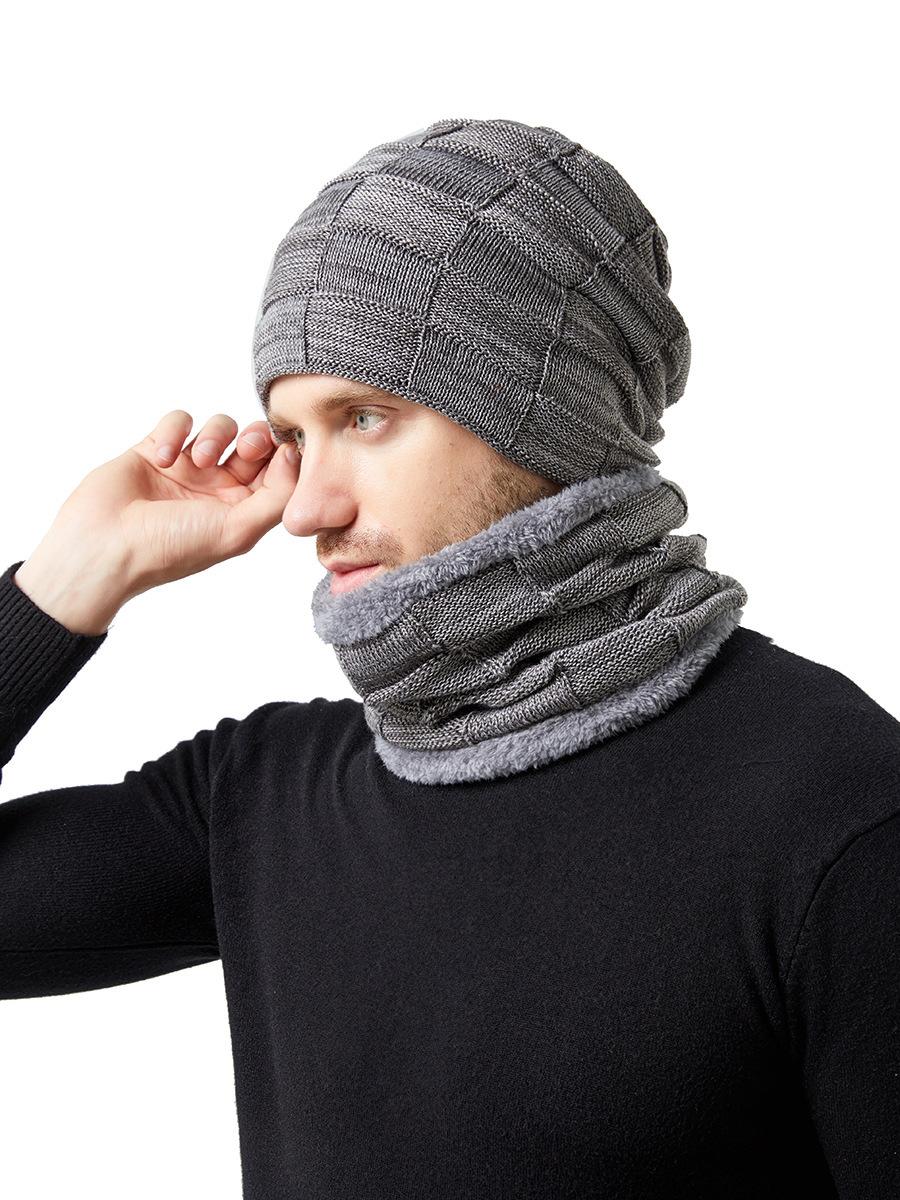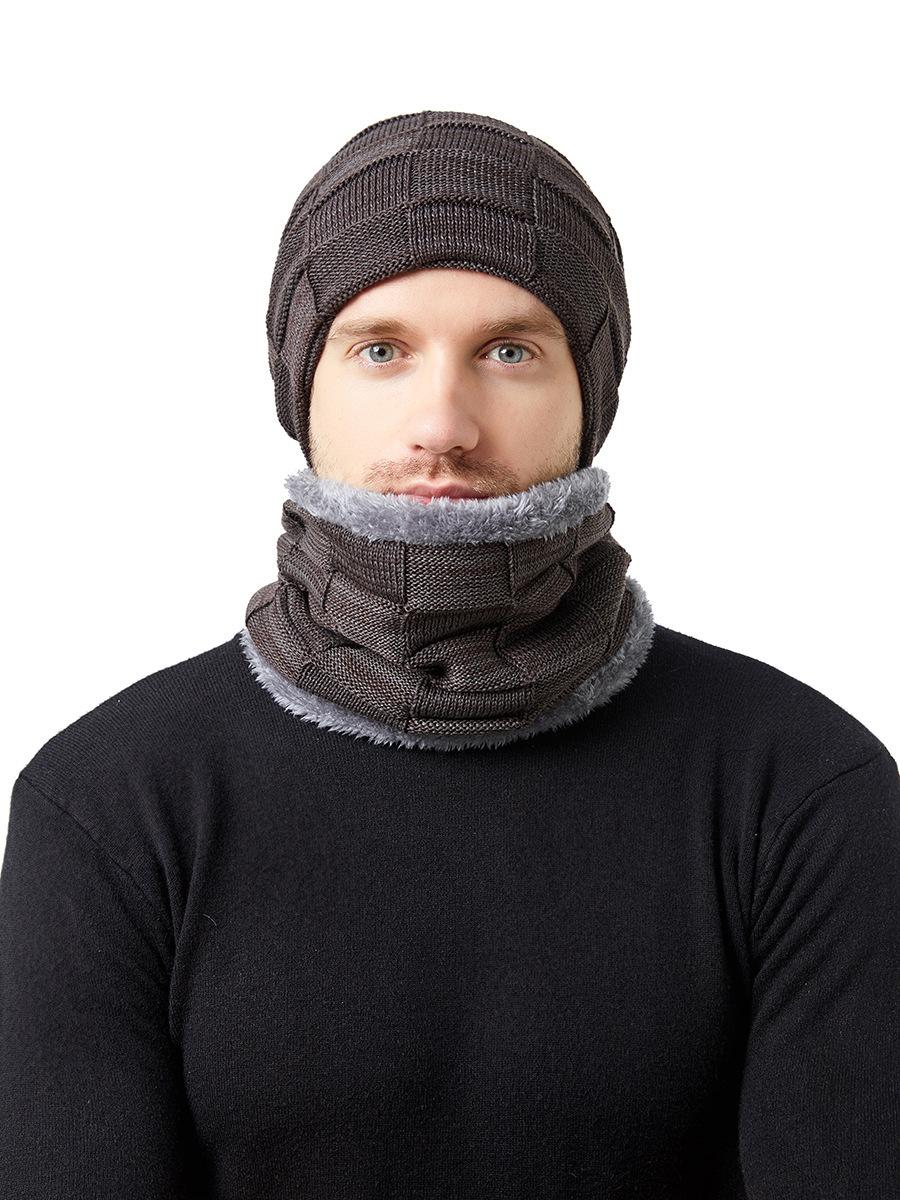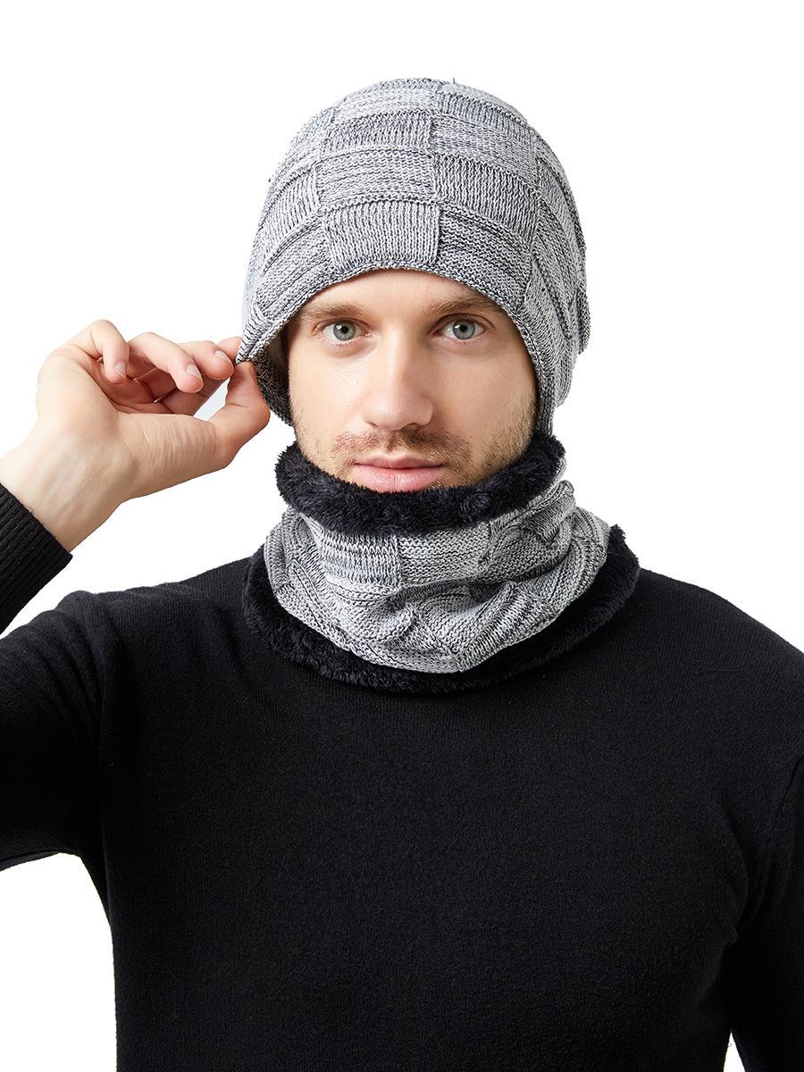 Gorro de hombre de otoño e invierno de Amazon, bicolor, cuadrado, forrado de vellón, gorro de punto, bufanda, conjunto de dos piezas, gorro de pila para pareja