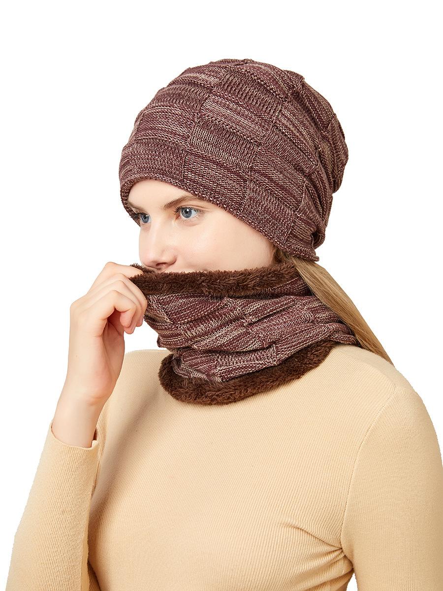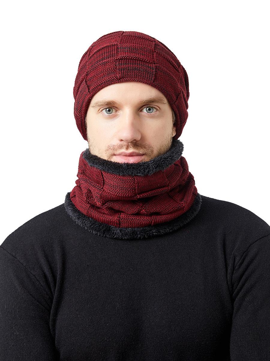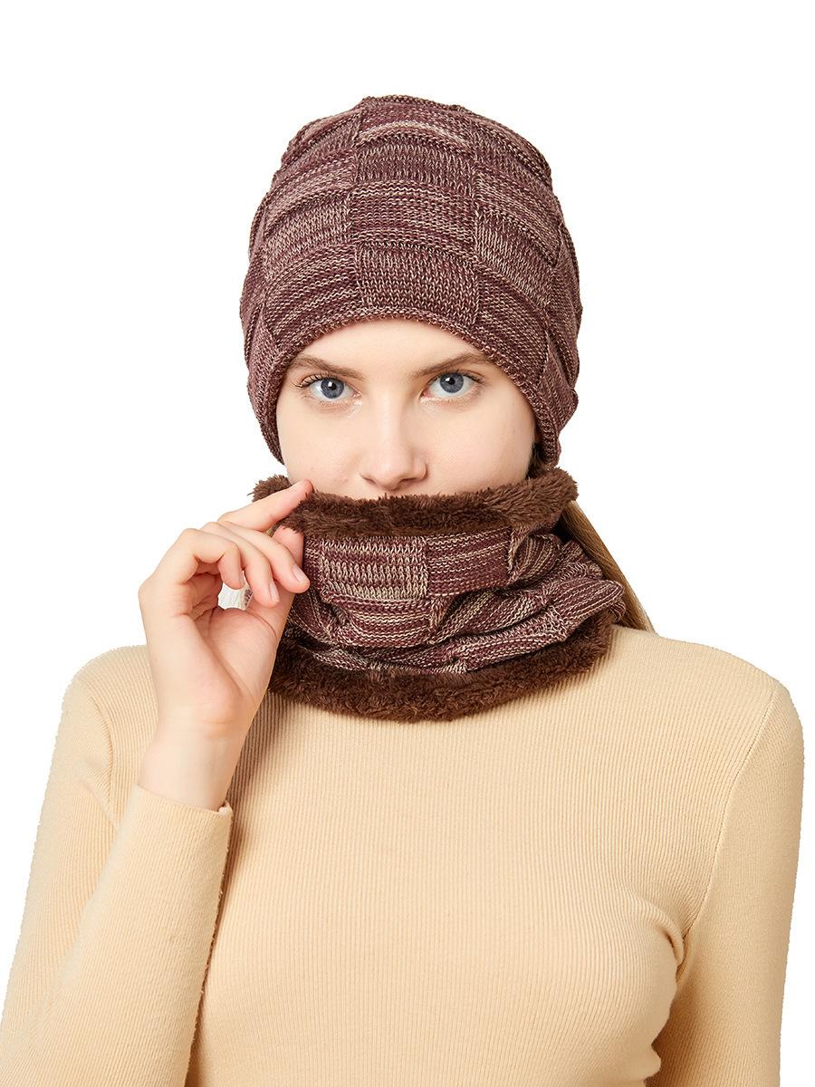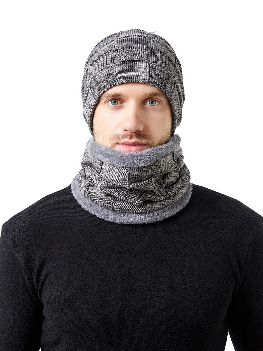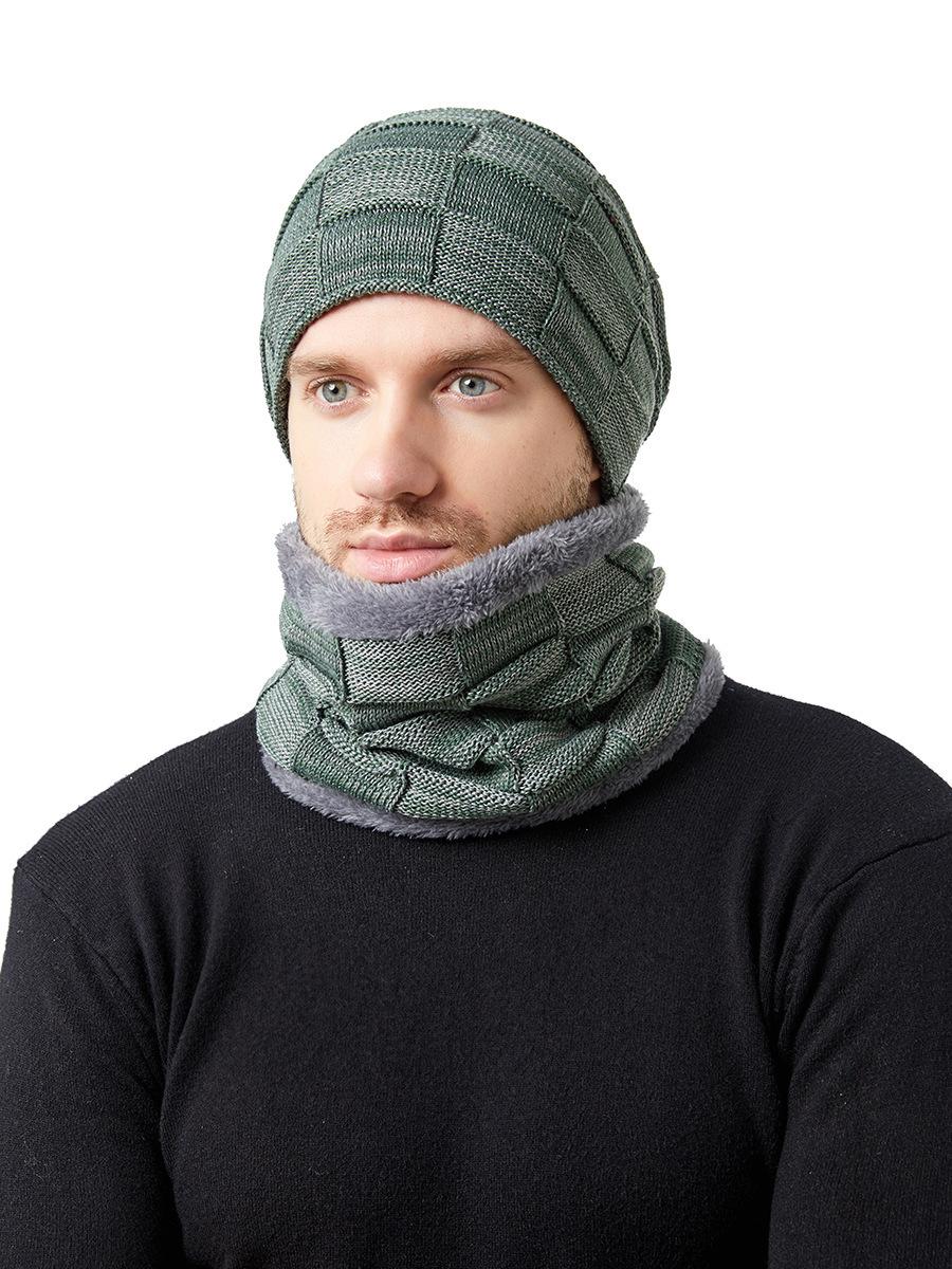 Gorro de hombre de otoño e invierno de Amazon, bicolor, cuadrado, forrado de vellón, gorro de punto, bufanda, conjunto de dos piezas, gorro de pila para pareja