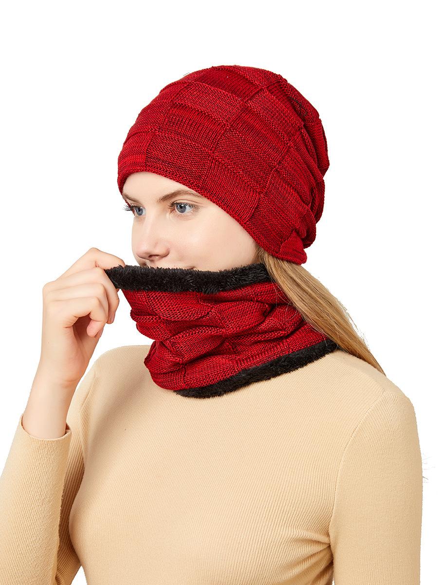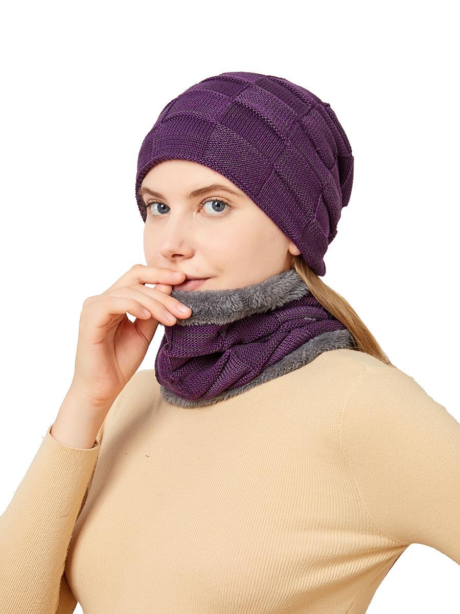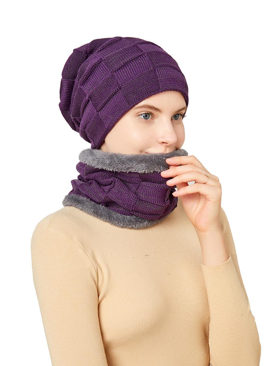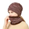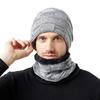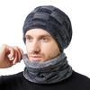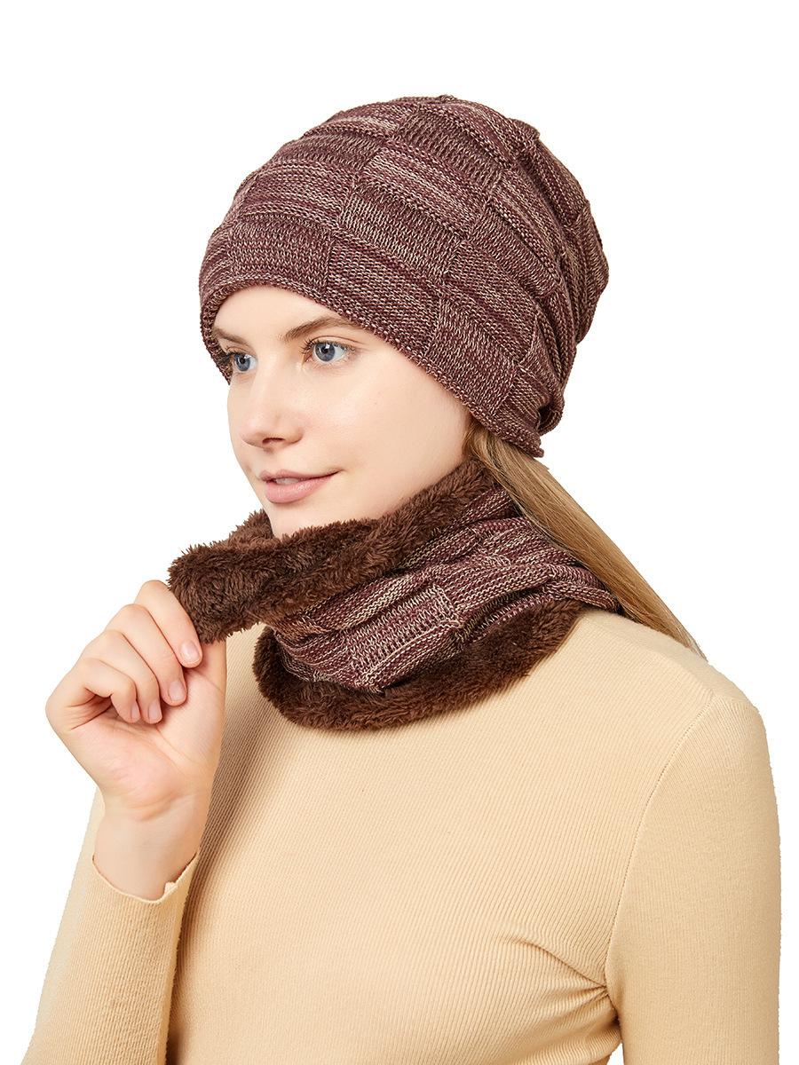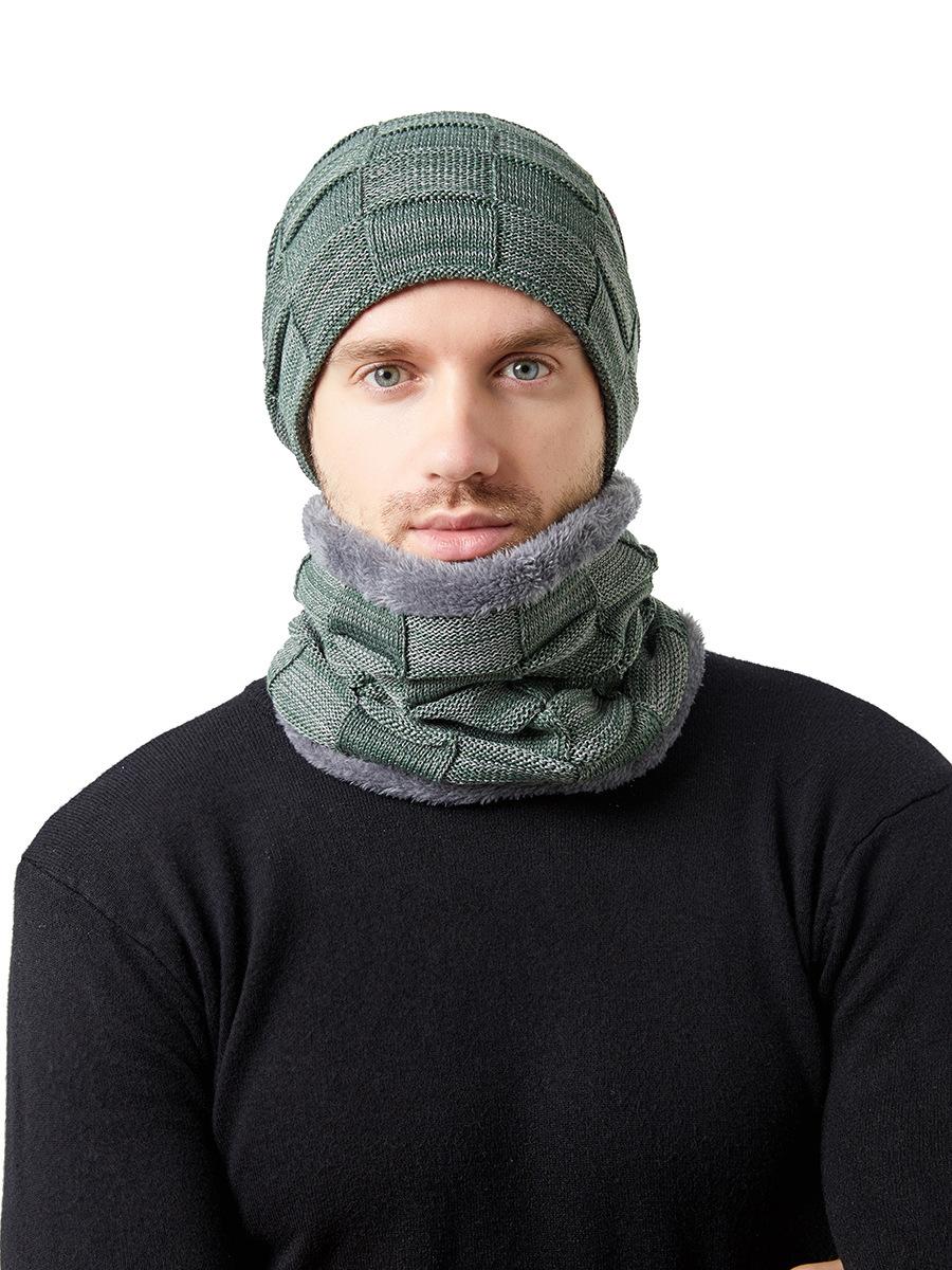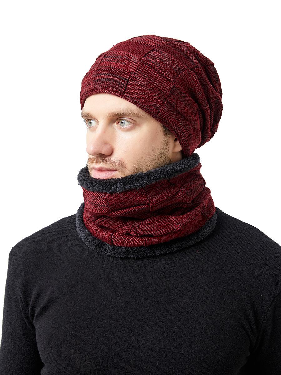 Gorro de hombre de otoño e invierno de Amazon, bicolor, cuadrado, forrado de vellón, gorro de punto, bufanda, conjunto de dos piezas, gorro de pila para pareja