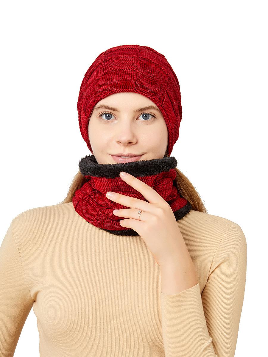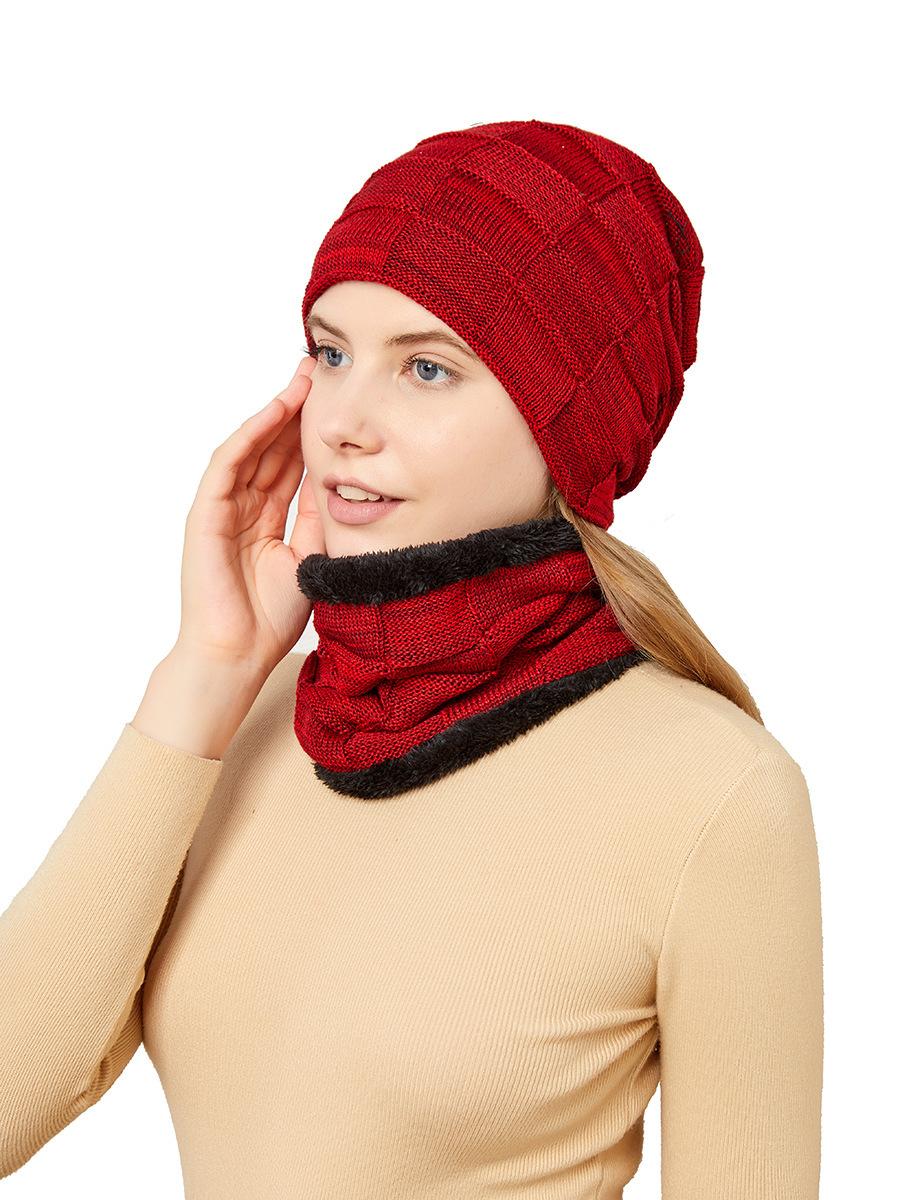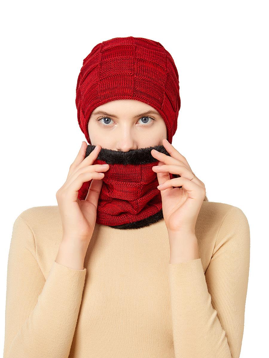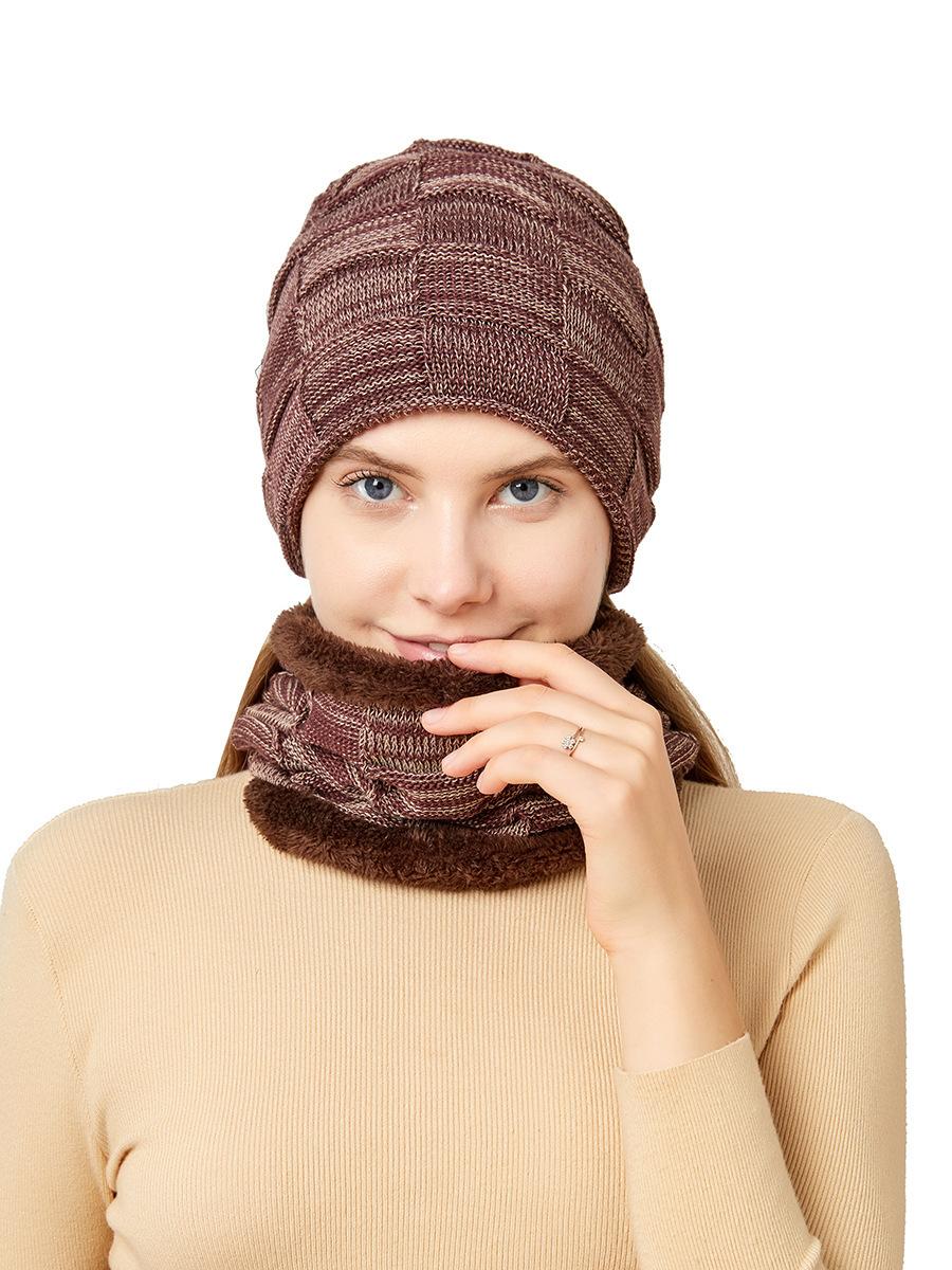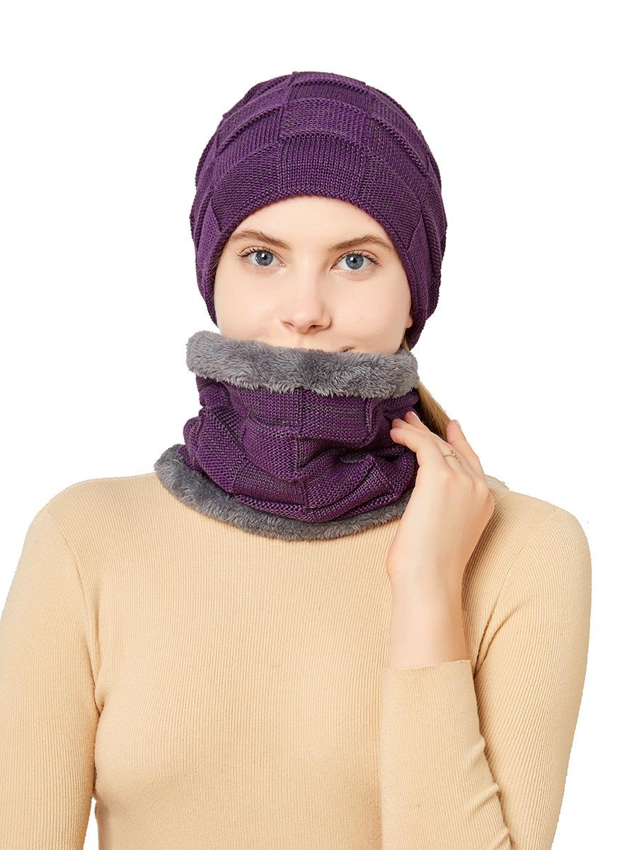 Gorro de hombre de otoño e invierno de Amazon, bicolor, cuadrado, forrado de vellón, gorro de punto, bufanda, conjunto de dos piezas, gorro de pila para pareja