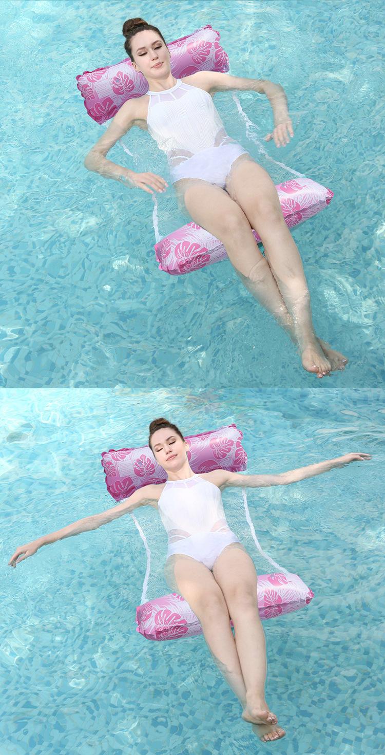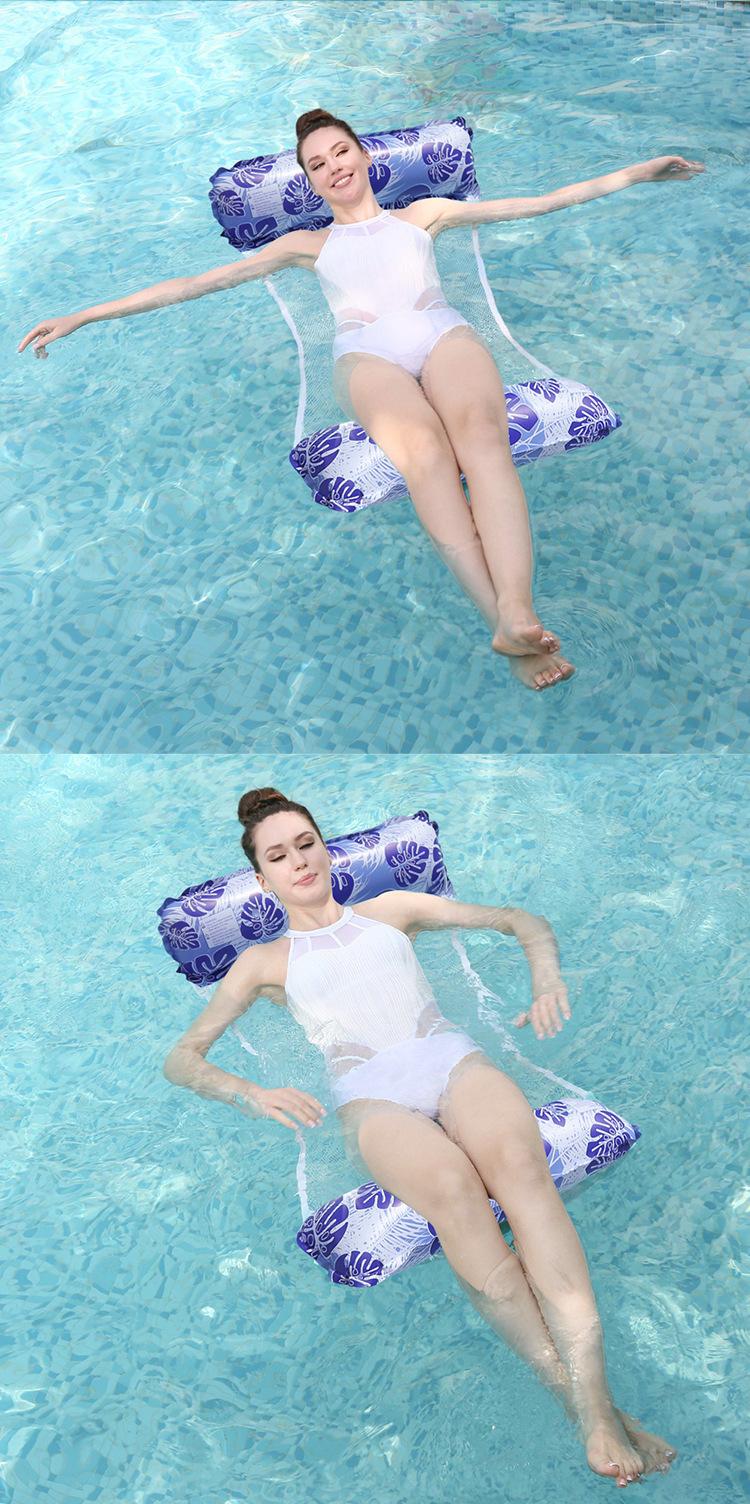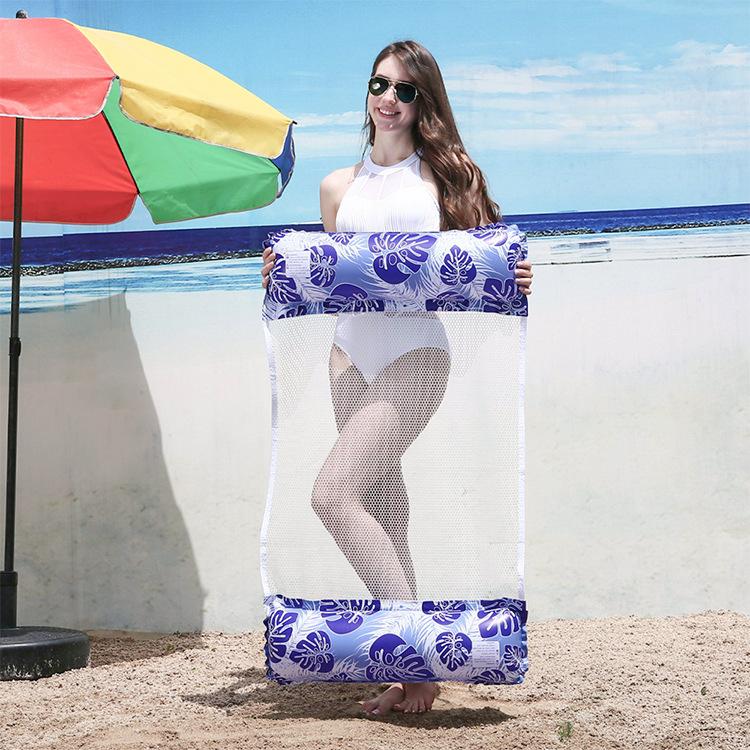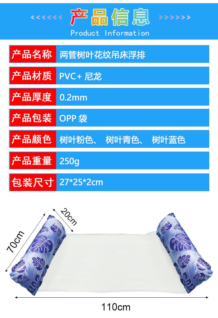 Piscina inflable de dos tubos con patrón de hojas, fila flotante, hamaca de agua plegable, reclinable individual, fila flotante, disponible en stock en el extranjero.
