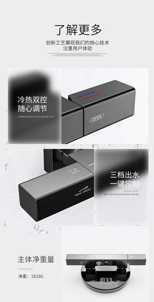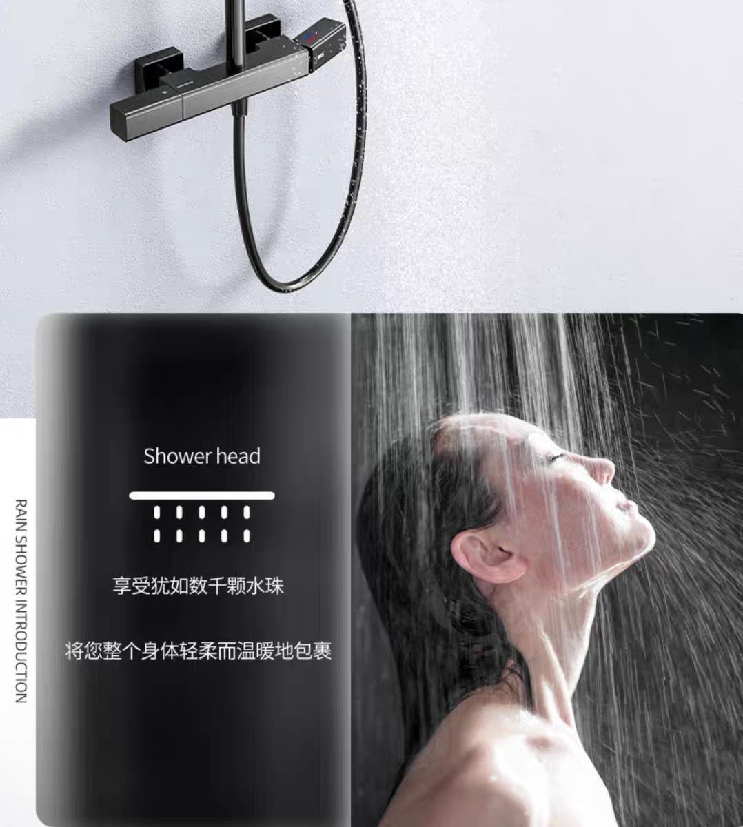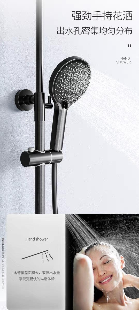 Cabezal de ducha de color gris pistola, apto para el hogar, almacenamiento de cobre, boquilla de ducha de baño, válvula mezcladora de baño, grifo de baño