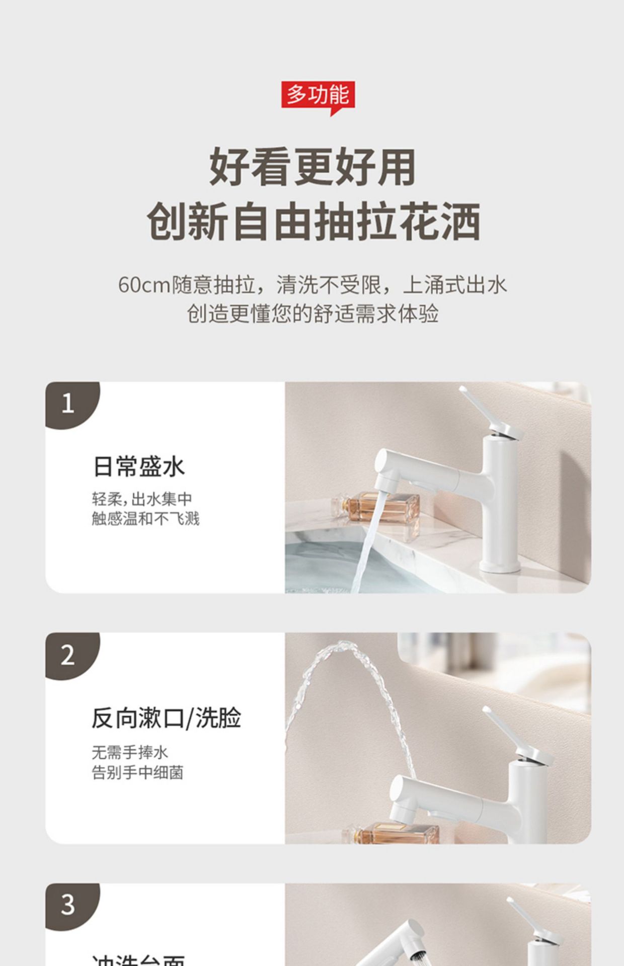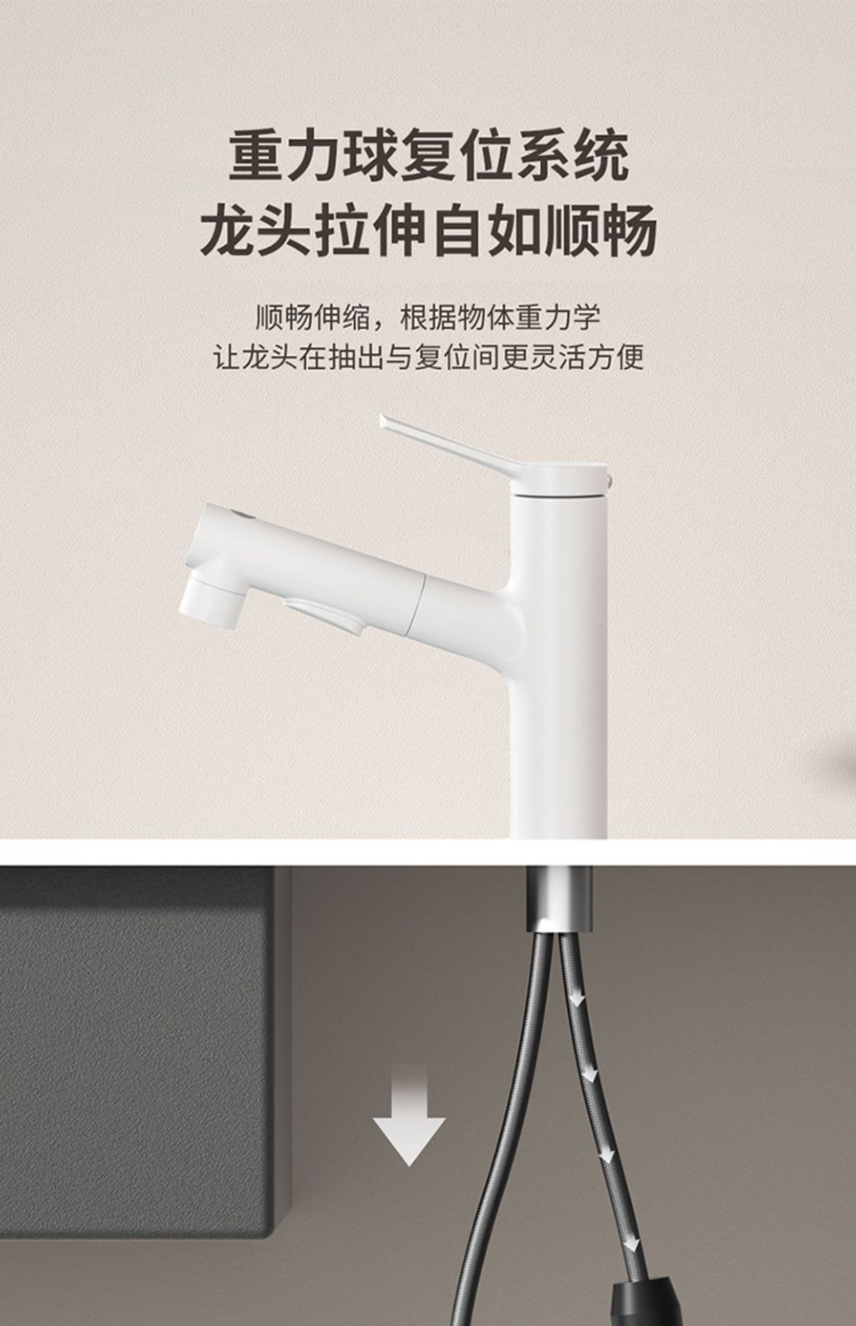 [Alloy] White-Upper water outlet pull faucet (a pair of piping)