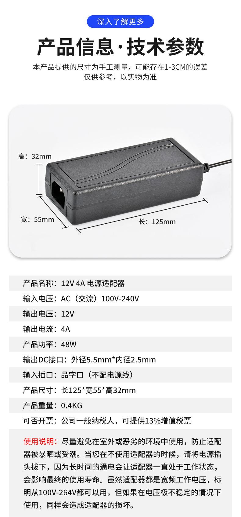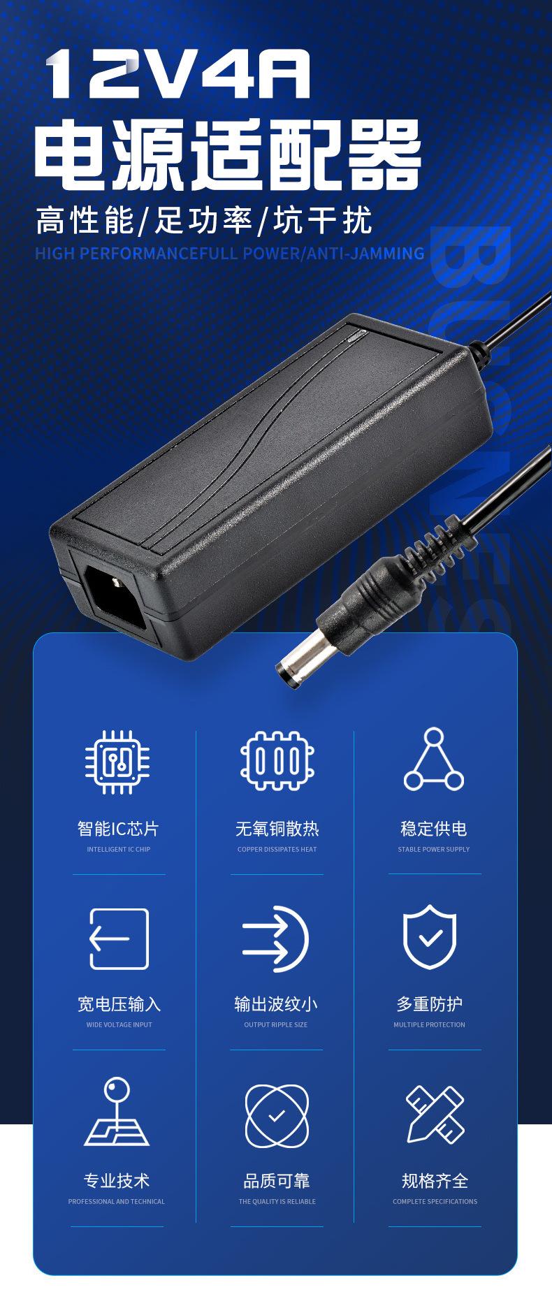 Adaptador de Corriente de Escritorio 12V4A 12V48W para Monitor/Tira de Luz LED Fuente de Alimentación Conmutada