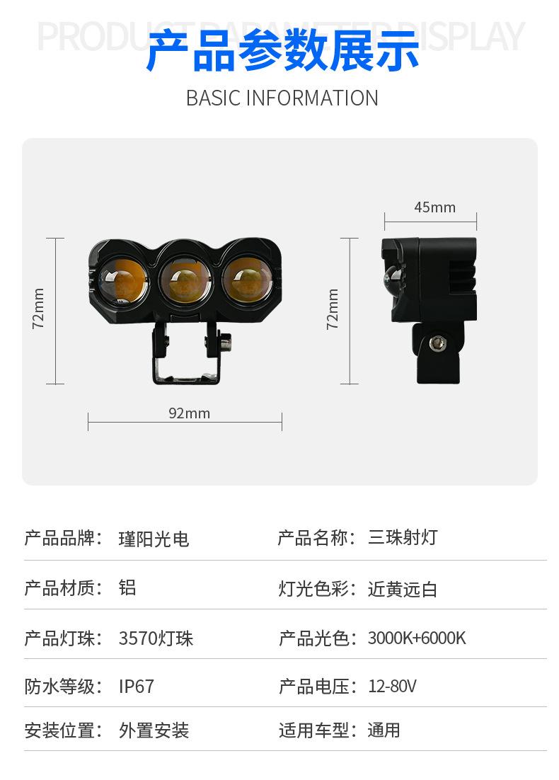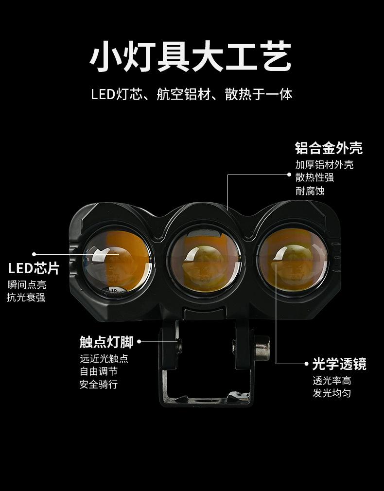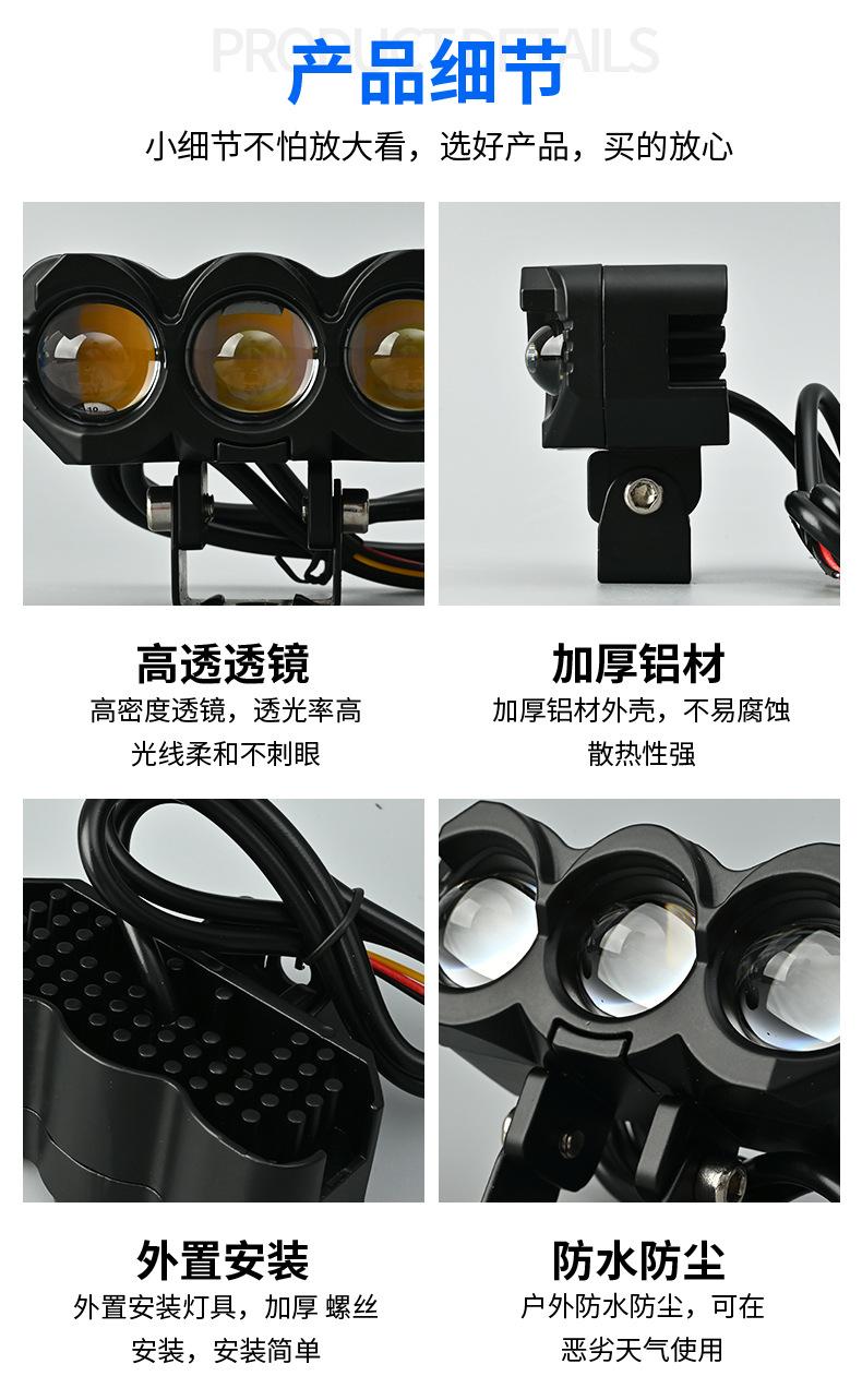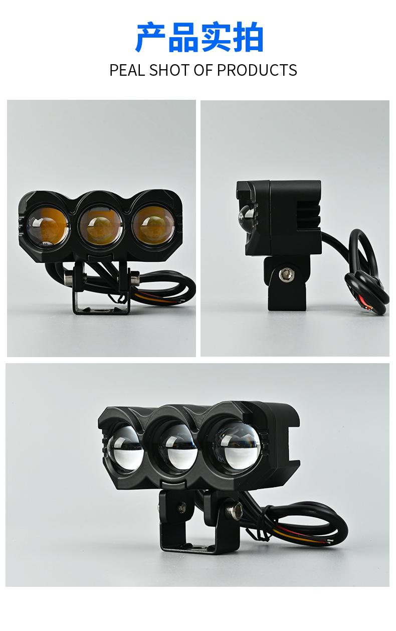 Foco LED de tres luces para motocicleta, luz de lejos y de cerca, faro externo para motocicleta eléctrica modificada
