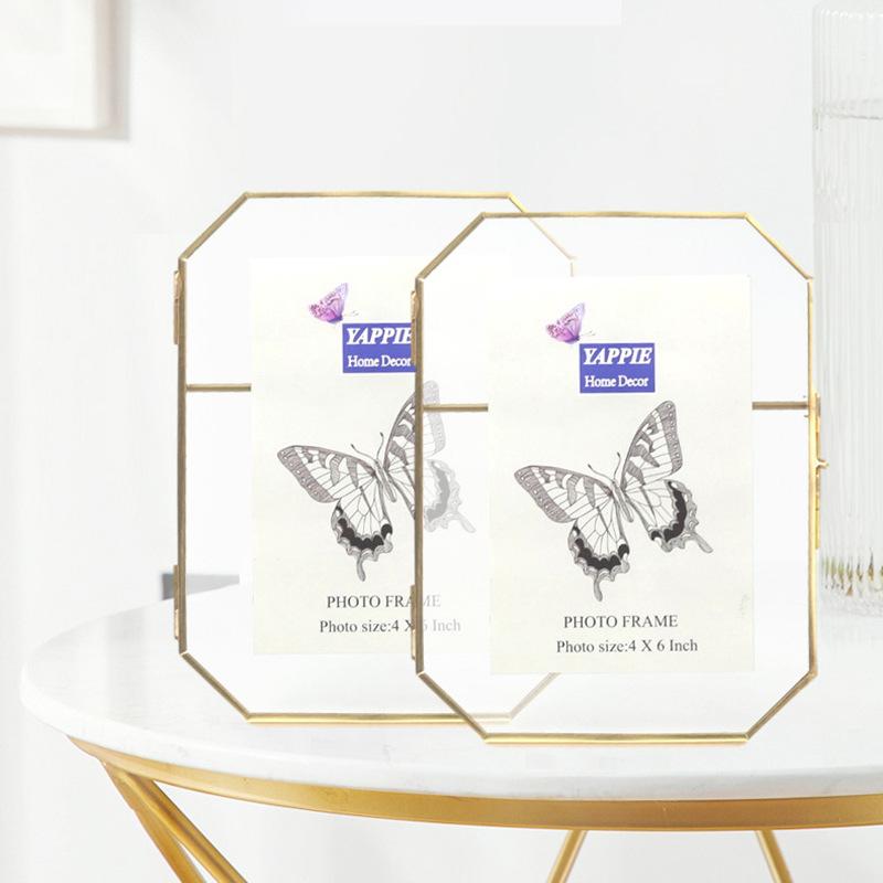 Compra Marco de Fotos de Vidrio Transparente Transfronterizo Espécimen de Planta DIY Flor Seca Colgante Pintura Marco de Fotos Geométrico Metal Latón Marco de Fotos Vidrio al por mayor en Joom.pro