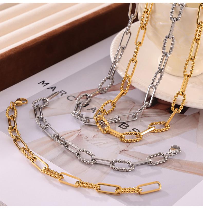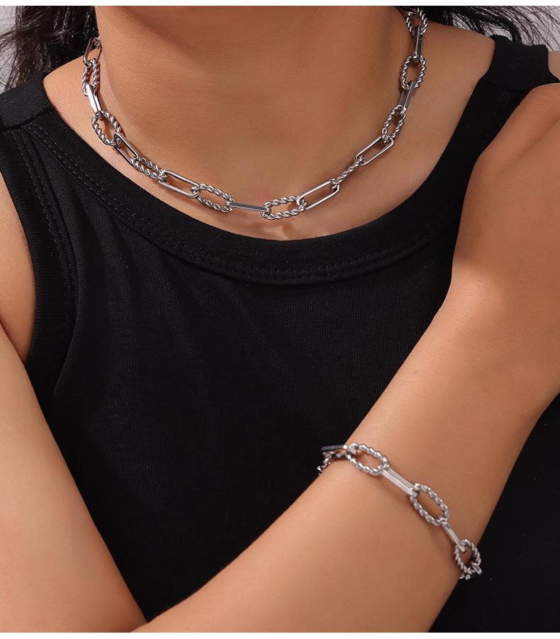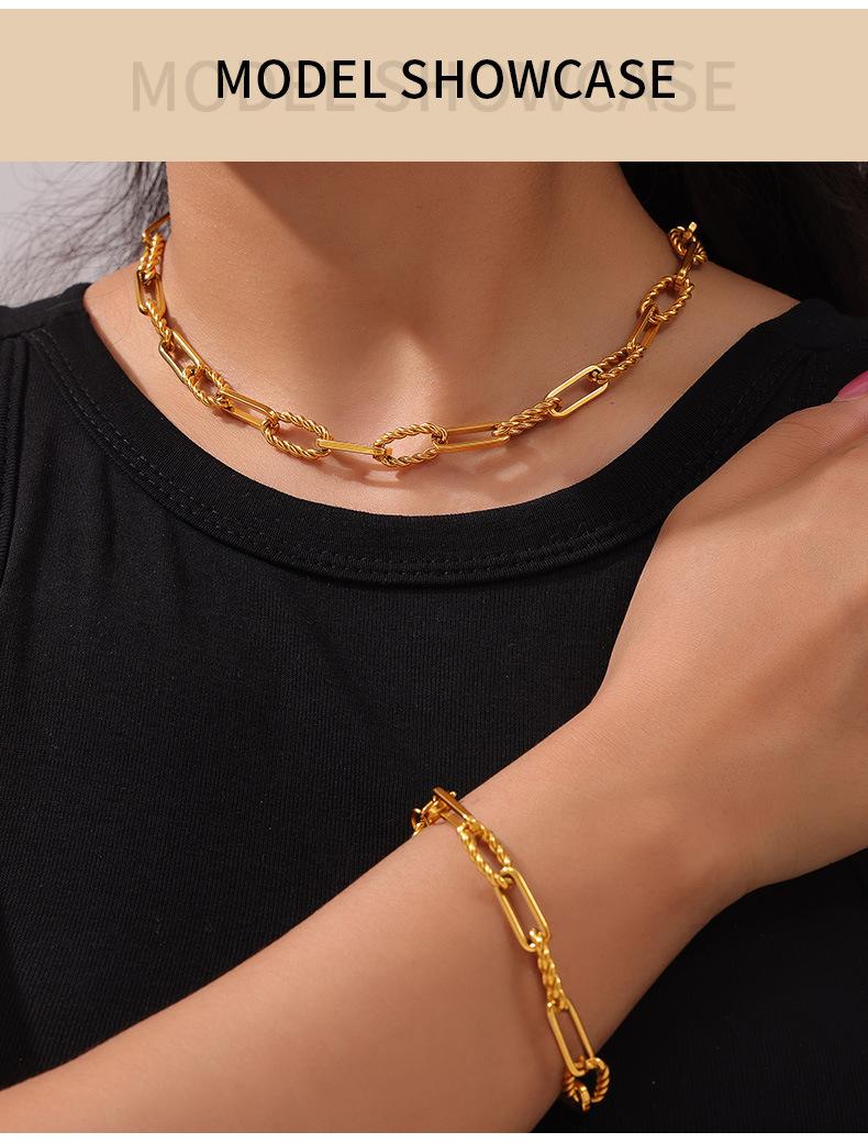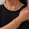 Moda hip-hop europea y americana versátil nuevo patrón collar pulsera moderna personalizada acero titanio chapado oro real 18K juego de joyería
