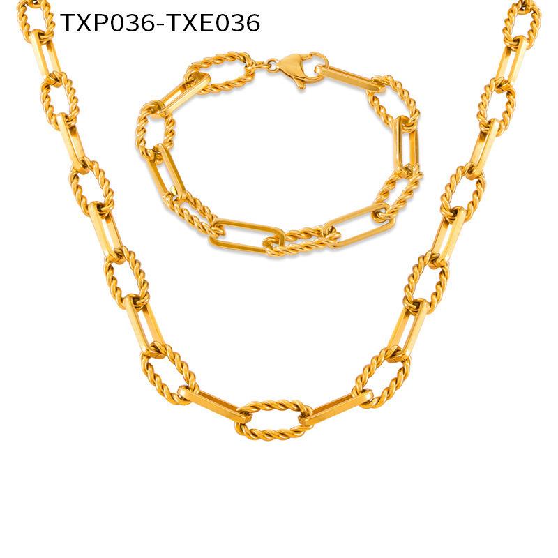 TXE036-Steel Bracelet, TXE036-Gold Bracelet, TXP036-steel color necklace, TXP036-Gold Necklace