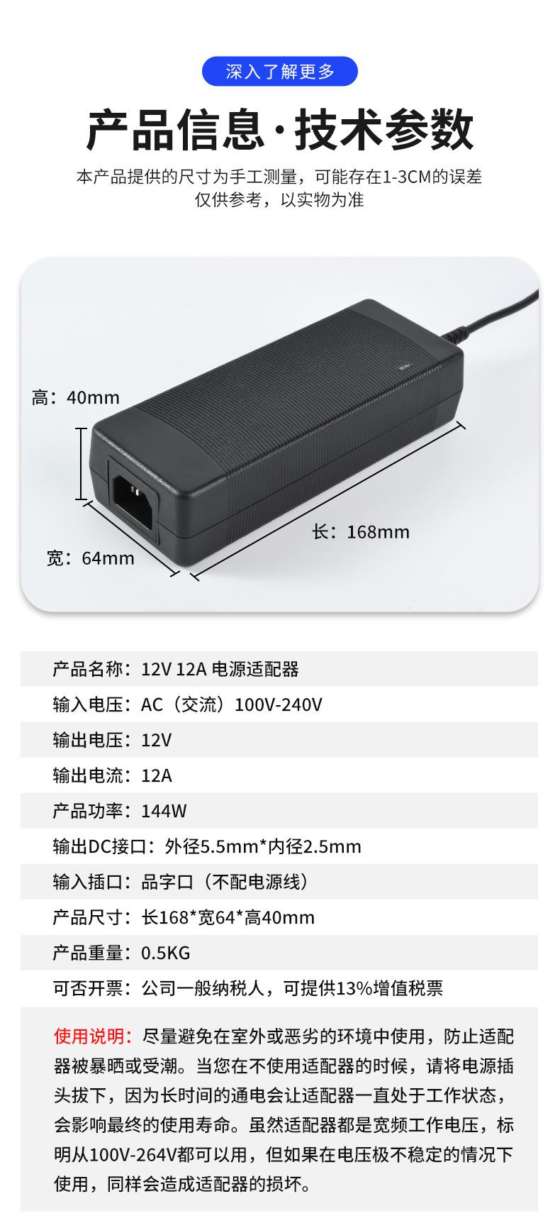 Adaptador de corriente 12V12A de escritorio luz LED monitor LCD purificador de agua enrutador fuente de alimentación