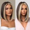 Pelucas europeas y americanas para mujer, color degradado, cabello corto, cobertura total de la cabeza, simulación de clavícula, peluca mediana y larga, cubierta de cabello con fibra química