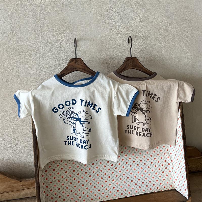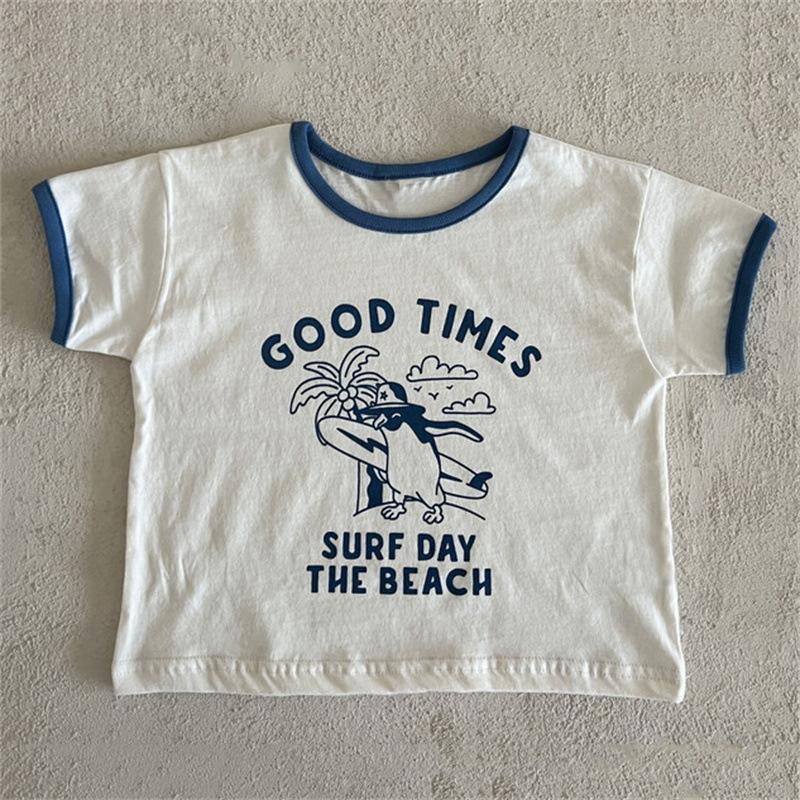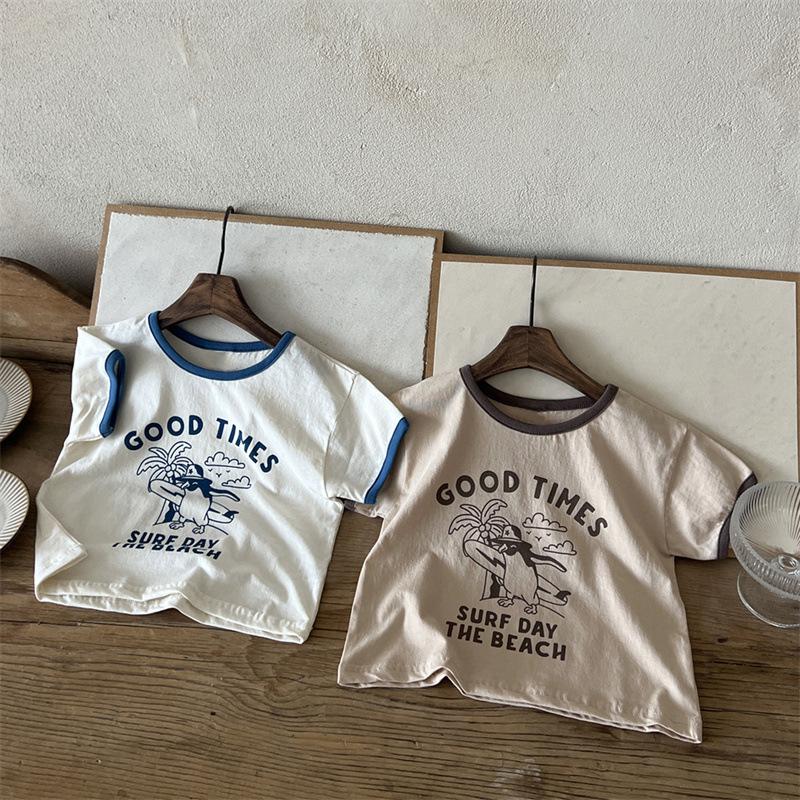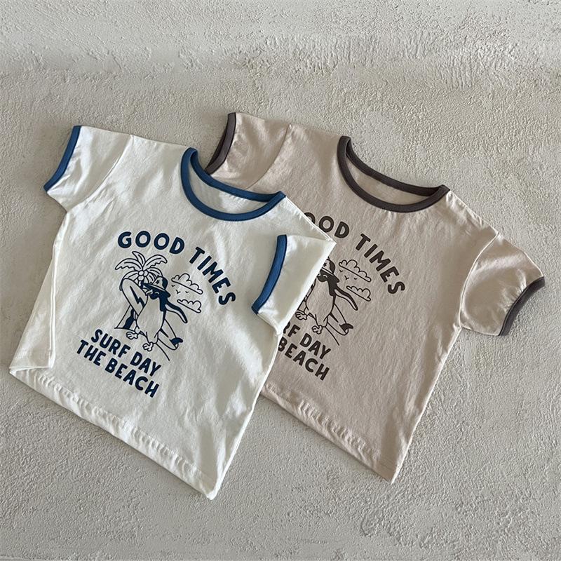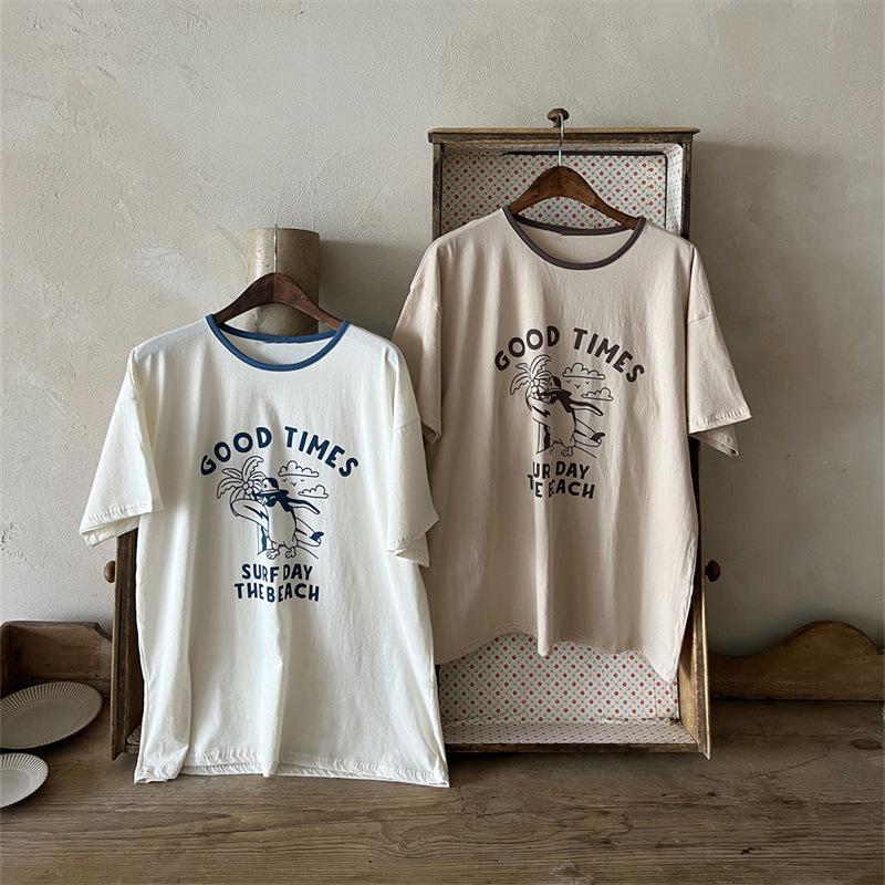 Ins Coreano Verano Nuevo Estilo Estampado Manga Corta Moda Sencillo Dibujos Animados Letra Dibujos Animados Top de Manga Corta