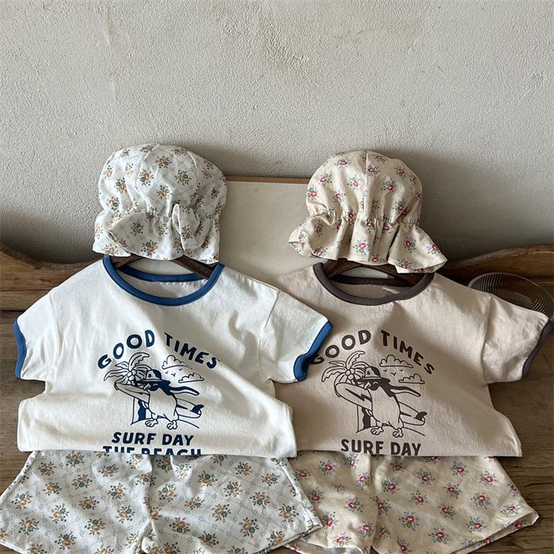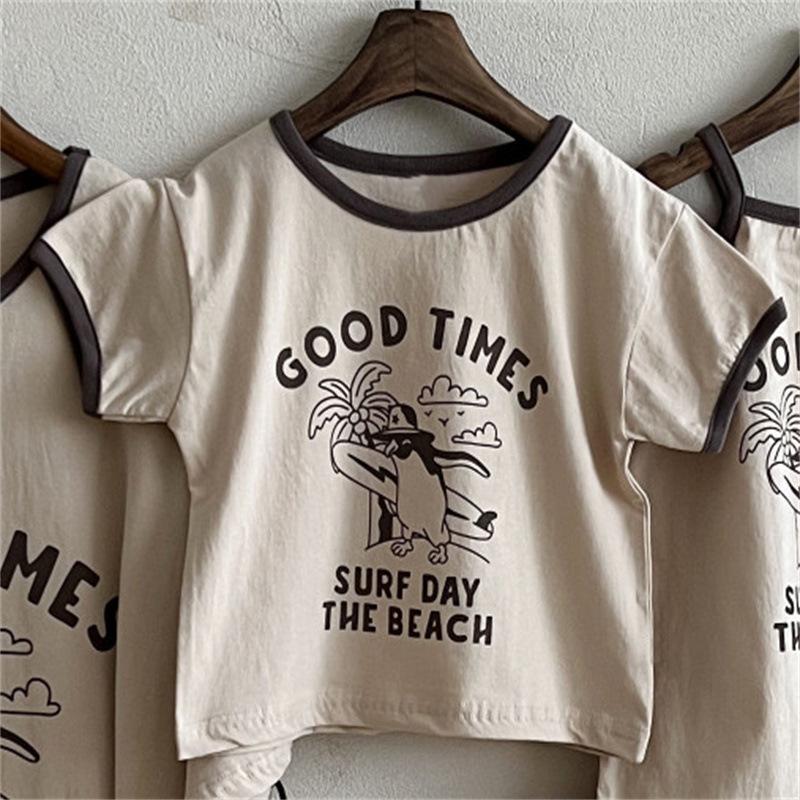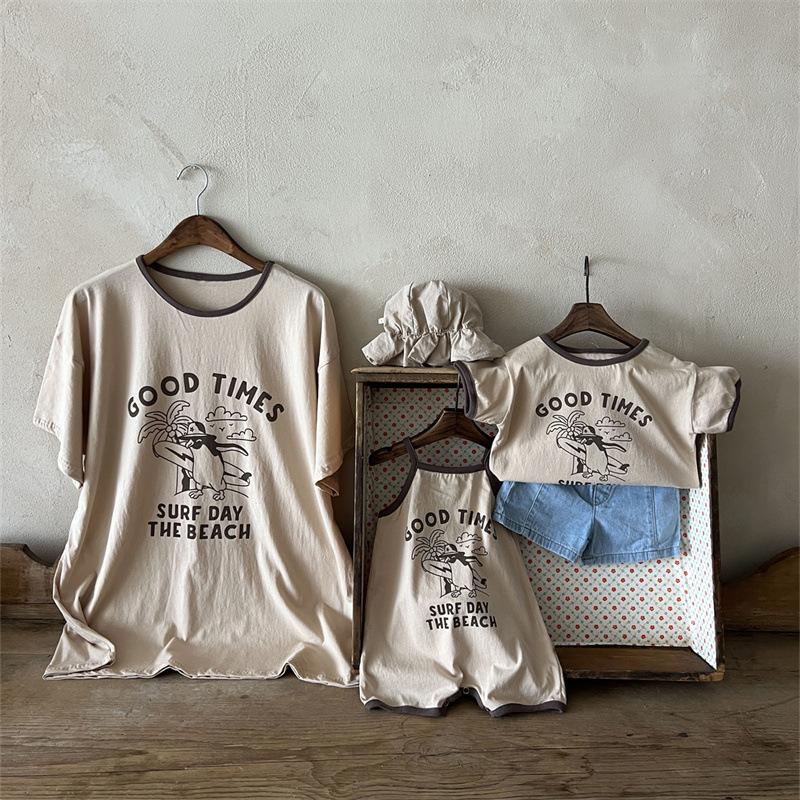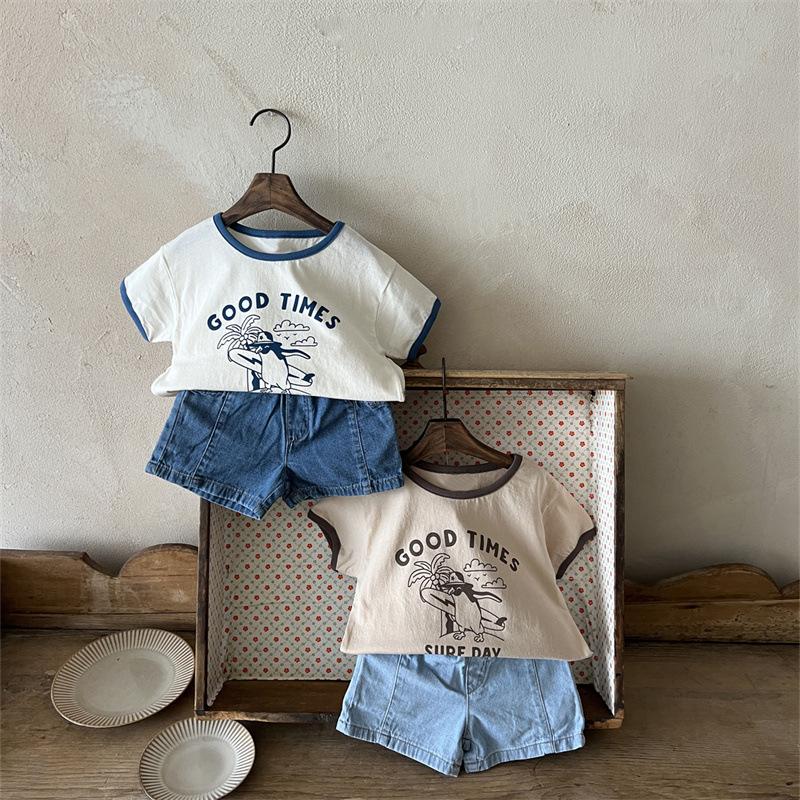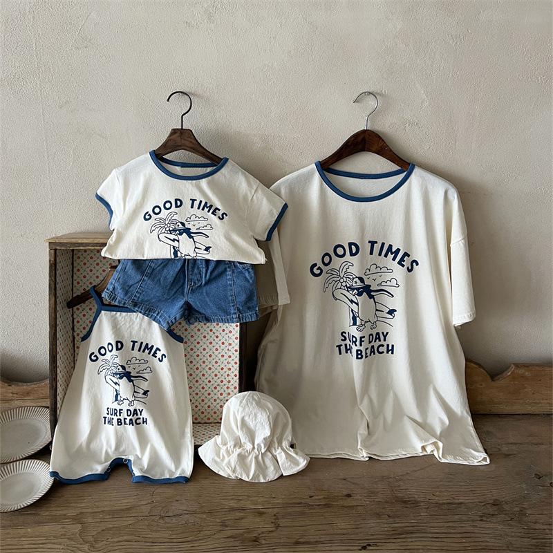 Ins Coreano Verano Nuevo Estilo Estampado Manga Corta Moda Sencillo Dibujos Animados Letra Dibujos Animados Top de Manga Corta