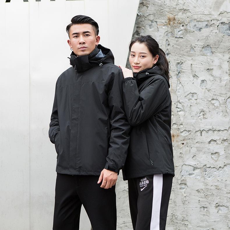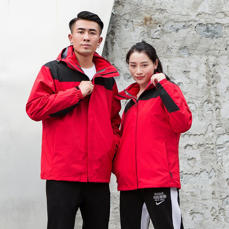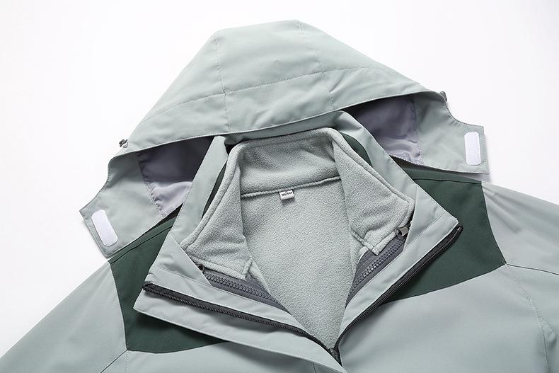 Venta al por mayor de ropa de asalto para exteriores, para hombre y mujer, con forro polar acolchado tres en uno, resistente al viento, impermeable, traje de montañismo de dos piezas