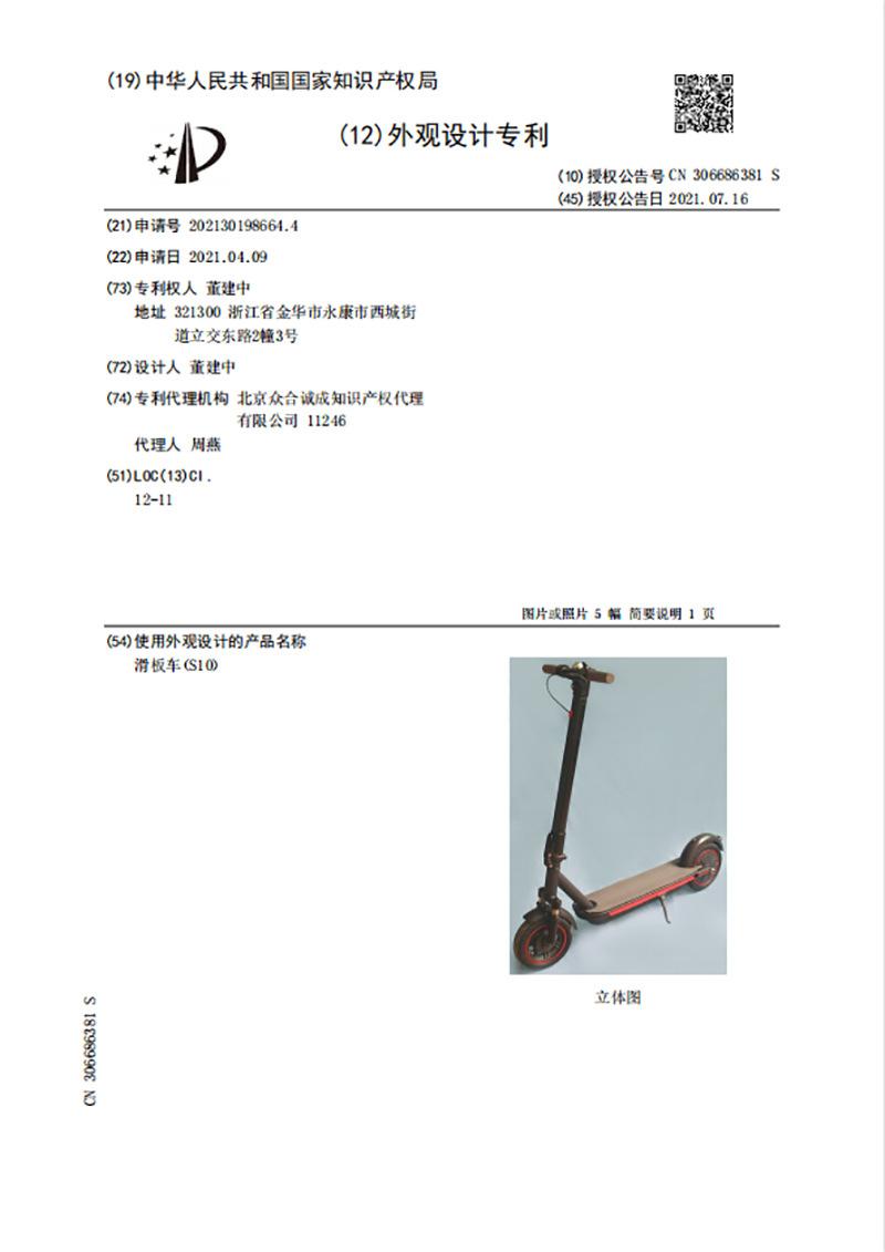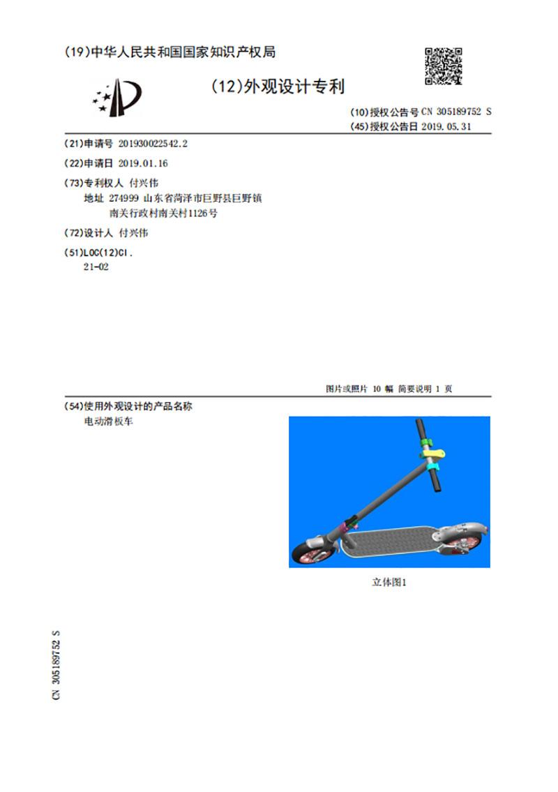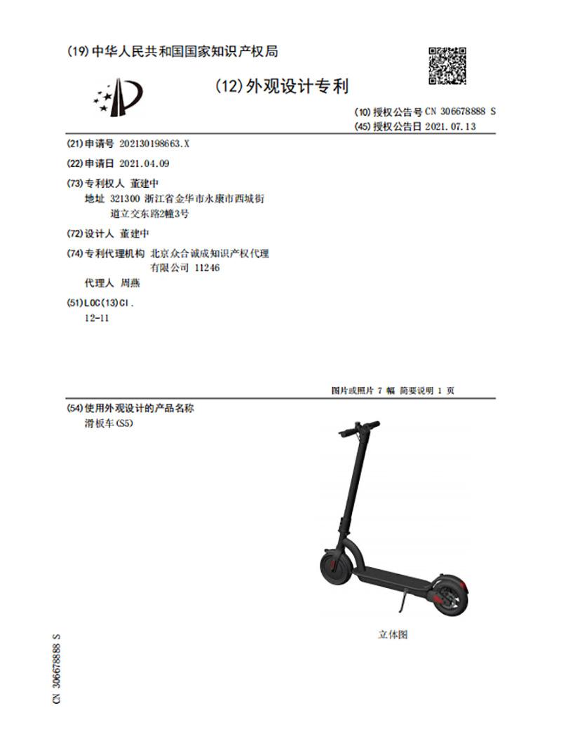 Número de patente de diseño de apariencia