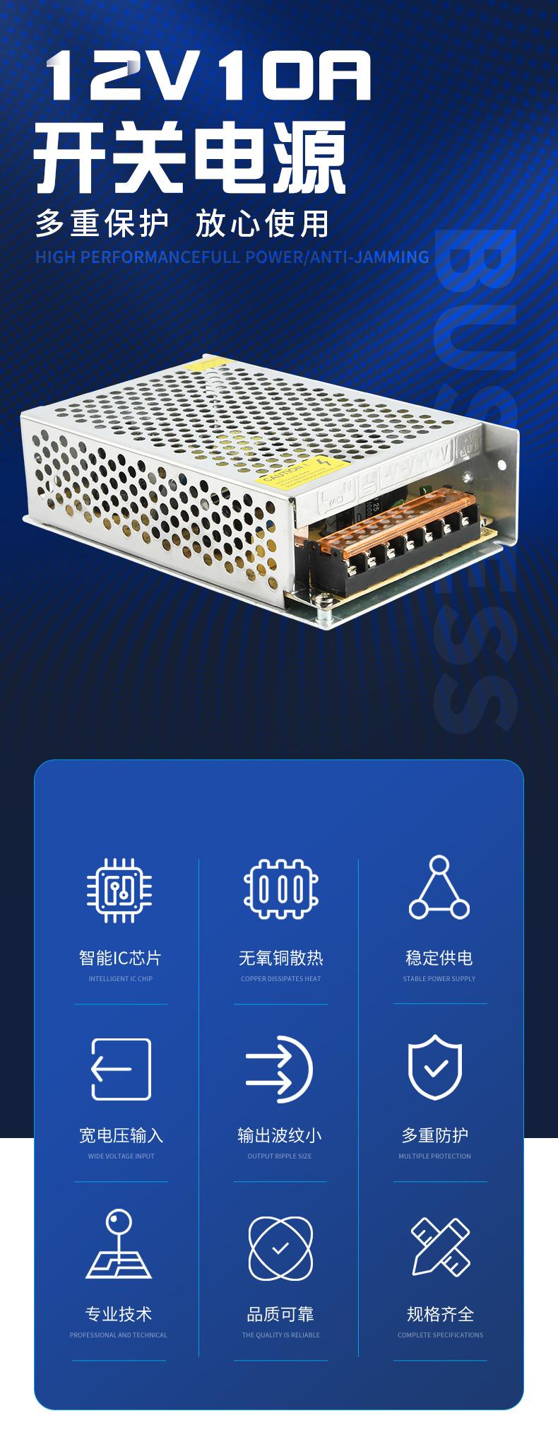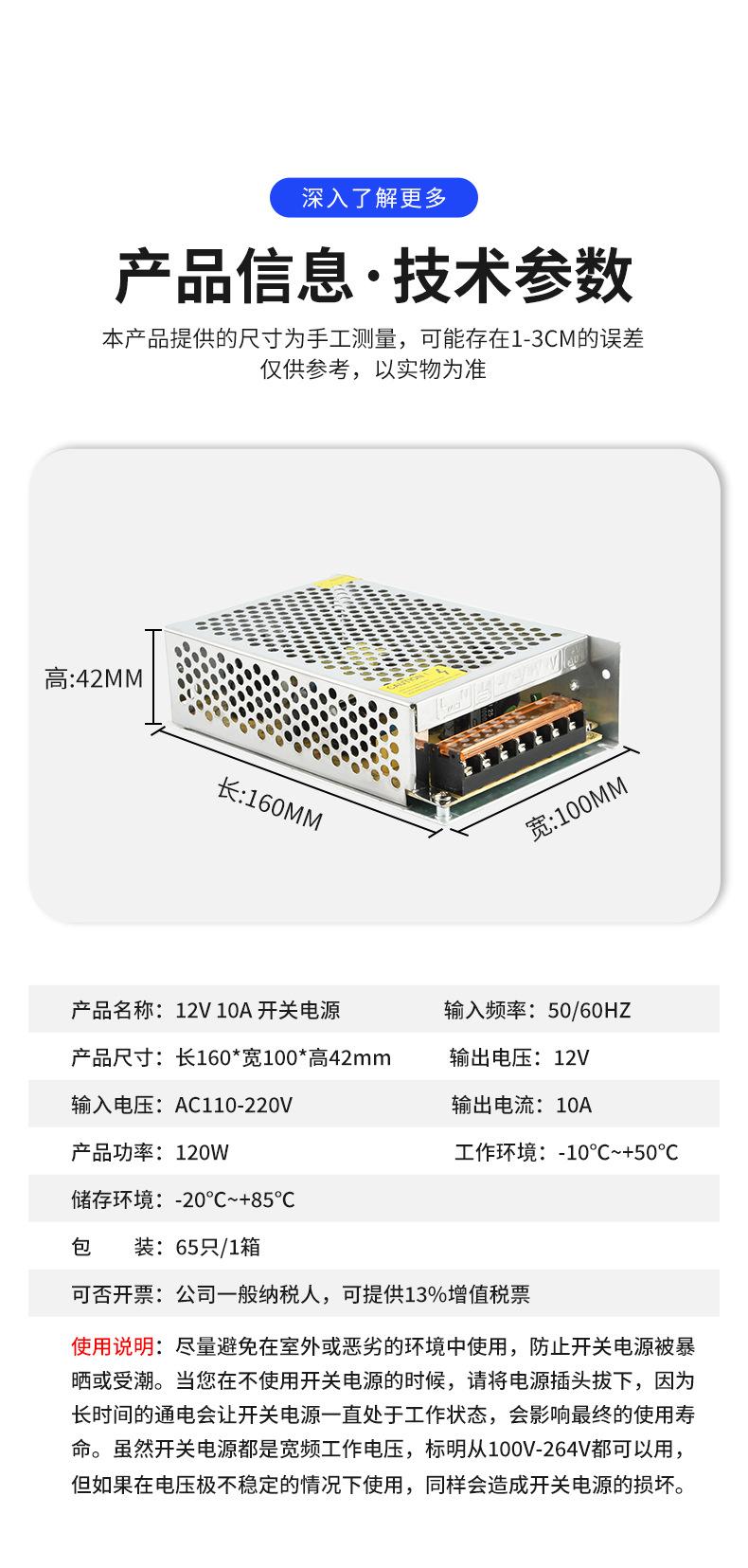 Fuente de Alimentación Conmutada 12V10A 12V Tamaño Pequeño Led Monitoreo de Seguridad Fuente de Alimentación 120W Fuente de Alimentación Centralizada