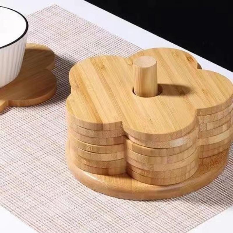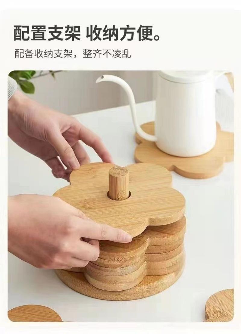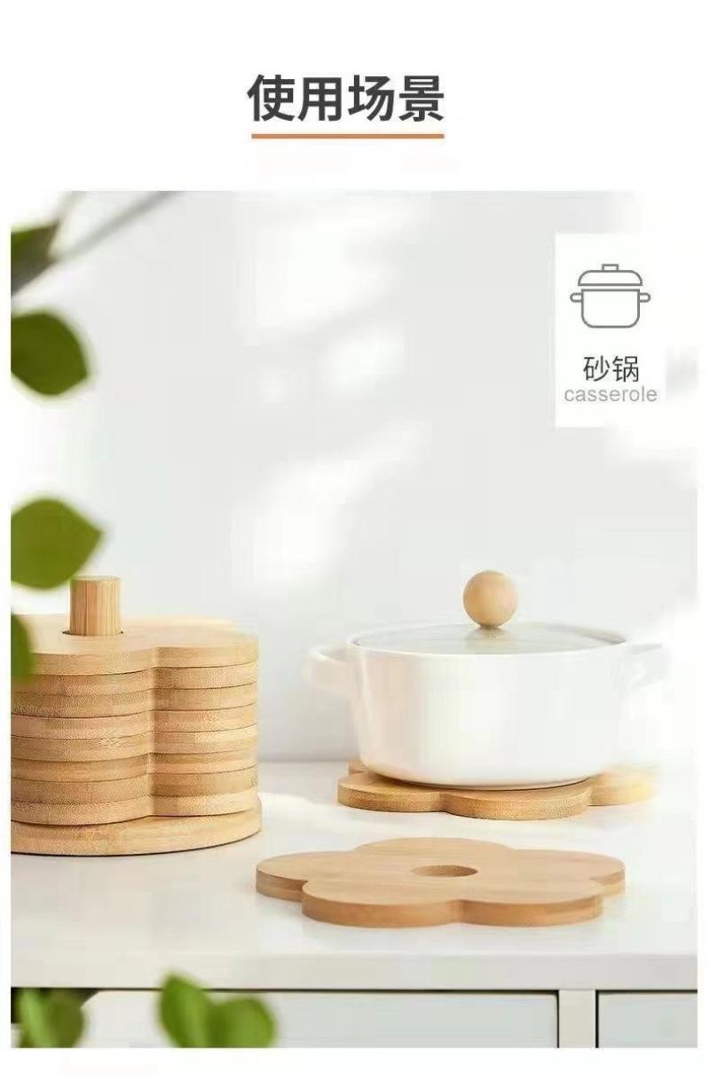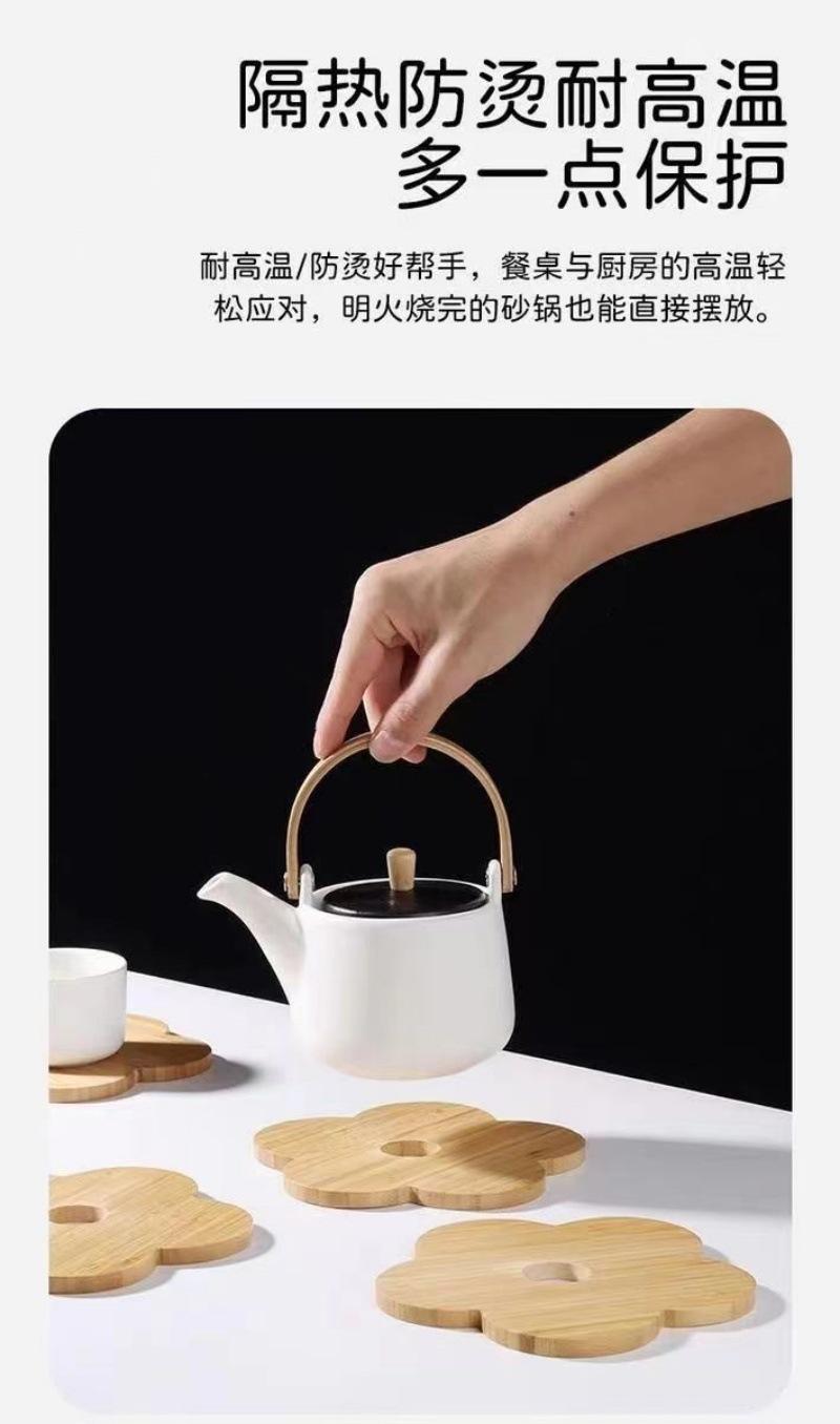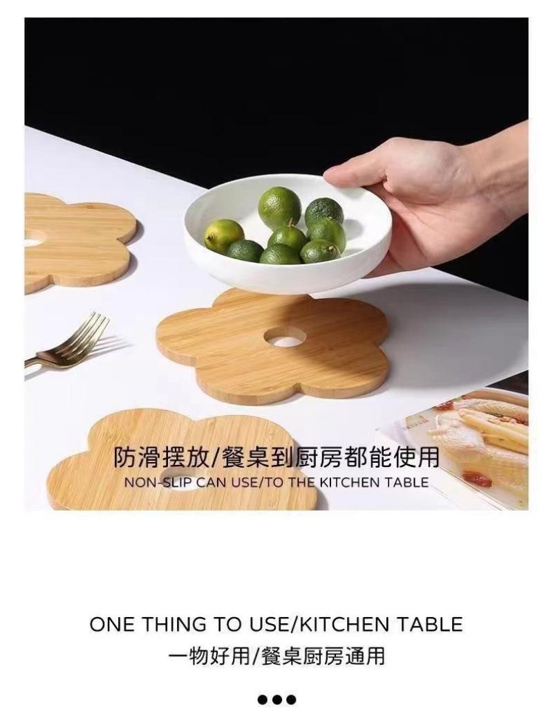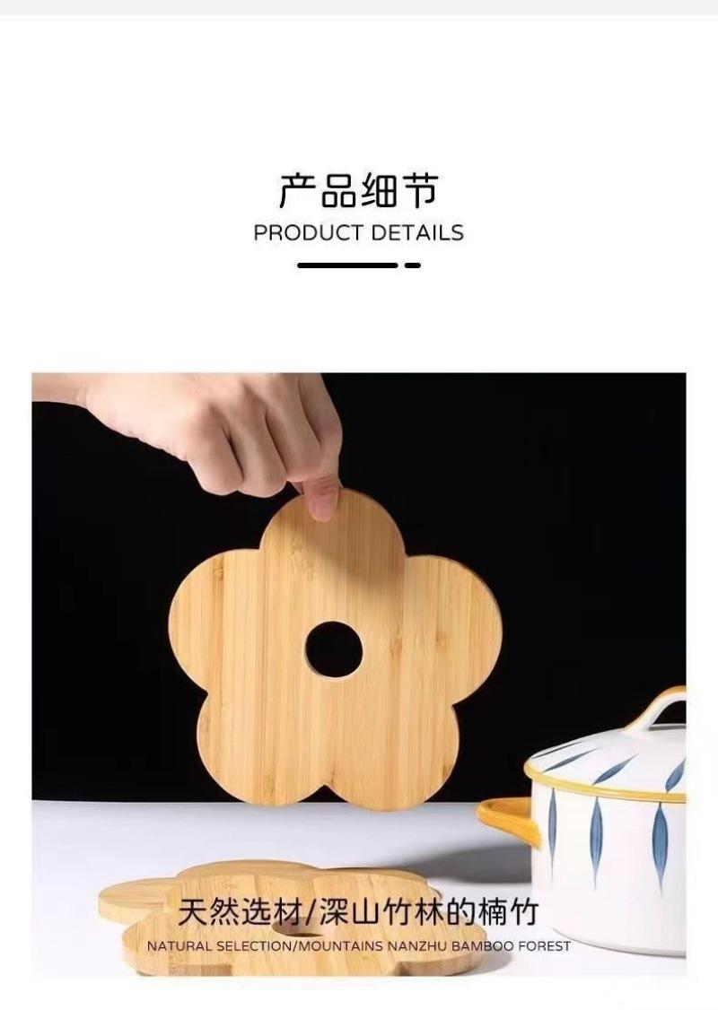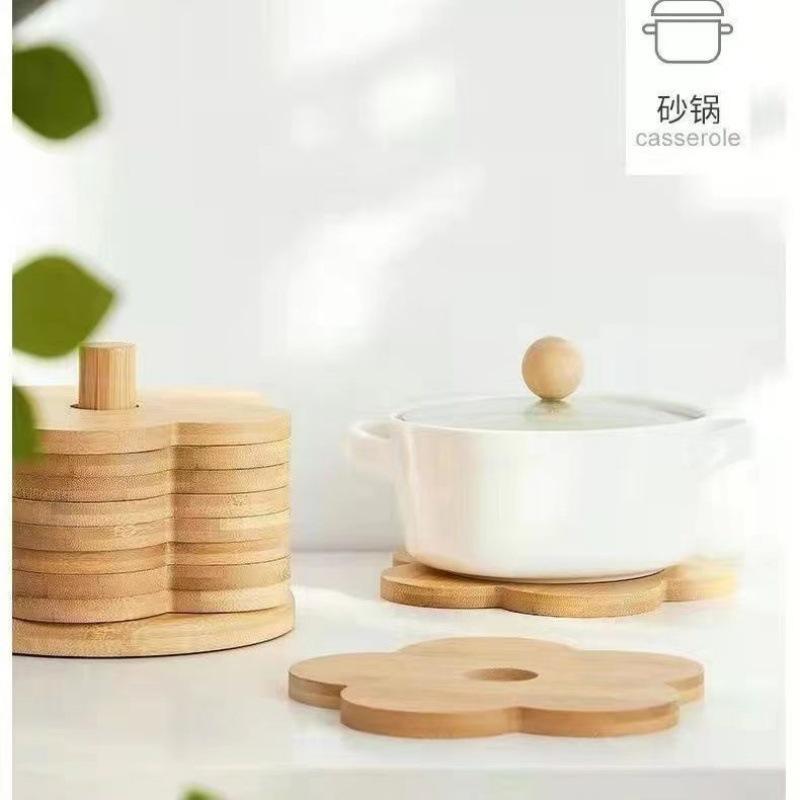 Individual de Mesa Aislante de Madera Maciza Posavasos Hogar Mesa de Comedor de Madera Anti-escaldaduras Tapete para Cacerola Creativo Flor de Bambú Resistente al Calor Tapete para Tazón de Sopa