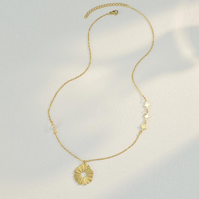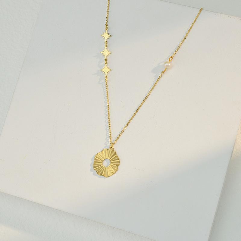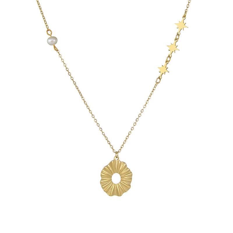 Collar de cadena de lana de acero y titanio con oro de 14 quilates, personalizado, con costuras sencillas, redondo y hueco, para mujer, de marca, con diseño de celebridad de Internet europea y americana.