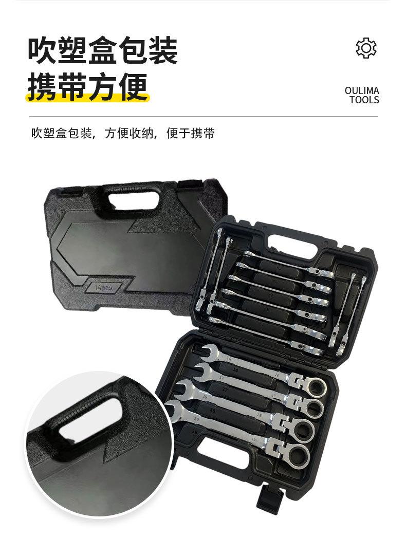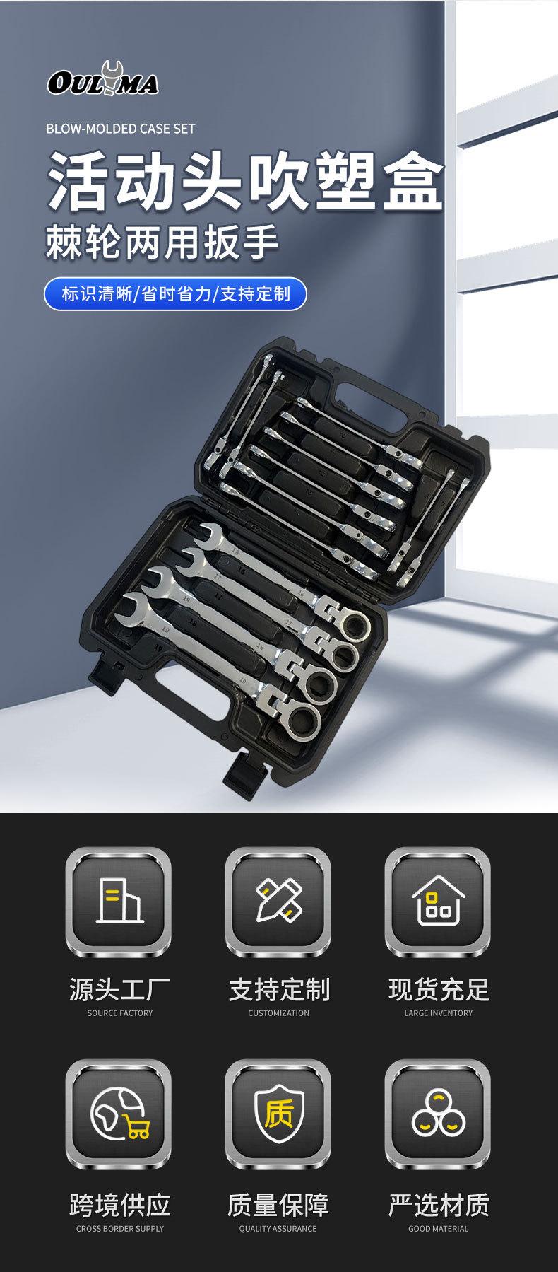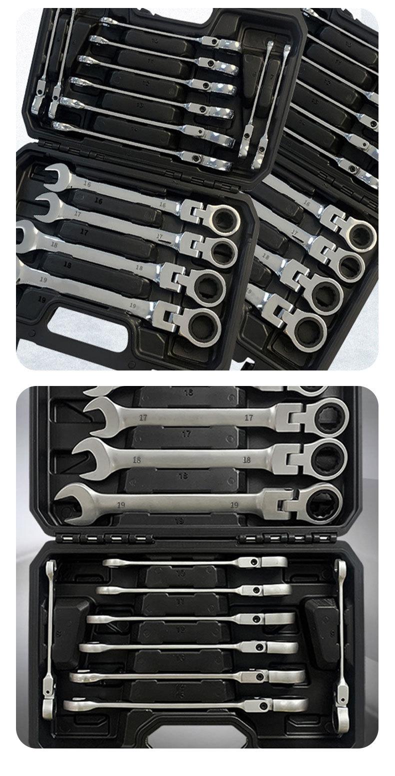 Juego de llaves de carraca de cabeza móvil de 12-14 piezas, estuche moldeado por soplado, llave de boca abierta de doble propósito, herramientas de ferretería al por mayor