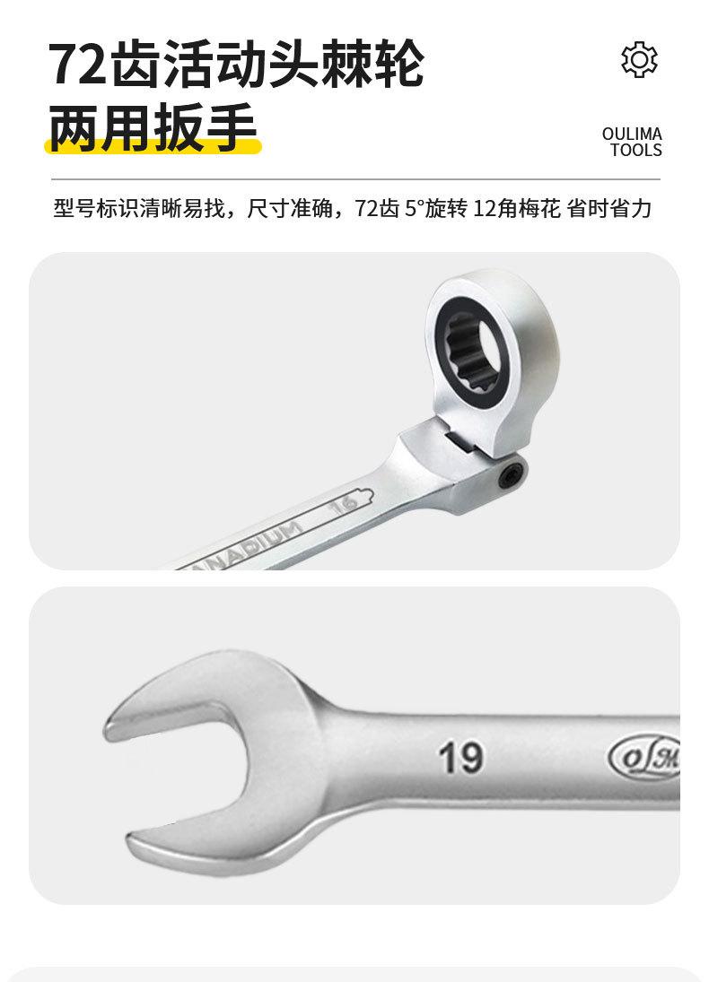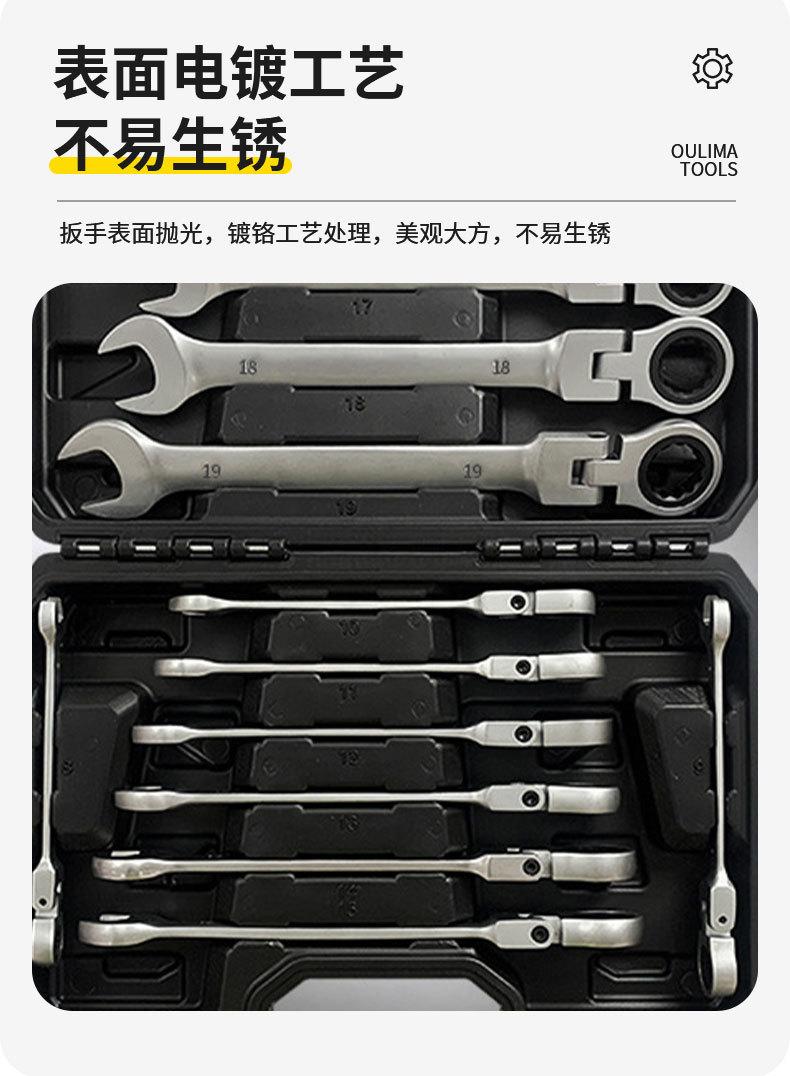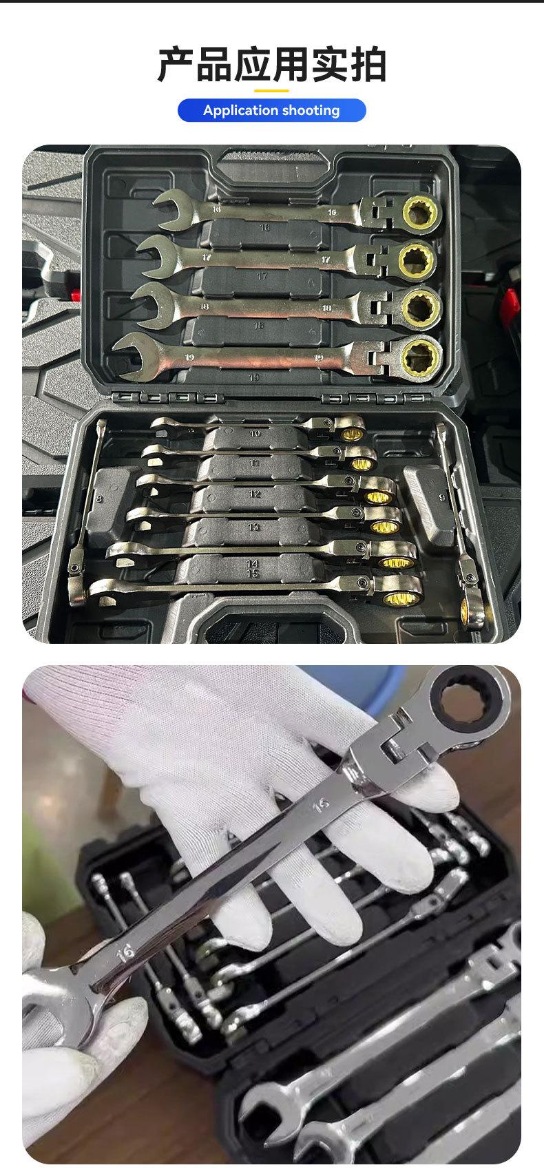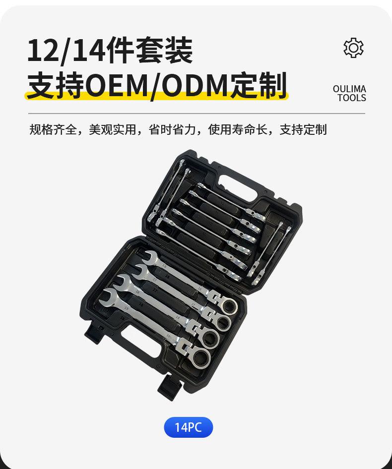 Juego de llaves de carraca de cabeza móvil de 12-14 piezas, estuche moldeado por soplado, llave de boca abierta de doble propósito, herramientas de ferretería al por mayor