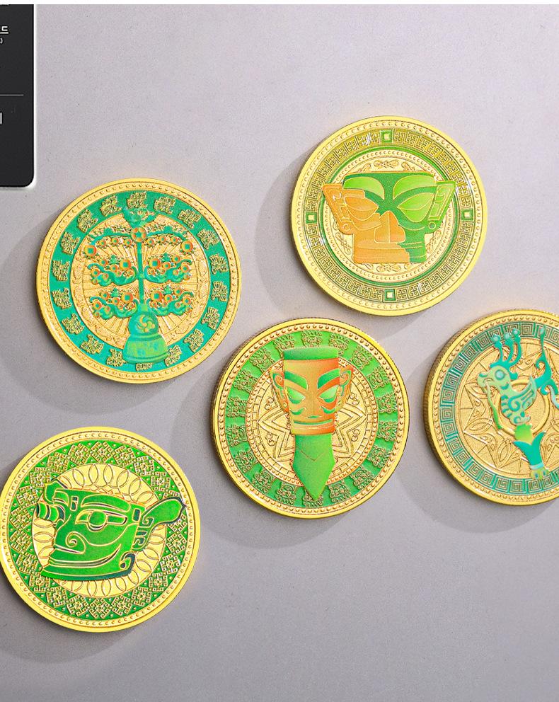 Monedas conmemorativas de metal de gran tamaño de bronce de Sanxingdui, regalos culturales y creativos, medallones conmemorativos, pegatinas para refrigerador DIY