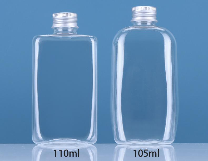 Botella de plástico transparente con tapa de aluminio de 100 ml y 50 ml, disponible al por mayor, para líquidos, muestra de PET, botella vacía, botella de prueba dividida.