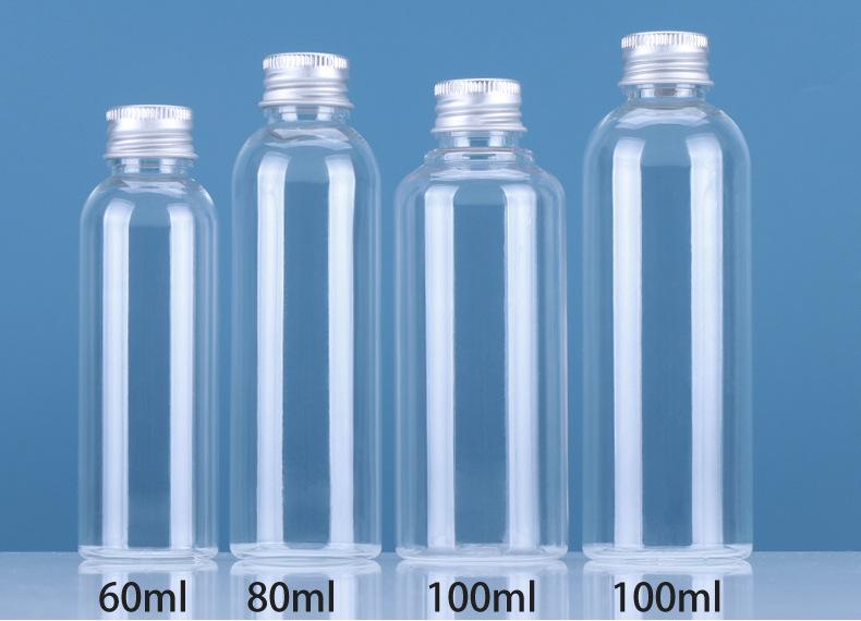 Compra Botella de plástico transparente con tapa de aluminio de 100 ml y 50 ml, disponible al por mayor, para líquidos, muestra de PET, botella vacía, botella de prueba dividida. al por mayor en Joom.pro