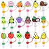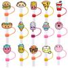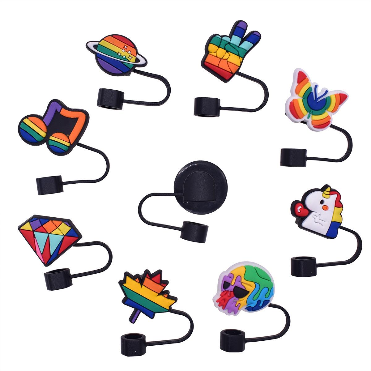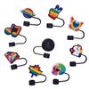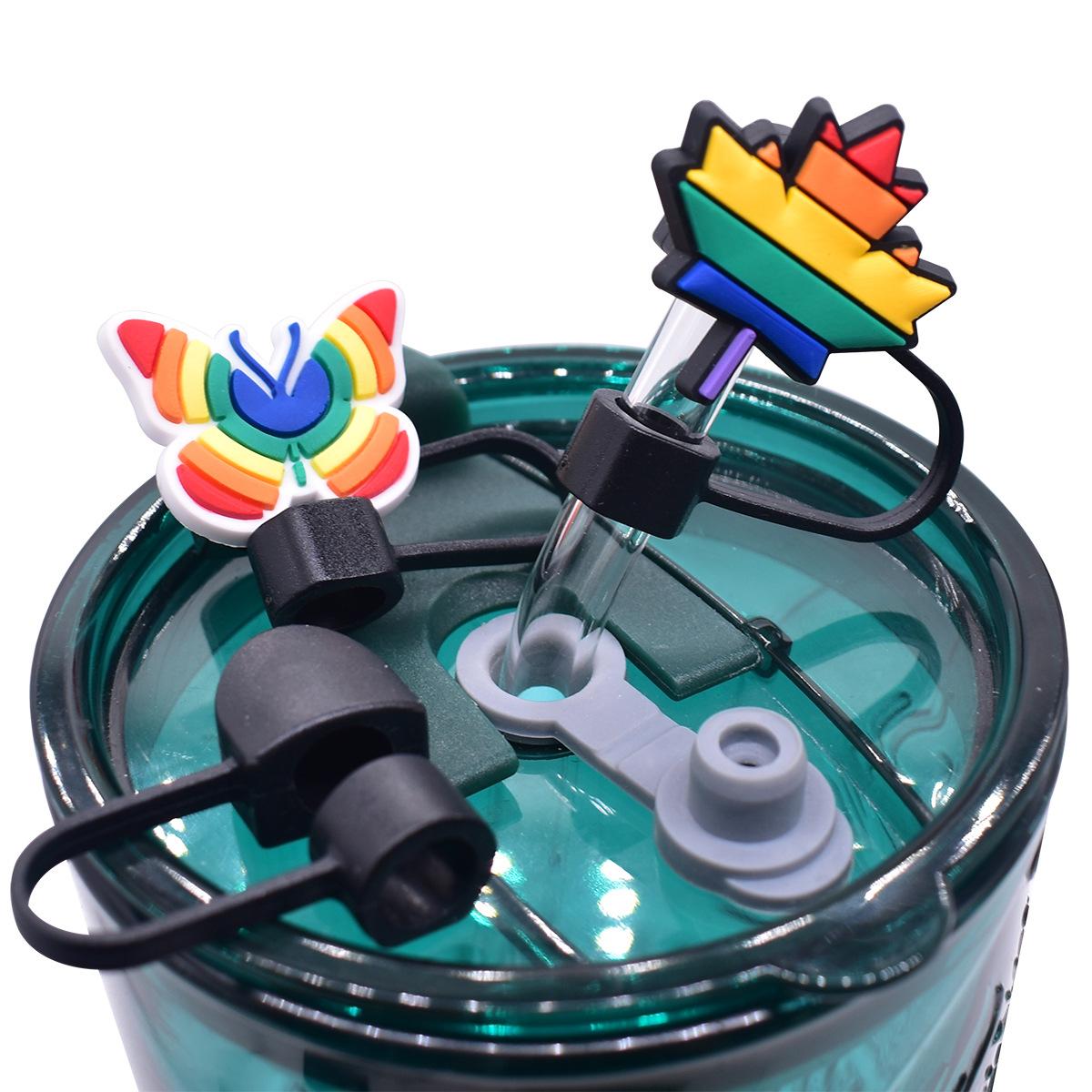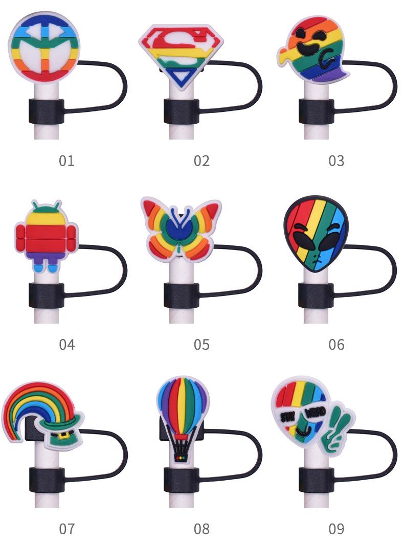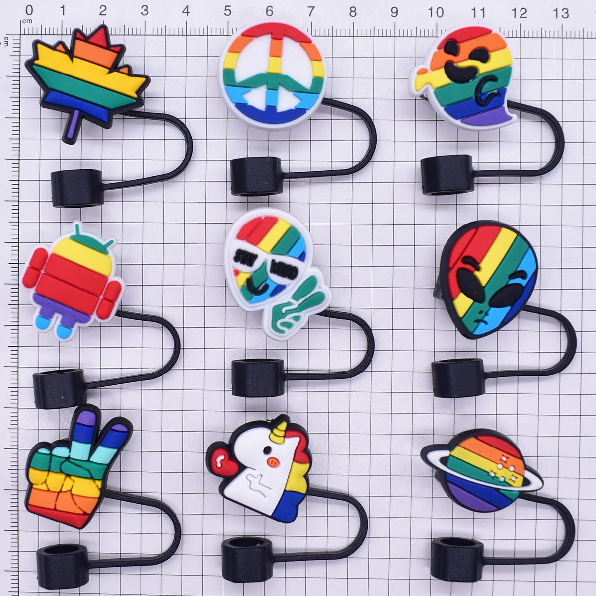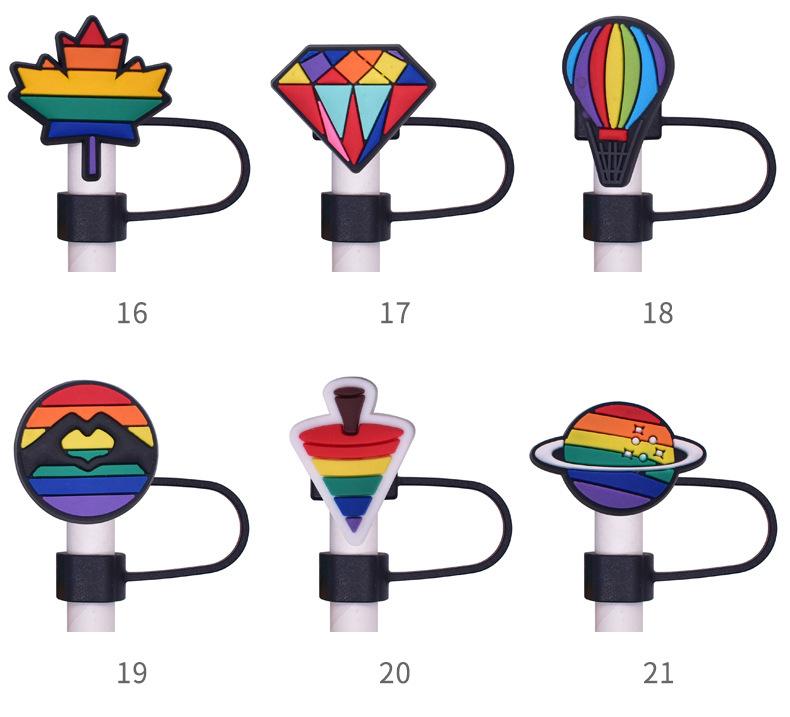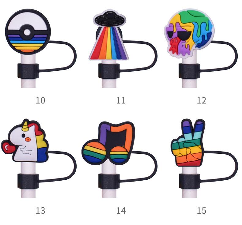 Bonita gorra de paja a prueba de polvo de la serie arcoíris de dibujos animados, funda de paja de PVC con pegamento suave, tapón antipolvo, funda creativa para paja.