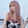 Peluca de cosplay de color con flequillo, pelo largo y rizado, con mecanismo de degradado azul púrpura, cubierta completa para la cabeza, peluca de seda mate de alta temperatura