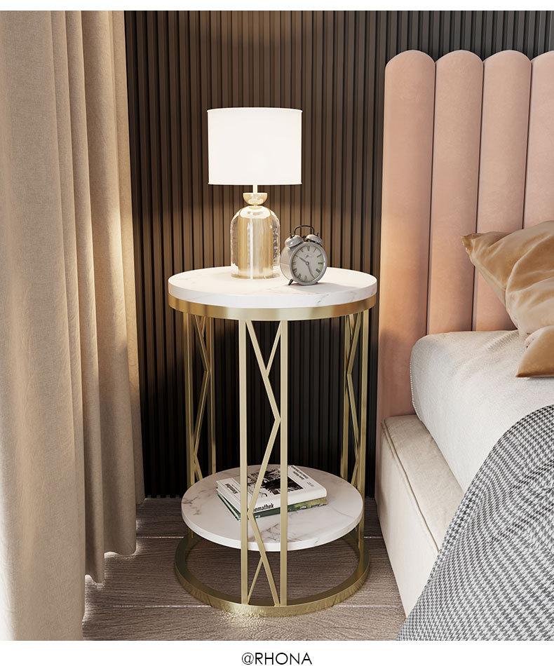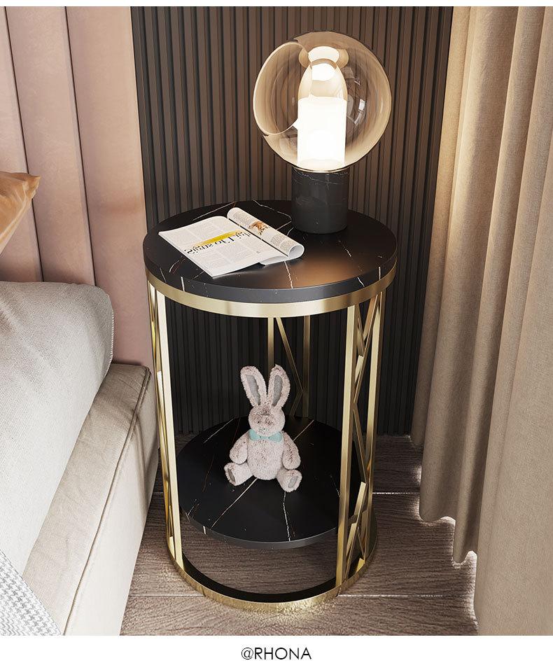 Mesita de noche pequeña de celebridades de Internet, mesa redonda pequeña, estante de almacenamiento de tablero de roca, mesita de noche moderna y sencilla, gabinete de almacenamiento para dormitorio