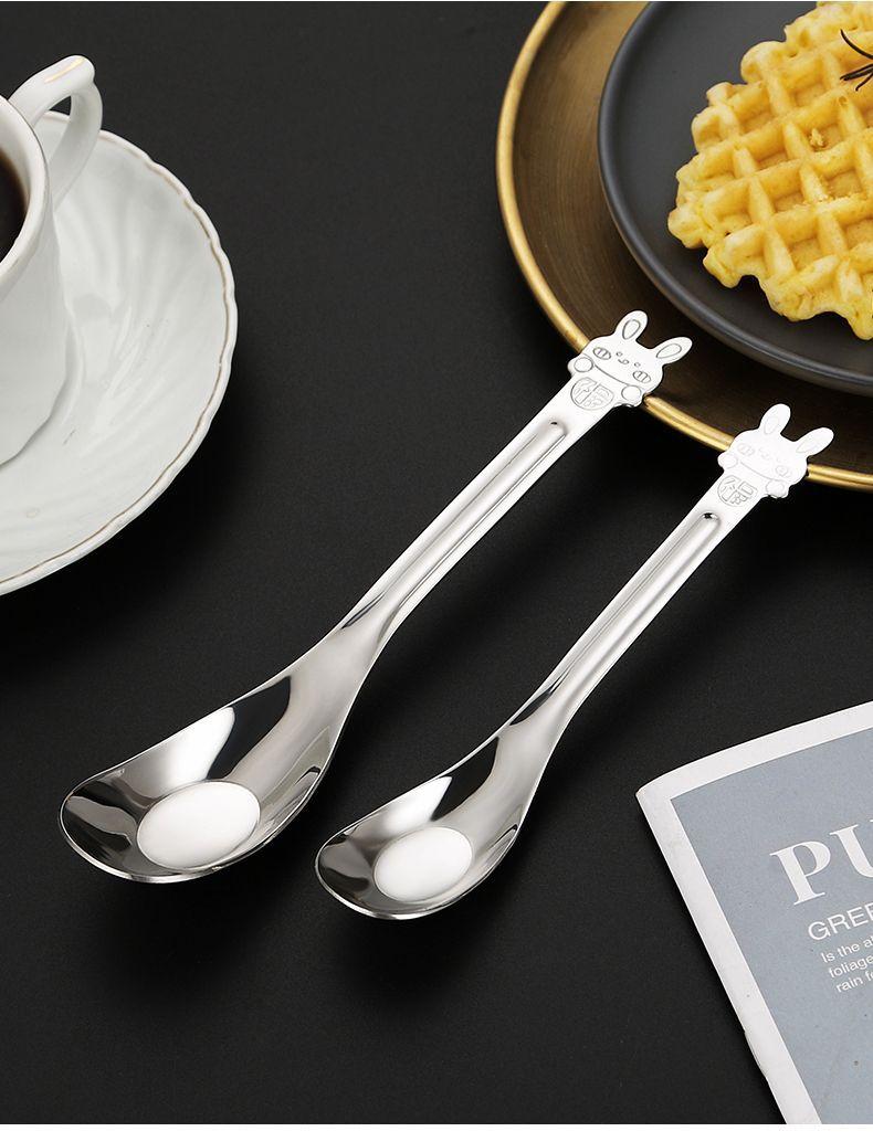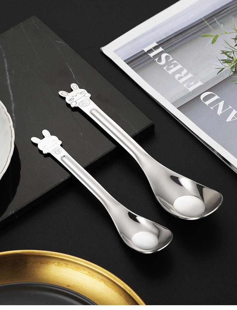 Cuchara Yuanbao de Acero Inoxidable 304 Cuchara Engrosada Cuchara para Comer Doméstica Cuchara para Alimentar Alto Valor de Color Cuchara Creativa de Sopa de Conejo