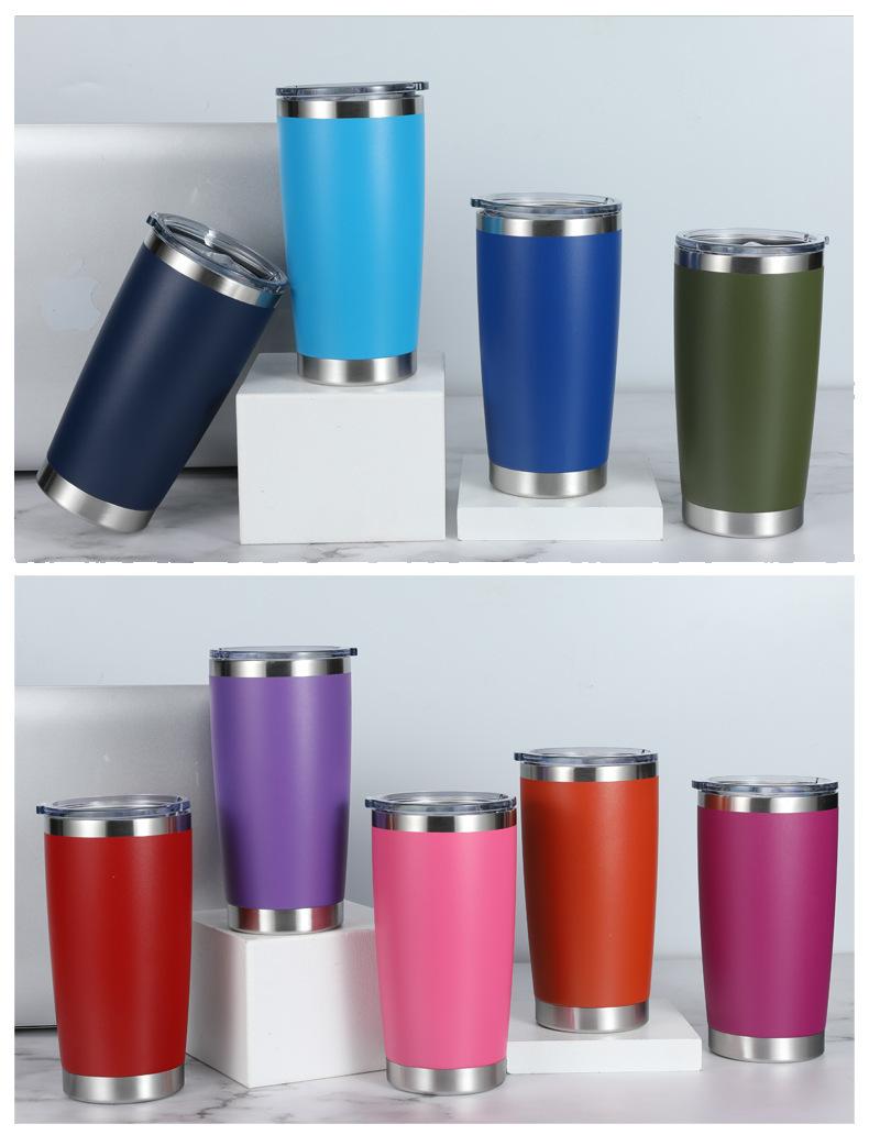 Taza termo para coche de 20 oz transfronteriza, acero inoxidable 304, vaso frío para coche de doble vacío de plástico con spray para hielo, venta al por mayor