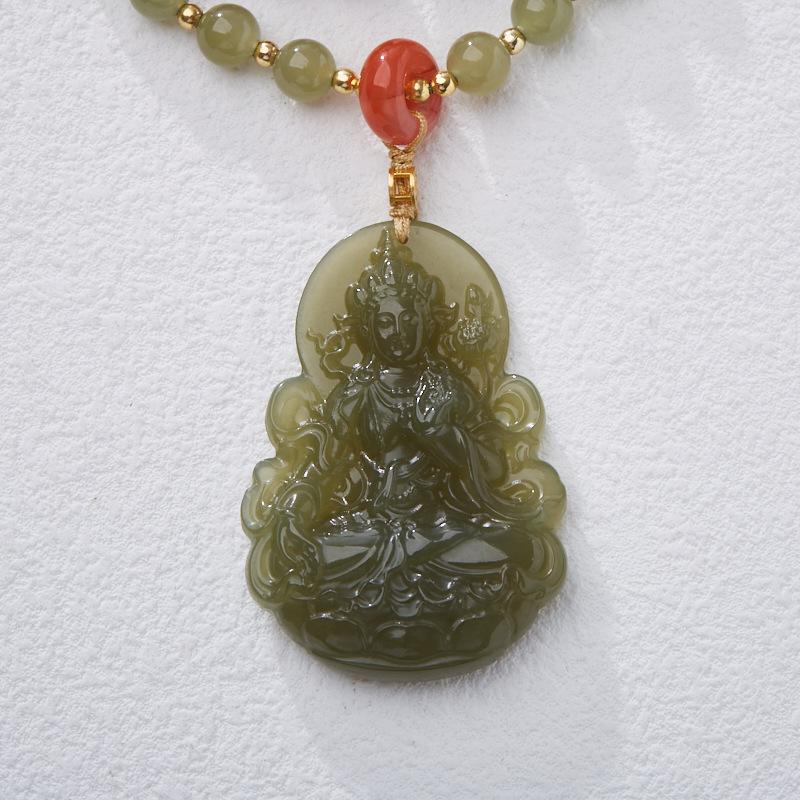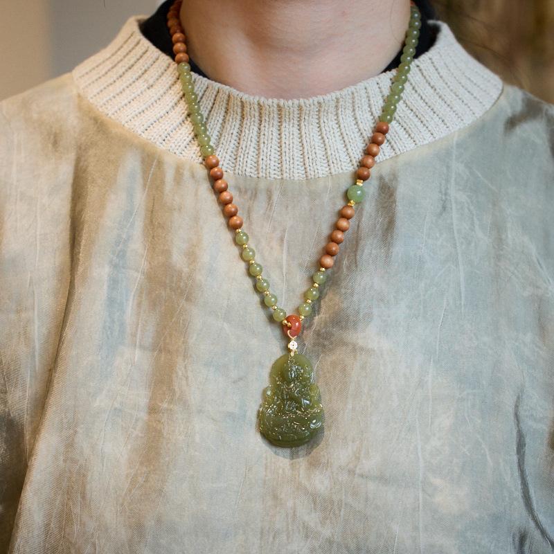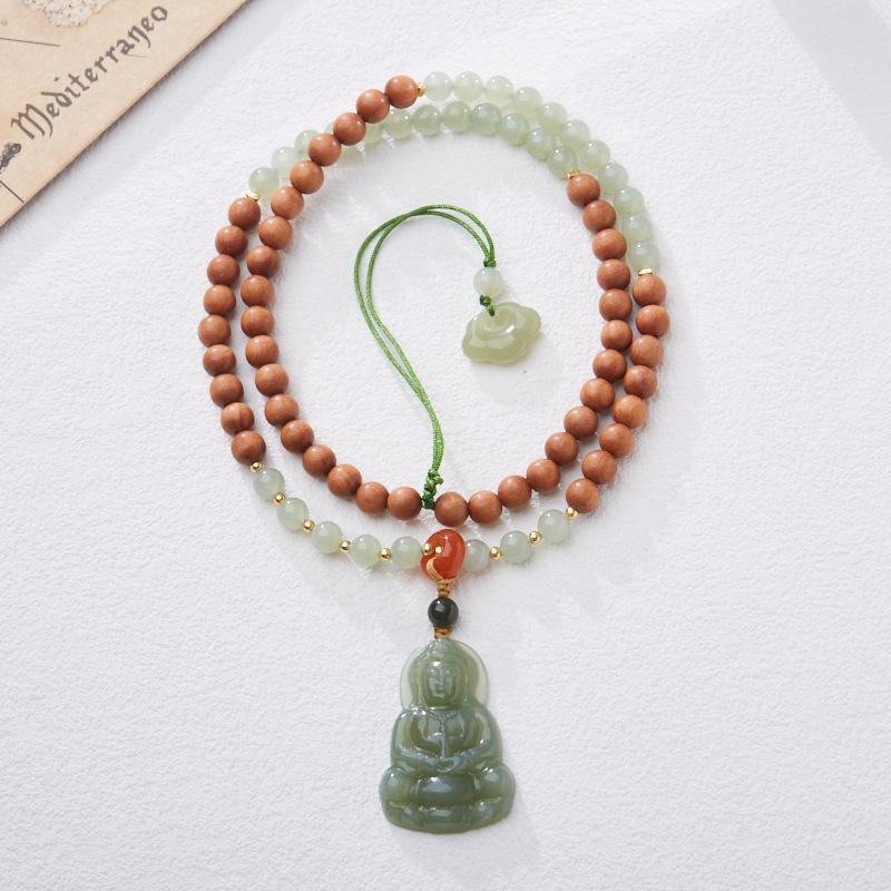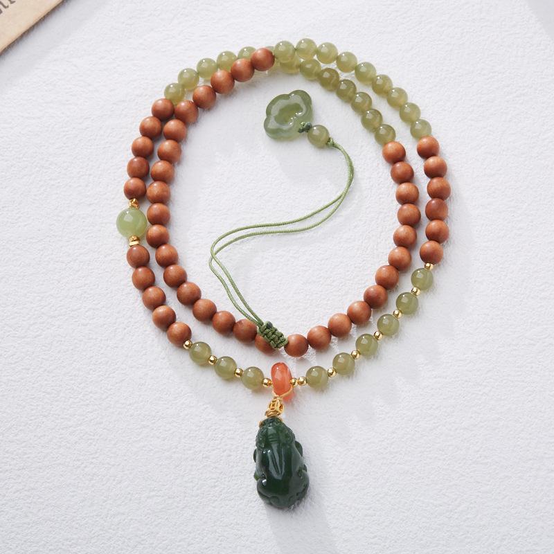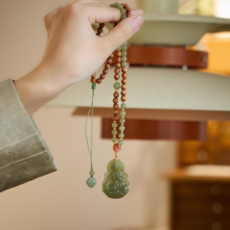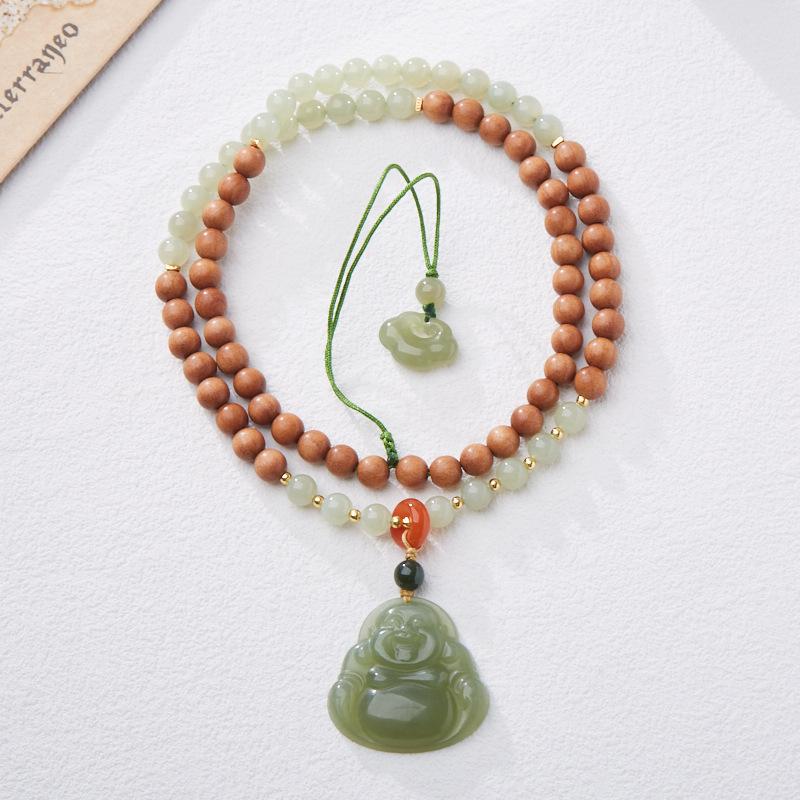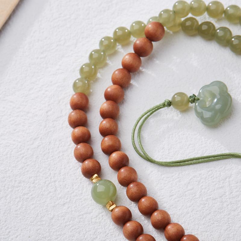 |Material Principal|Cuentas Redondas de Jade Hetian, Cuentas Redondas de Sándalo Barbie, Anillo Corredizo de Ágata Roja del Sur, Colgante de Jade Hetian, Separadores de Cobre Chapado en Oro
