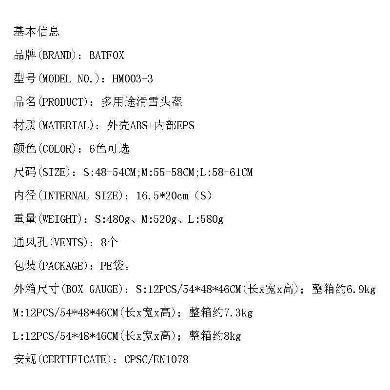 Casco de Esquí BATFOX Protectores Anticolisión para Hombres y Mujeres Adulto Ciclismo al Aire Libre Cálido Casco de Esquí