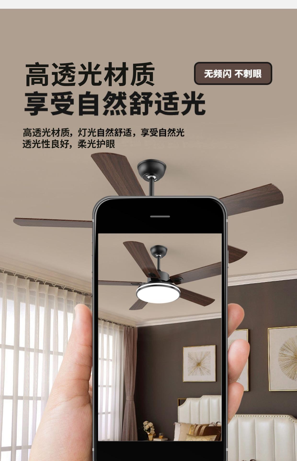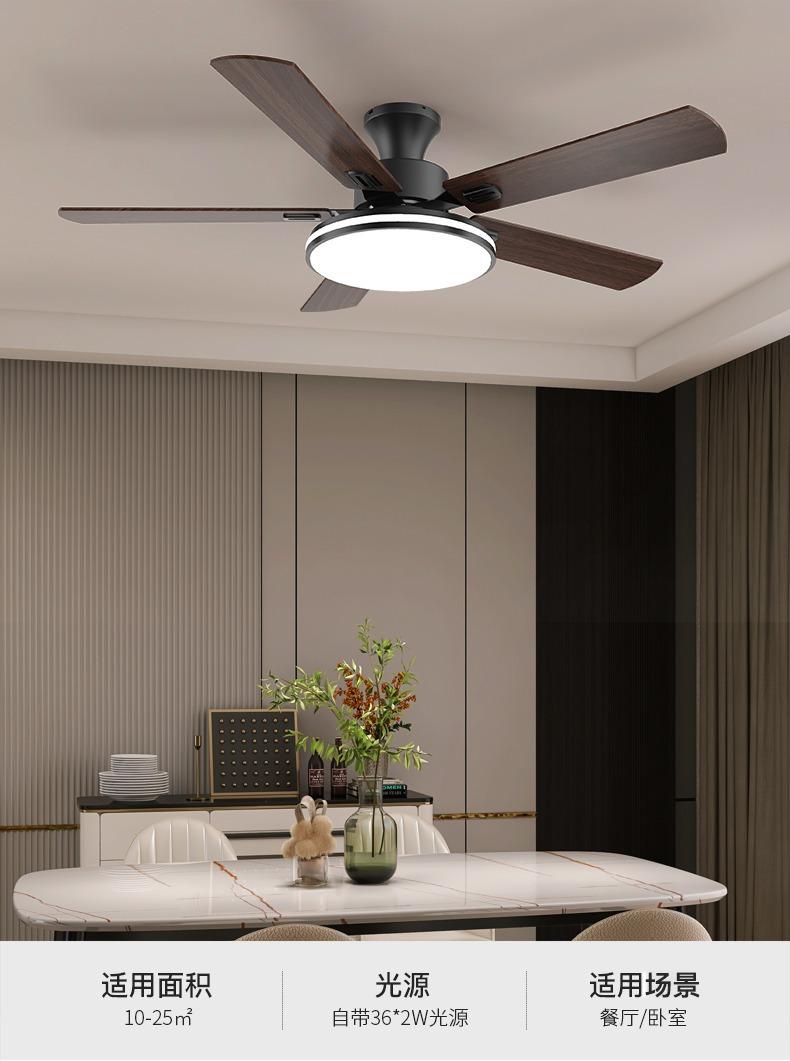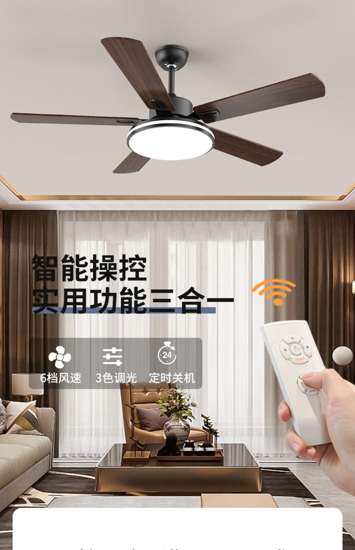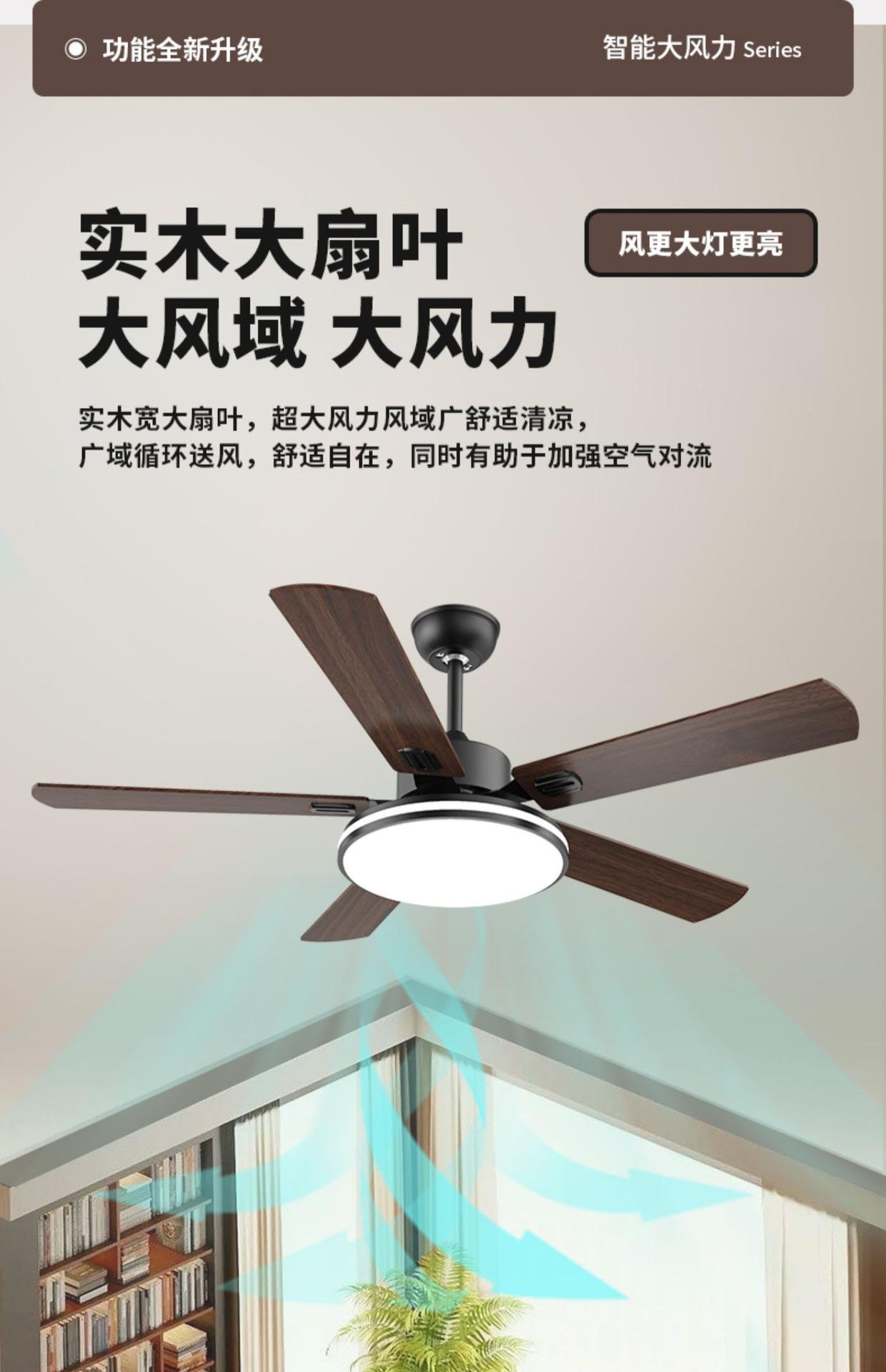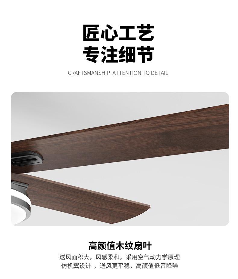 Lámpara de ventilador de techo de hoja plana con veta de madera maciza, lámpara de ventilador con control remoto de conversión de frecuencia inteligente, adecuada para sala de estar, comedor, dormitorio, lámpara de ventilador de estudio