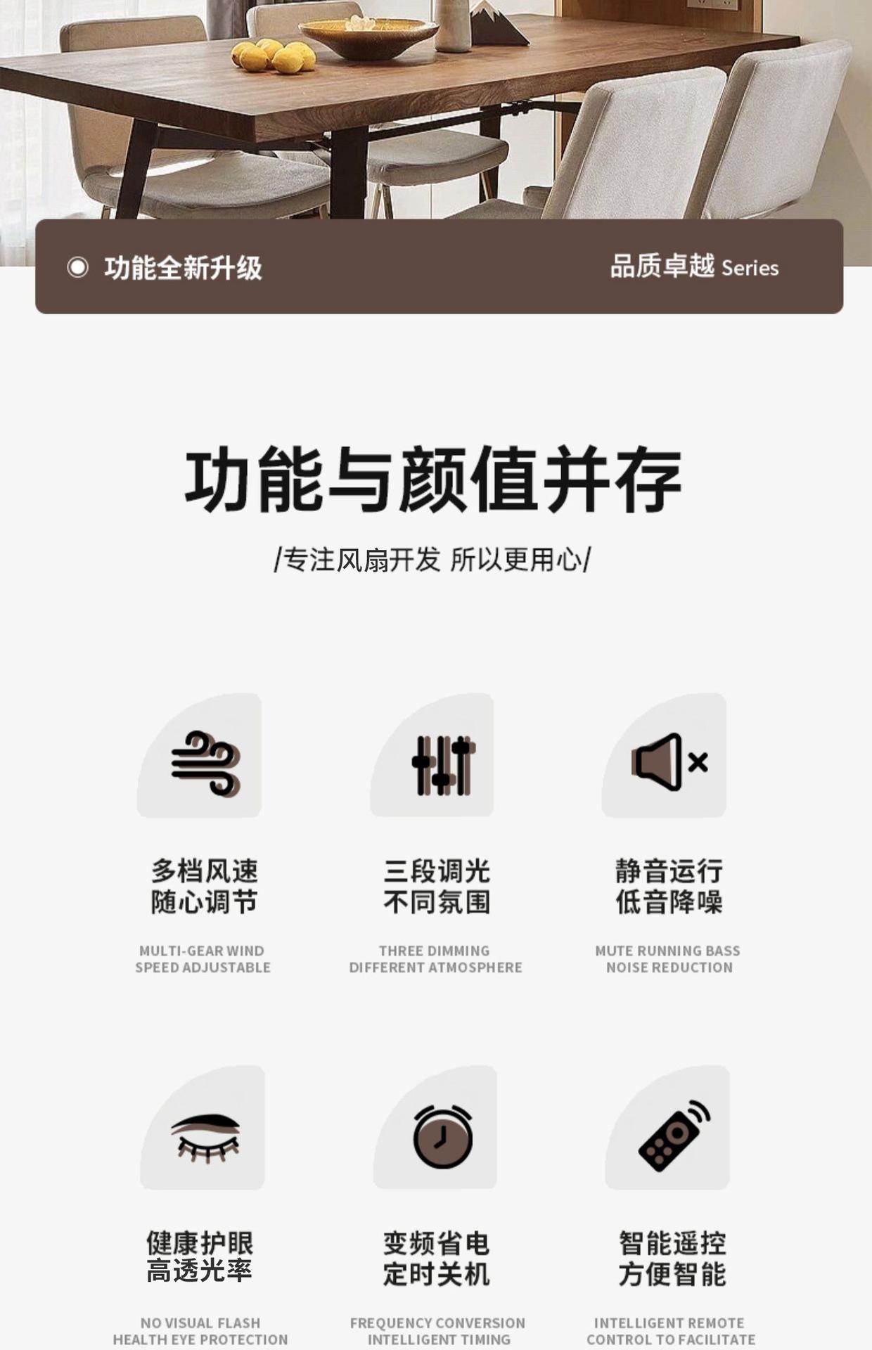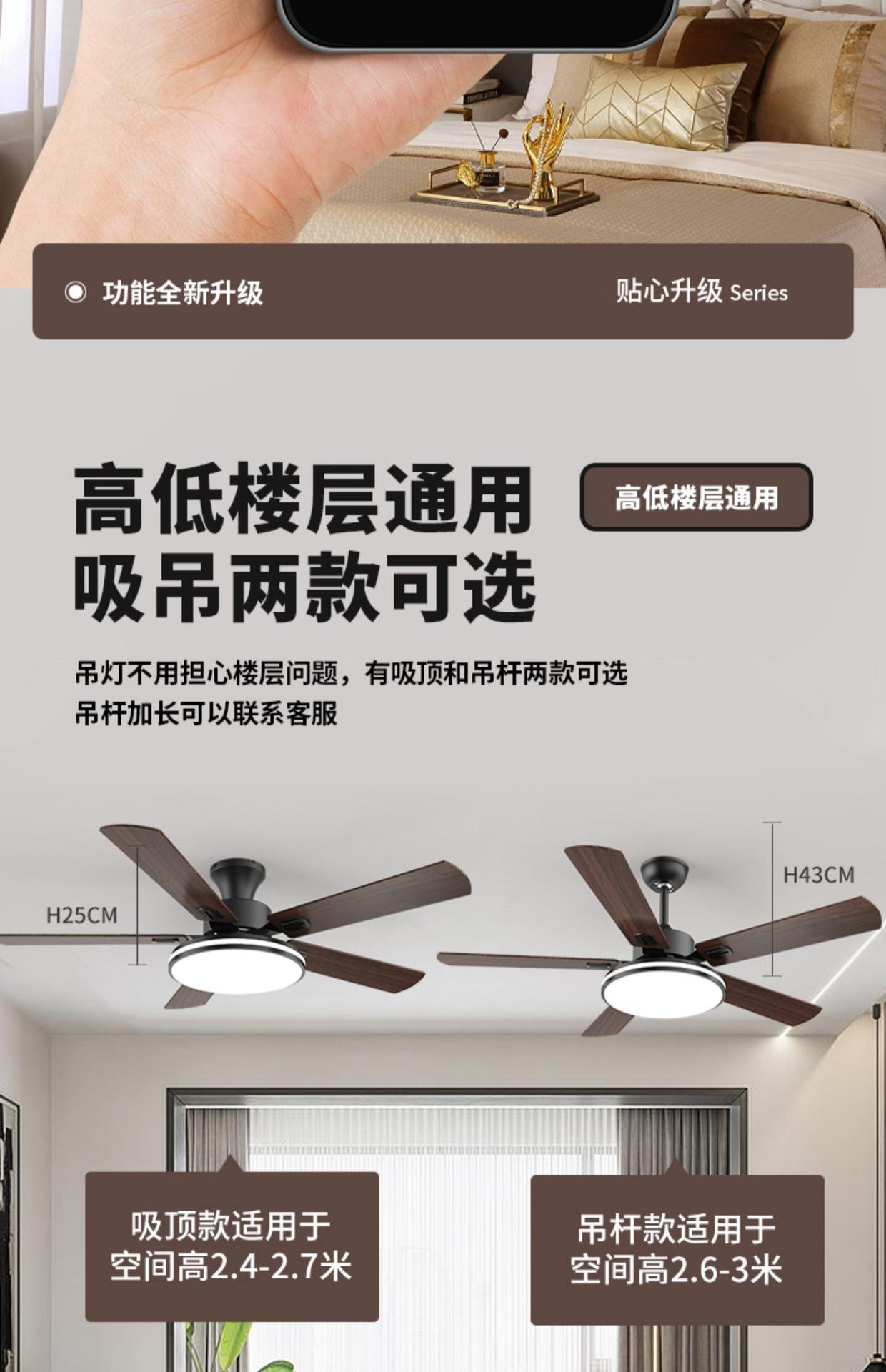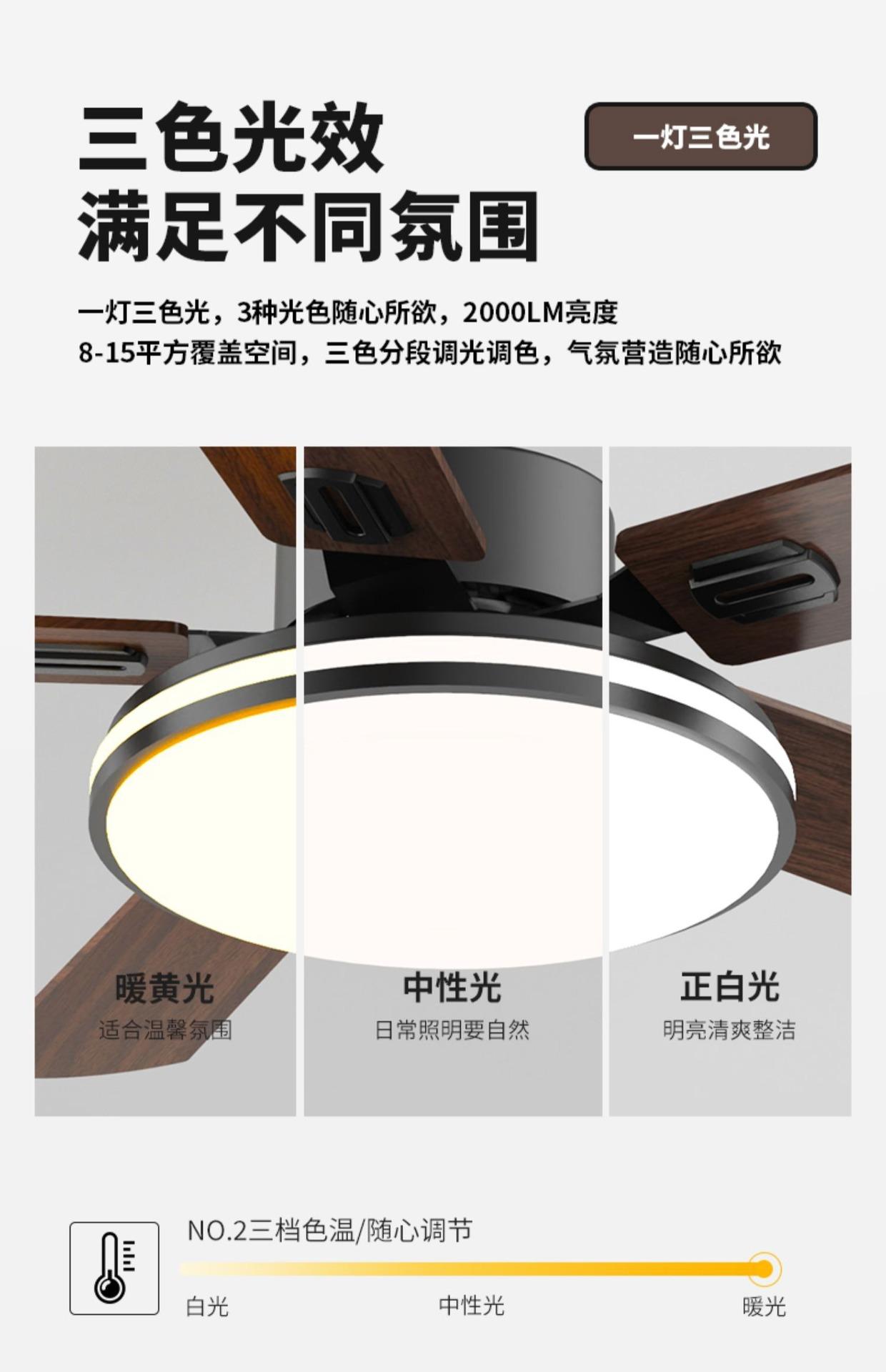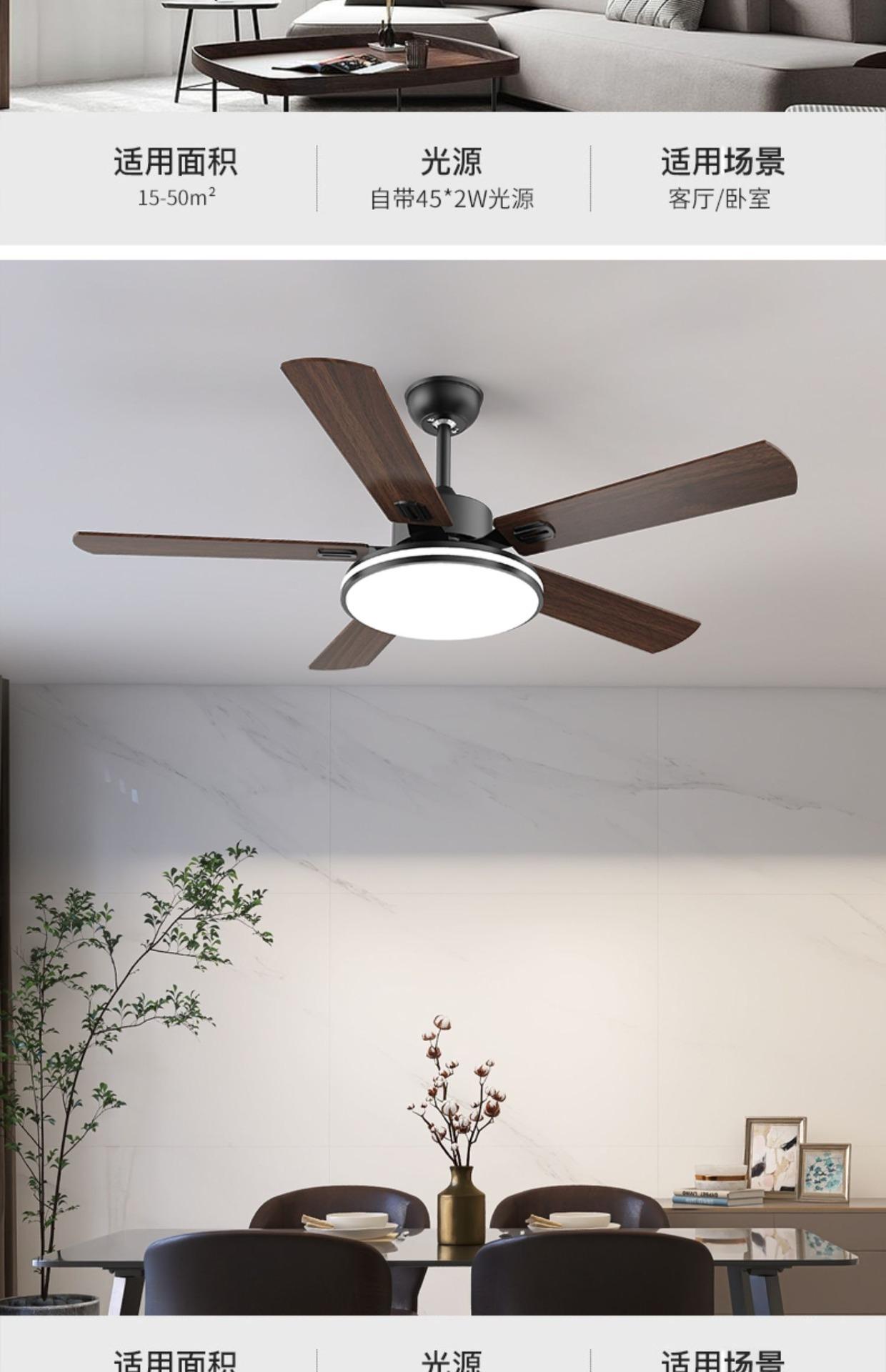 Lámpara de ventilador de techo de hoja plana con veta de madera maciza, lámpara de ventilador con control remoto de conversión de frecuencia inteligente, adecuada para sala de estar, comedor, dormitorio, lámpara de ventilador de estudio