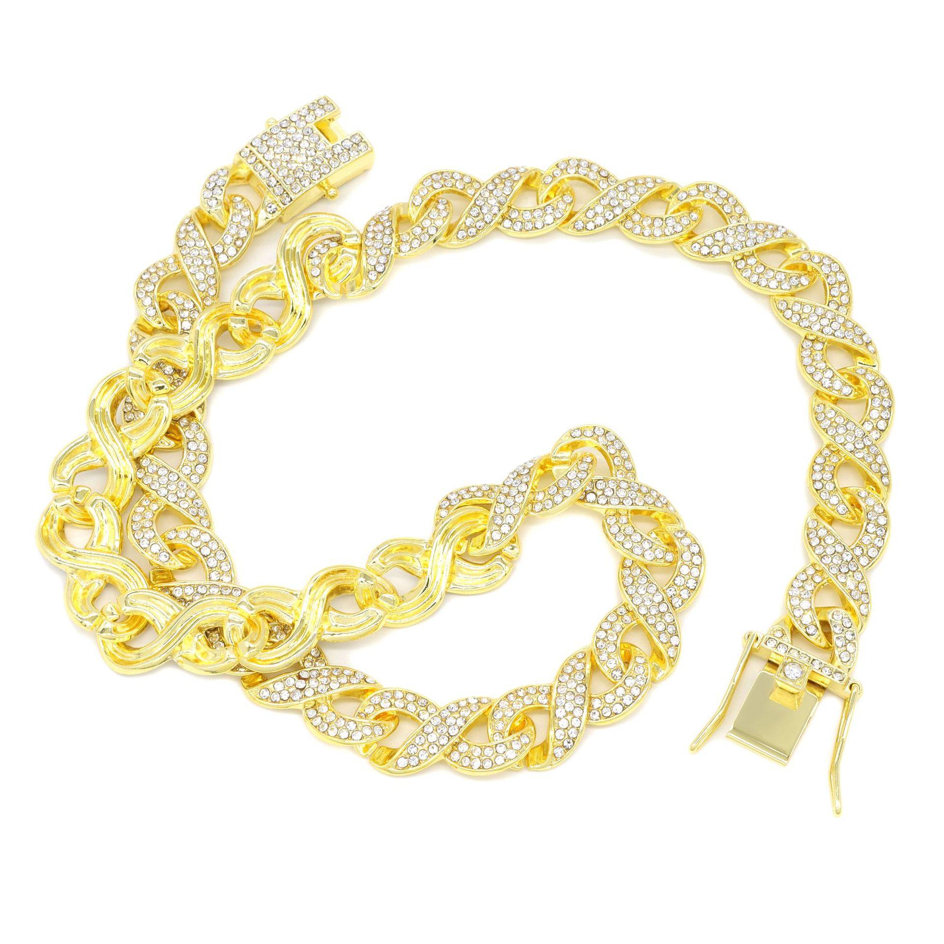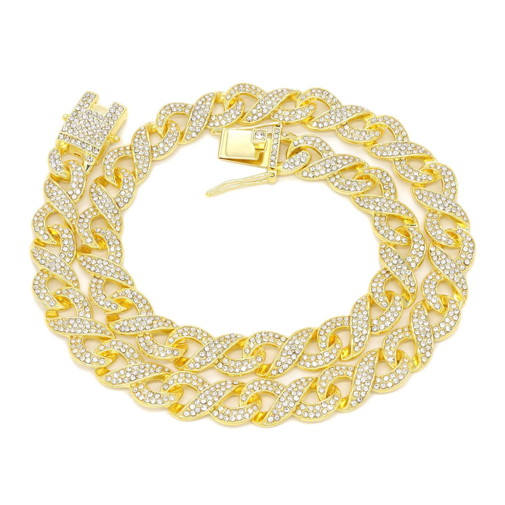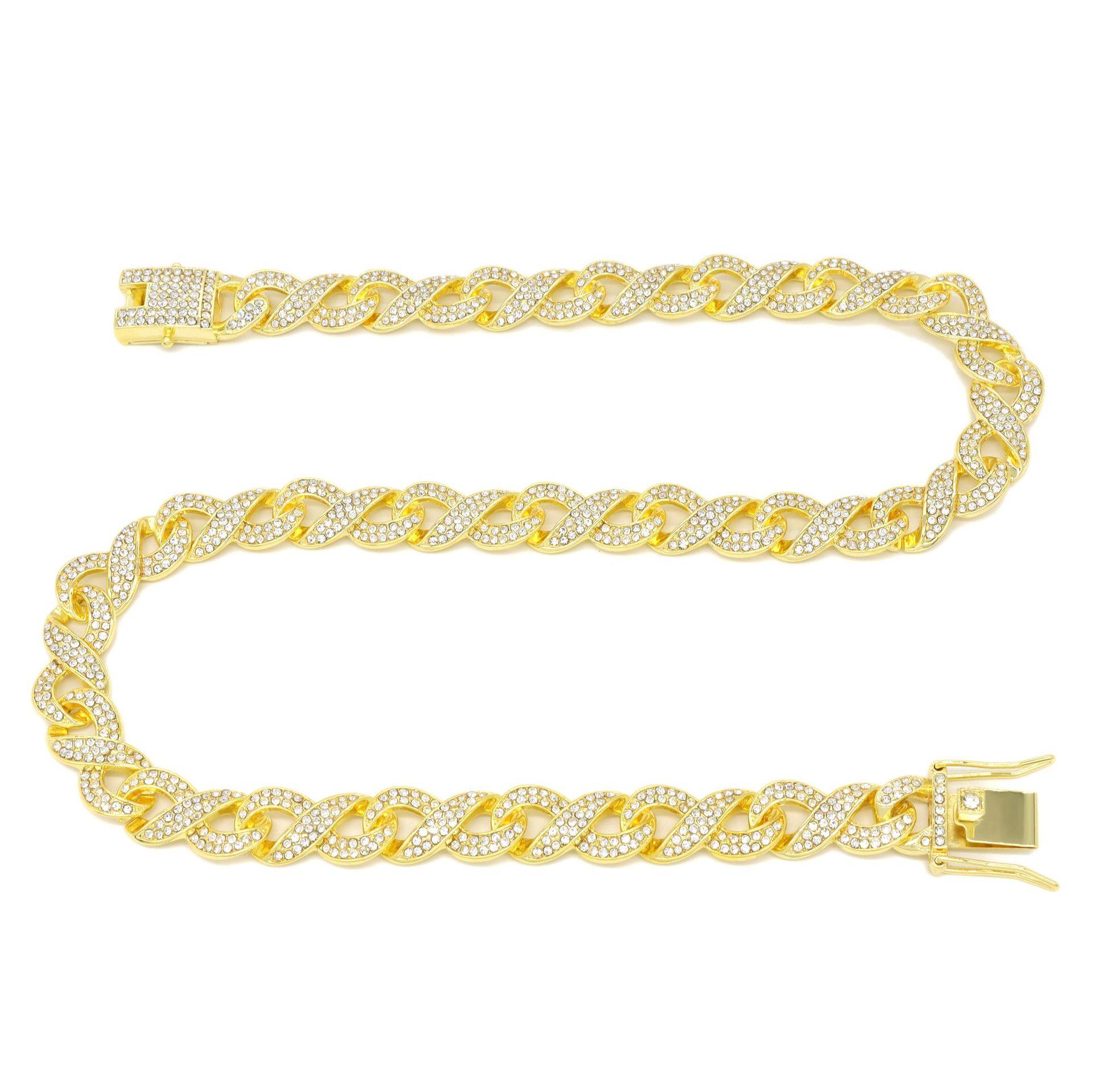 Collar de Cadena con Hebilla Asimétrica en Forma de 8 de Aleación de Venta Caliente Transfronteriza Lleno de Diamantes Collar Cubano Hebilla de Grifo Hip-Hop
