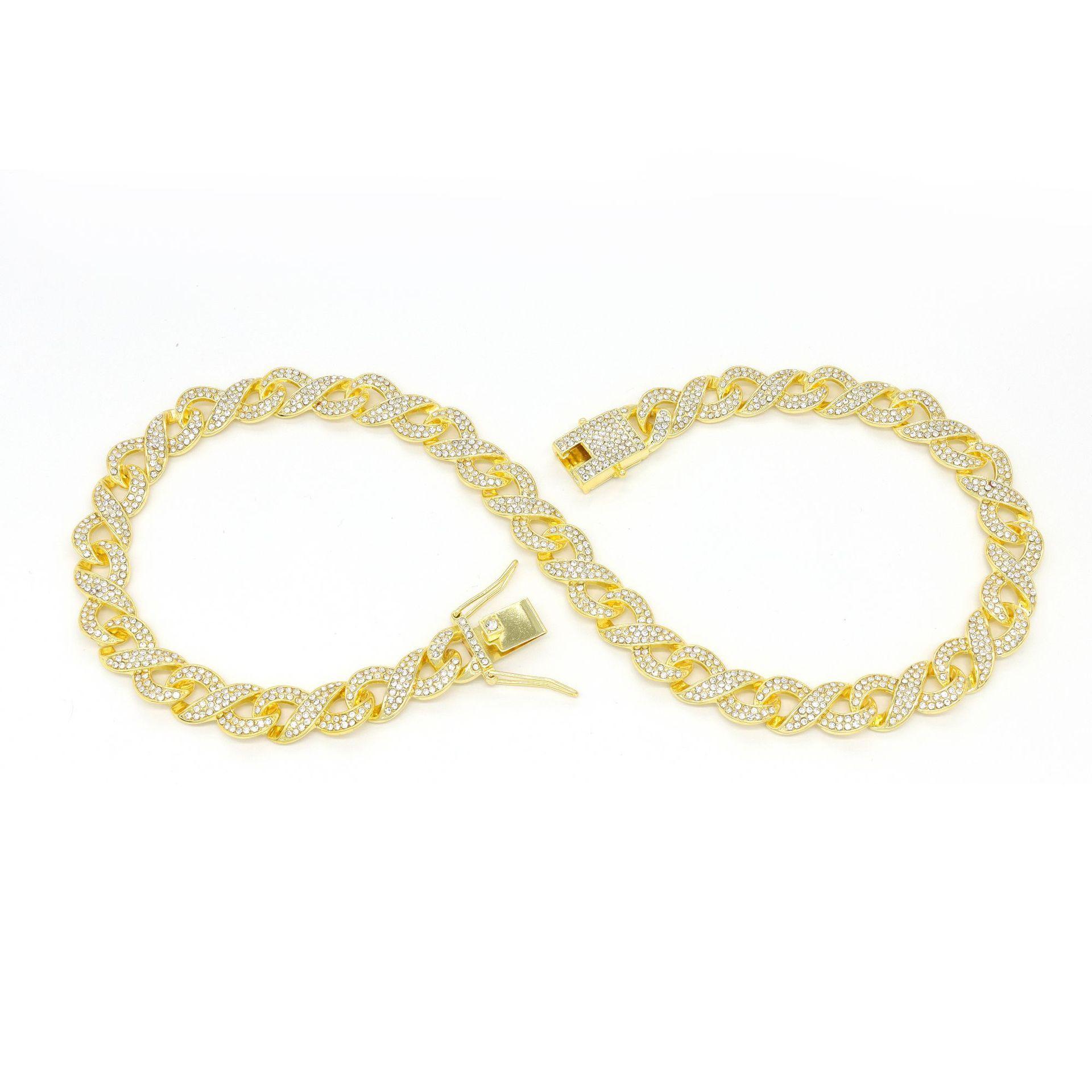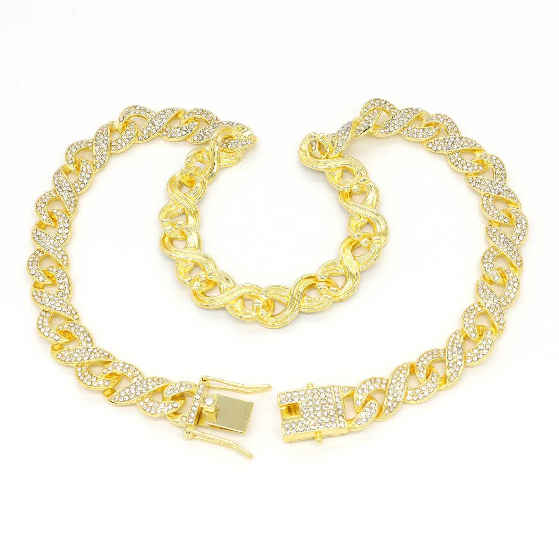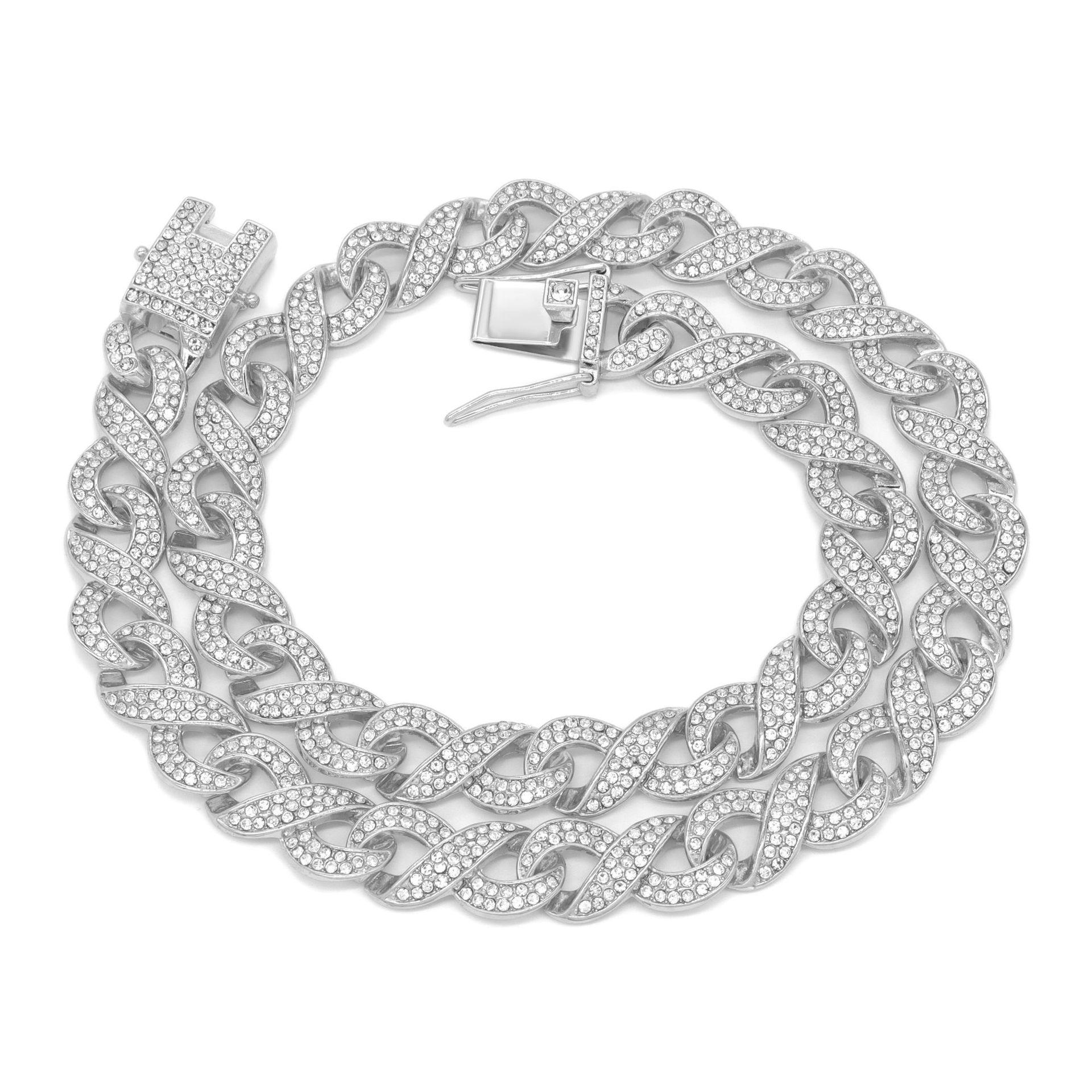 Collar de Cadena con Hebilla Asimétrica en Forma de 8 de Aleación de Venta Caliente Transfronteriza Lleno de Diamantes Collar Cubano Hebilla de Grifo Hip-Hop