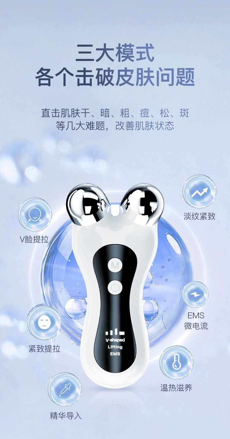 Nuevo instrumento de microcorriente EMS transfronterizo, instrumento de belleza doméstico con rodillo en V, rodillo eléctrico reafirmante y reafirmante para rejuvenecimiento de la piel.