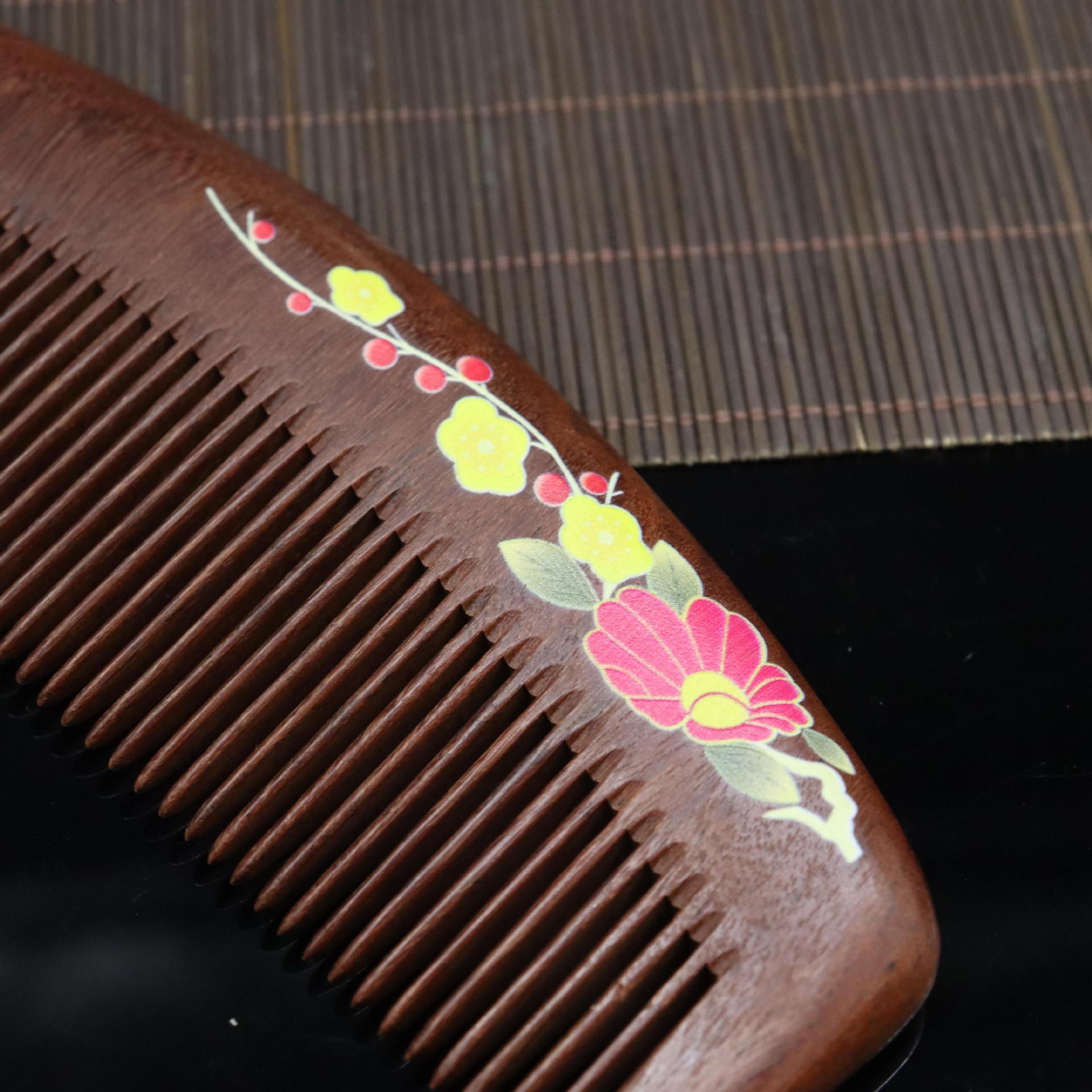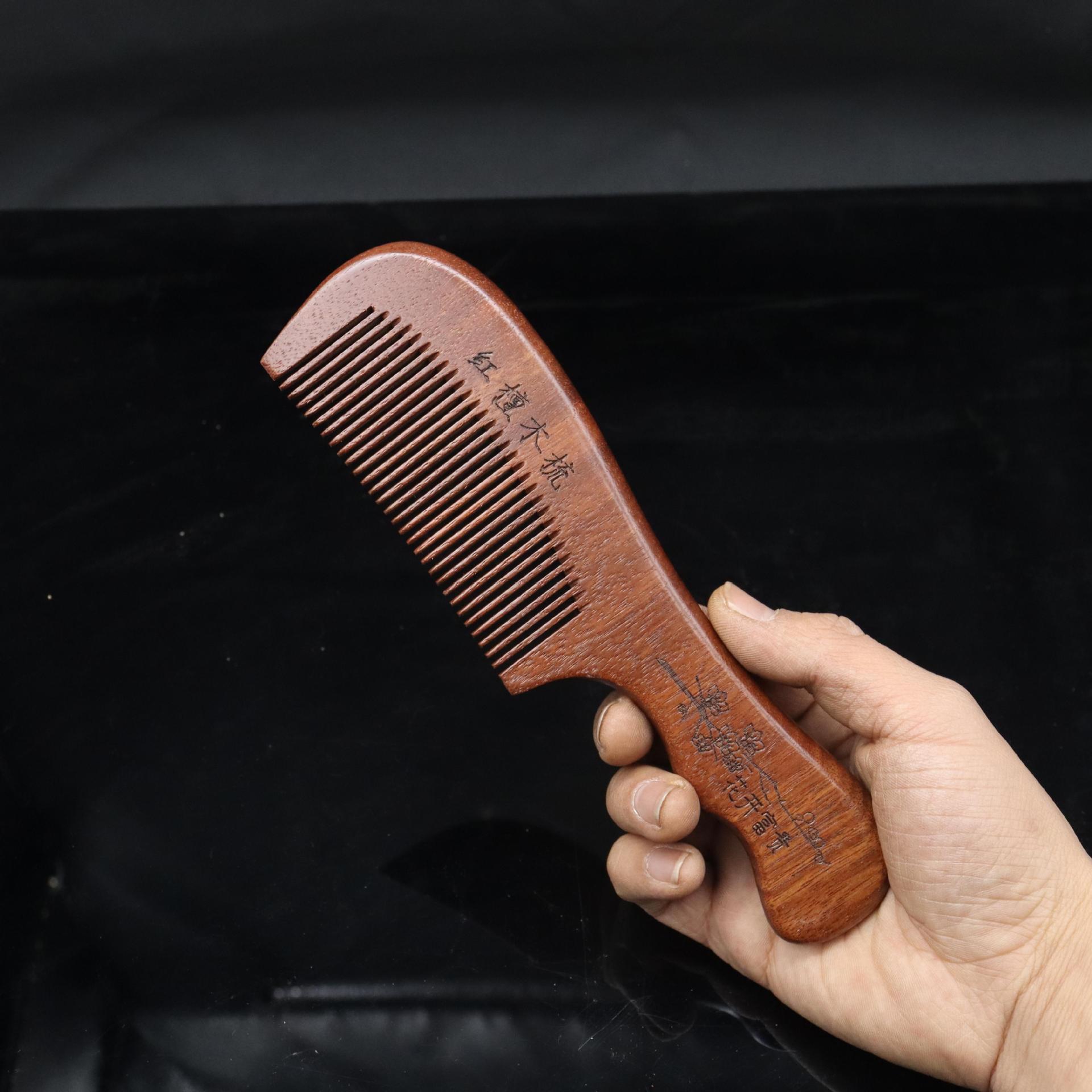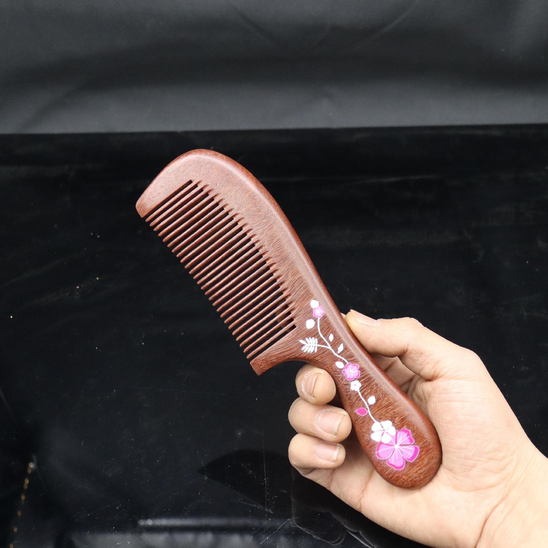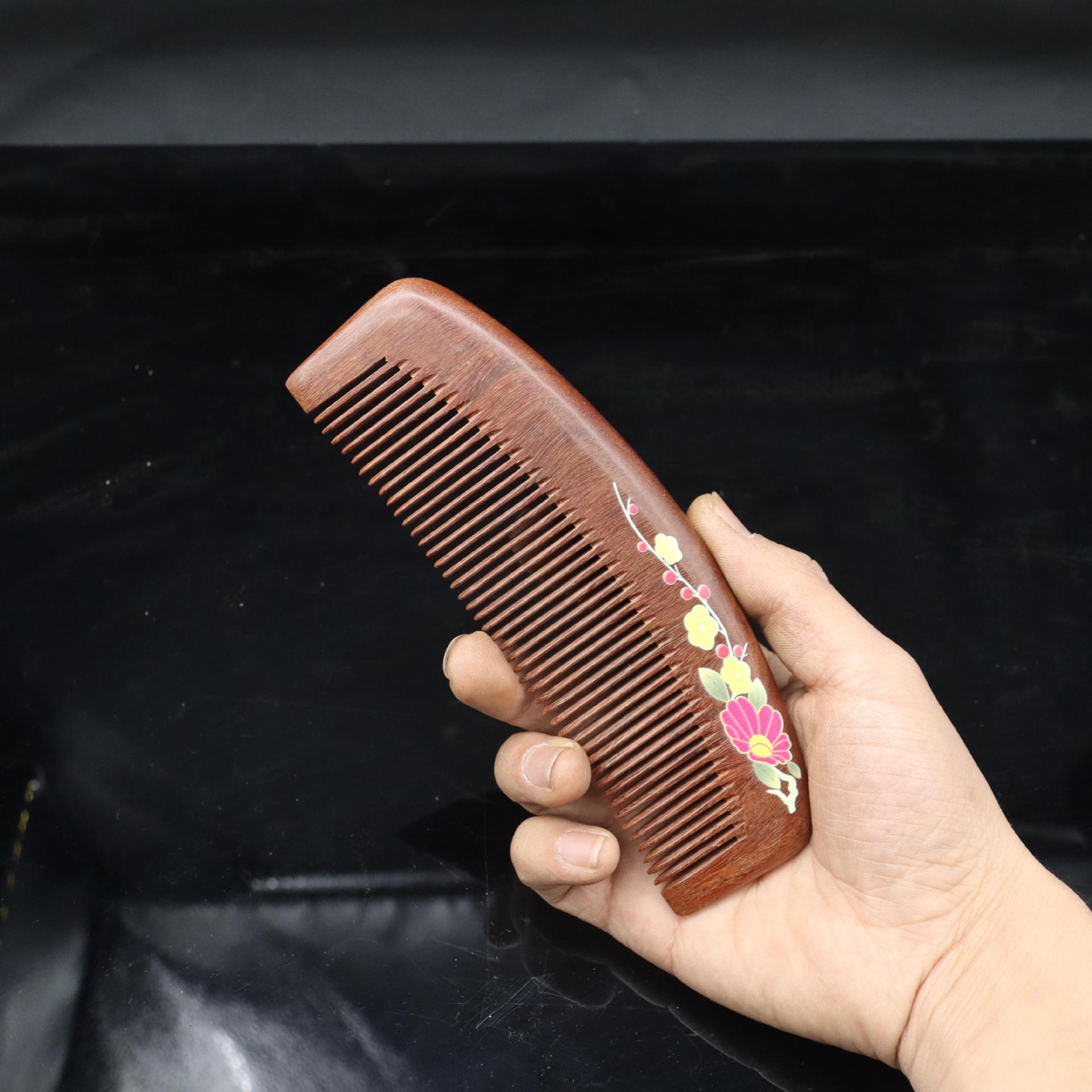 Peine de sándalo rojo tallado con mango extendido, artesanía tradicional pintada, peine de madera, lugar pintoresco, puesto, volumen para caminar, peine de sándalo
