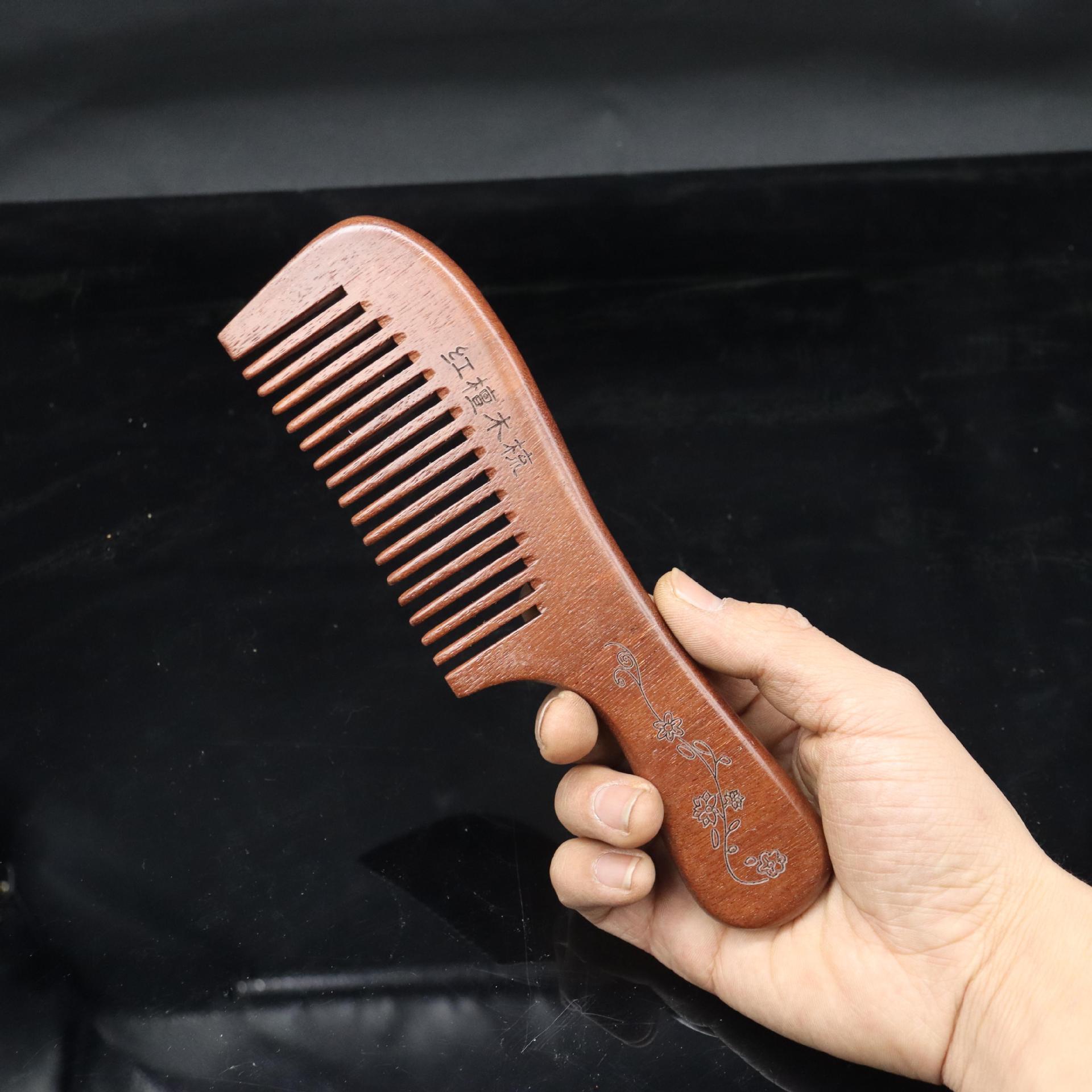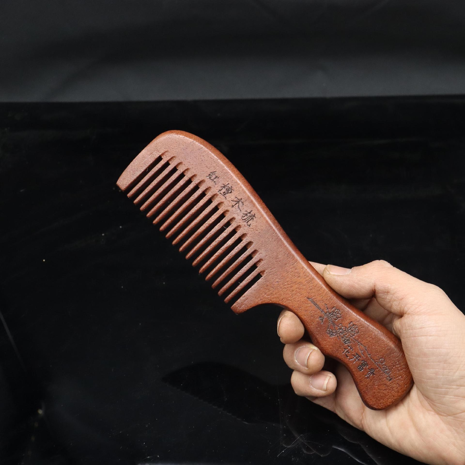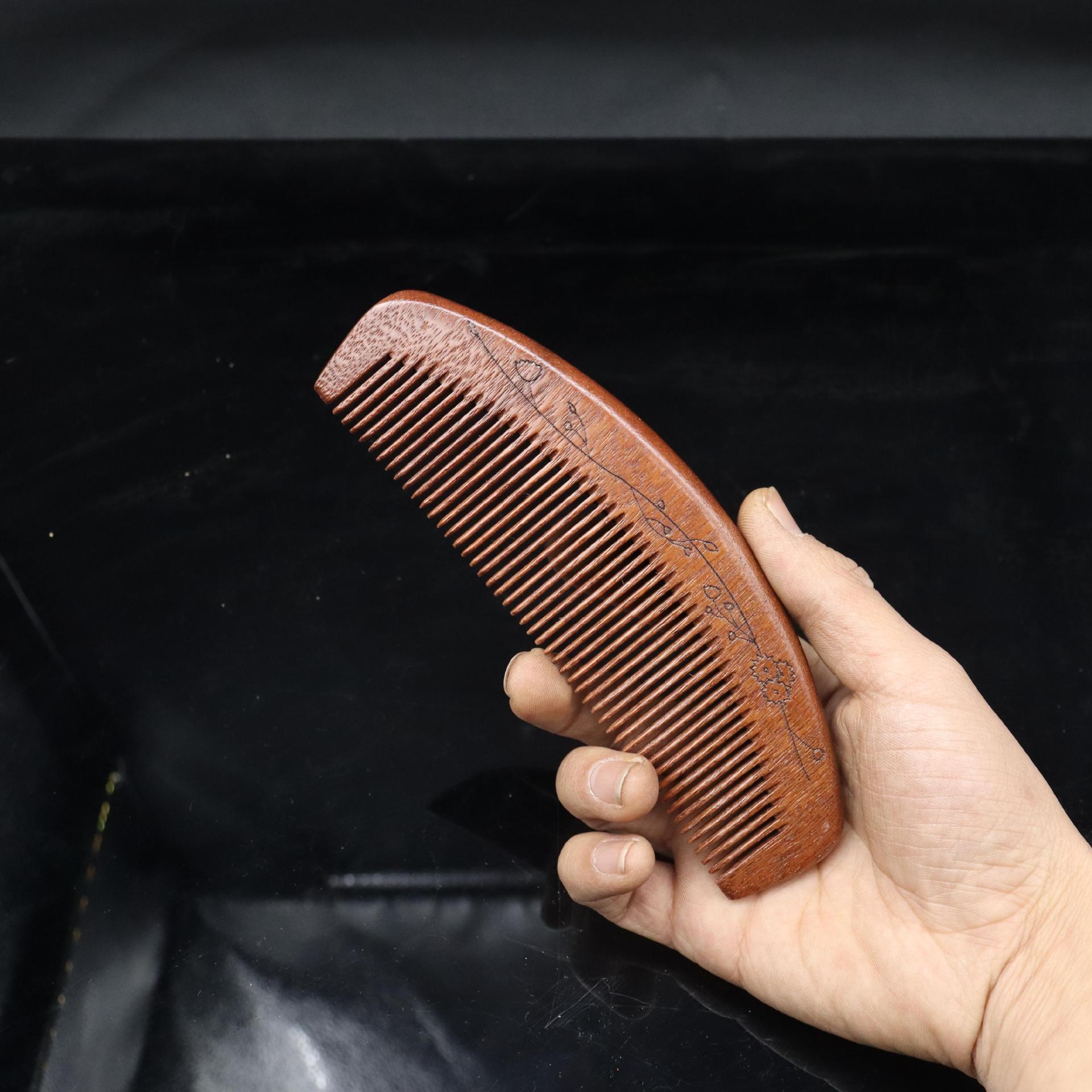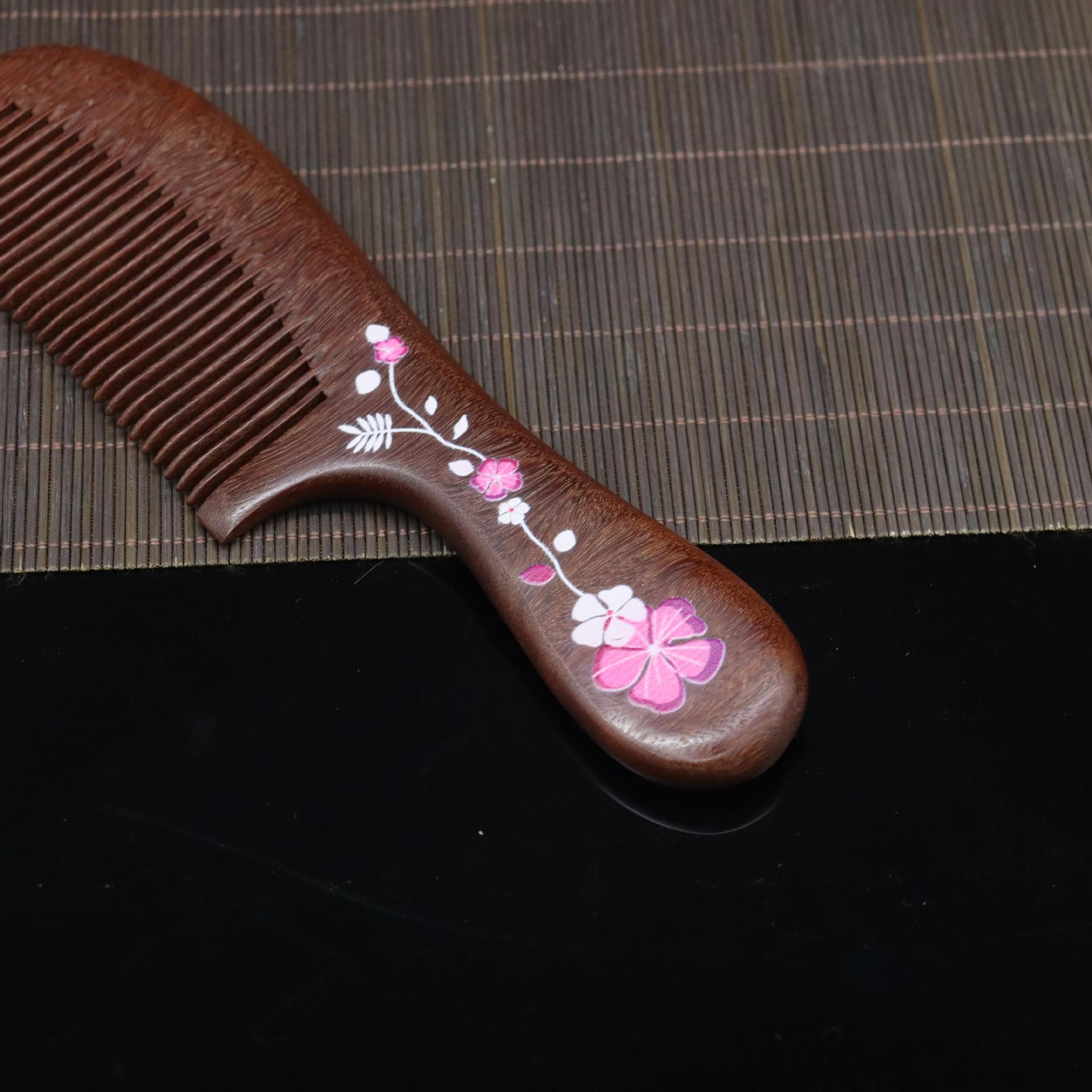 Peine de sándalo rojo tallado con mango extendido, artesanía tradicional pintada, peine de madera, lugar pintoresco, puesto, volumen para caminar, peine de sándalo