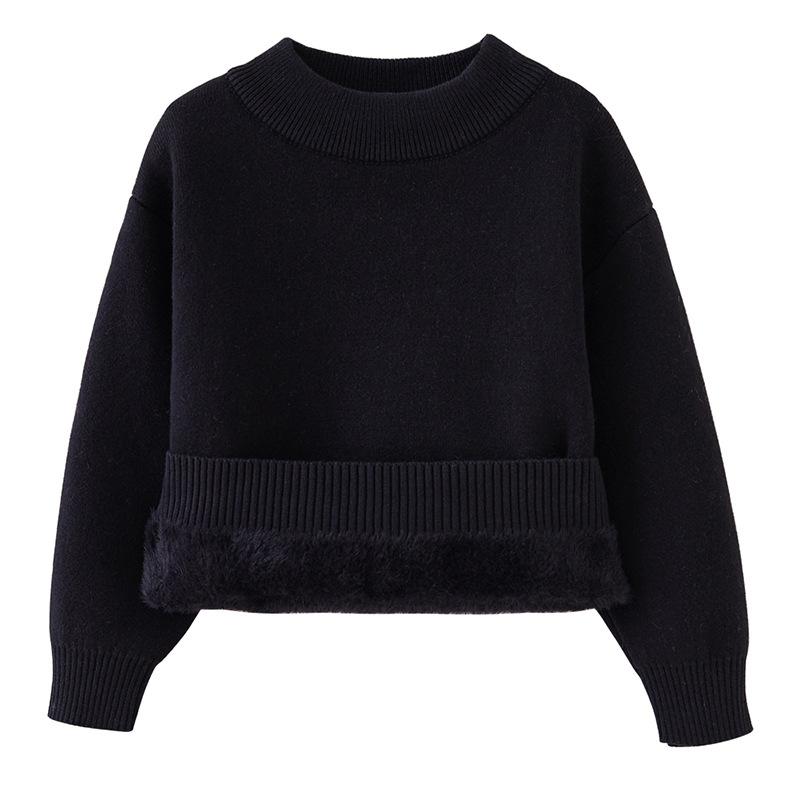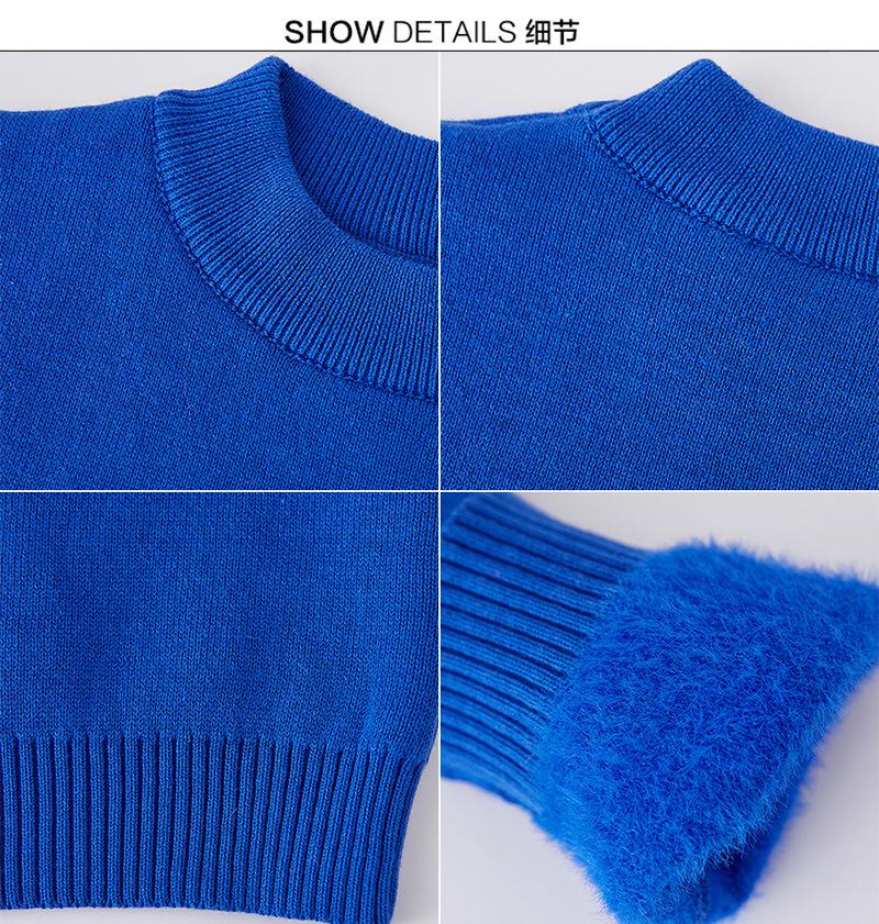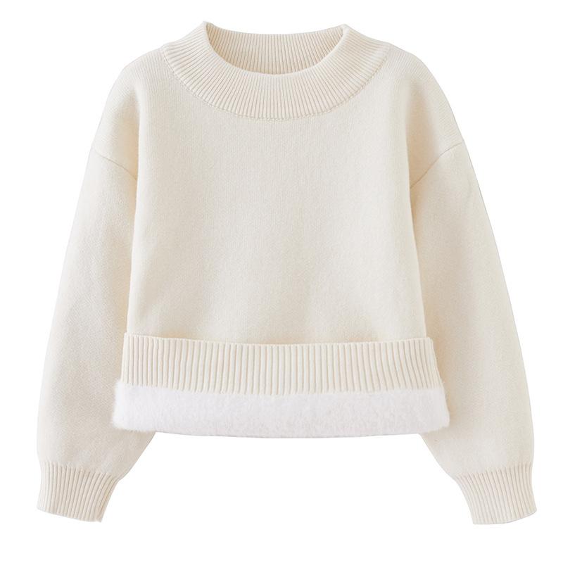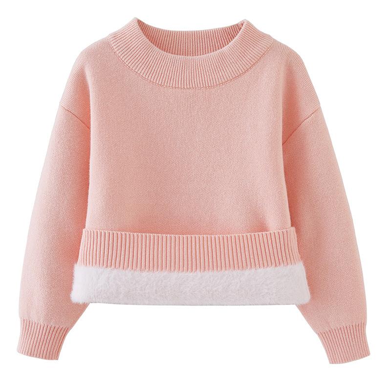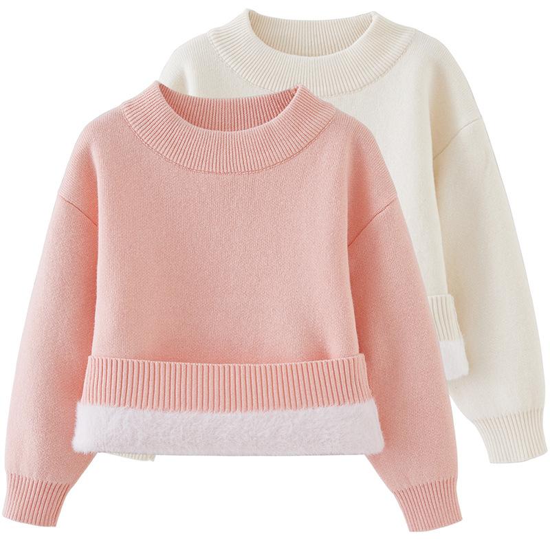 Ropa de invierno suéter con forro polar para niñas, una pieza de terciopelo grueso, cuello redondo cálido, para niños, bebé, punto, camiseta interior, top al por mayor