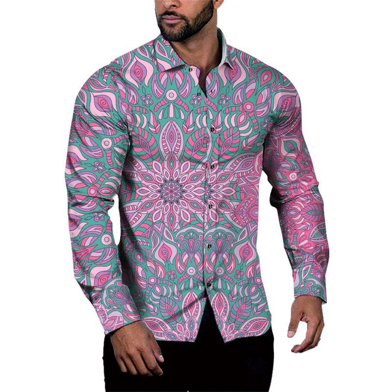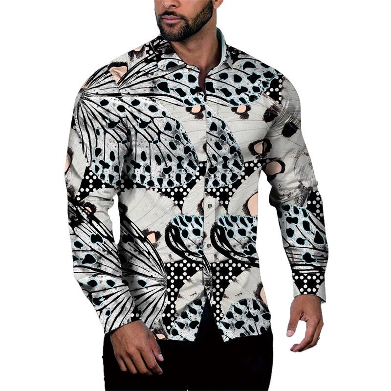 Camisa informal de moda para hombre, nueva primavera 2023, con solapa, manga larga y estampado digital 3D
