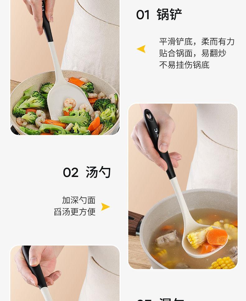 Spatula [cream black silicone/high temperature resistance]], Soup spoon [cream black silicone/high temperature...