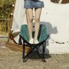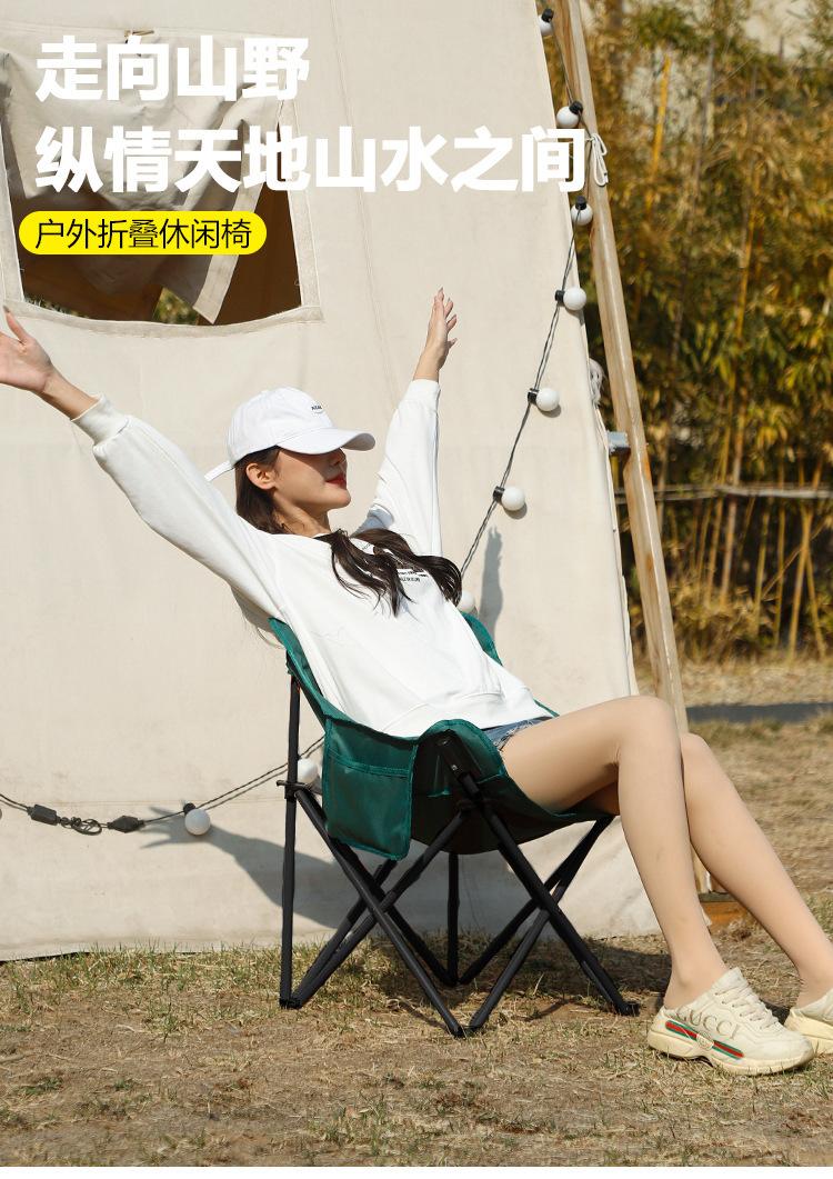 Silla plegable para acampar al aire libre, portátil, con forma de luna, para playa, taburete de pesca, con respaldo de arco