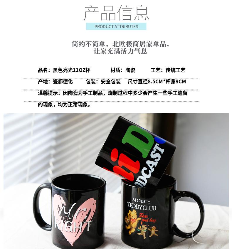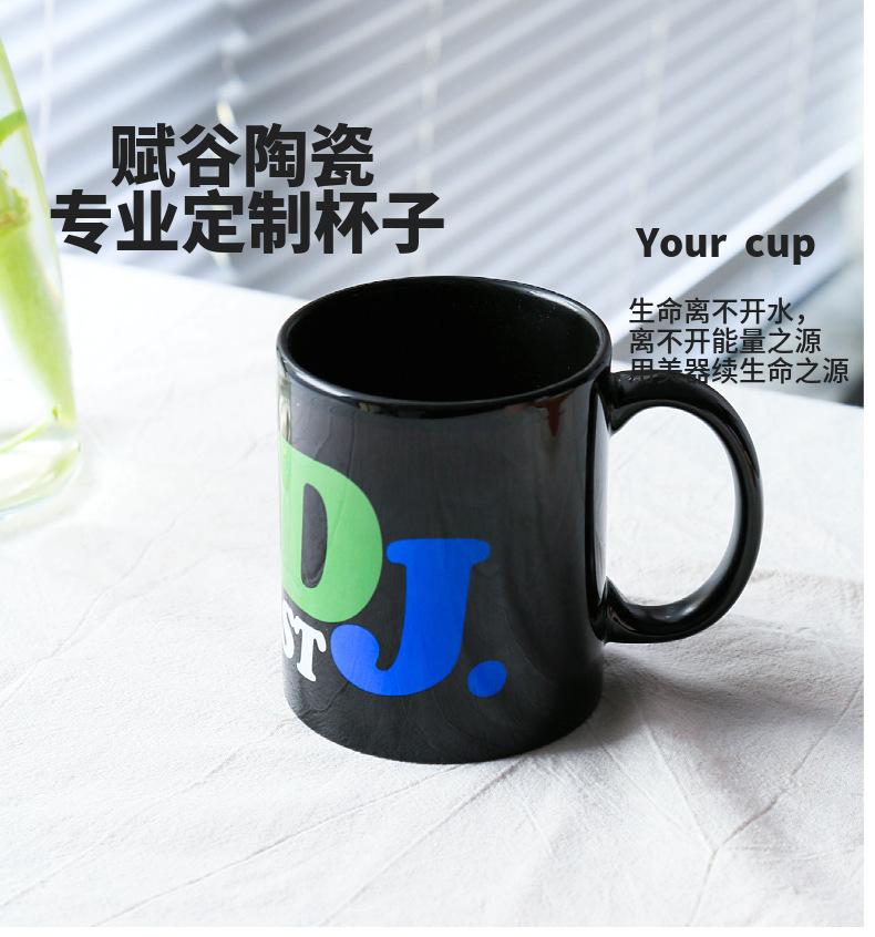 Taza de Cerámica con Logo Personalizado Negro Impresión por Transferencia de Calor 11oz Taza de Café Ventas Calientes Transfronterizas Taza de Agua Regalo de Negocios