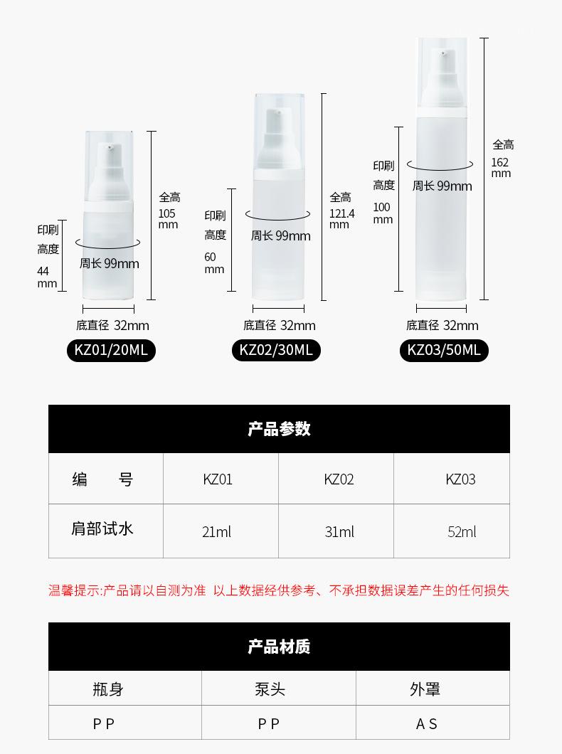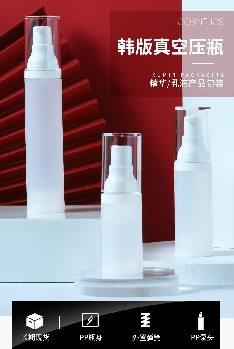 Envase Xumin personalizado, botella de esencia cosmética esmerilada de 20-30 ml, botella de loción al vacío de 50 ml