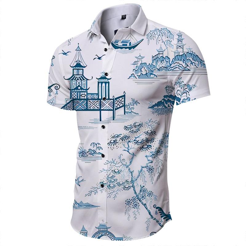 Camisa tipo cárdigan de manga corta con botones estampados con personalidad para hombre, novedad de verano de 2023, comercio exterior