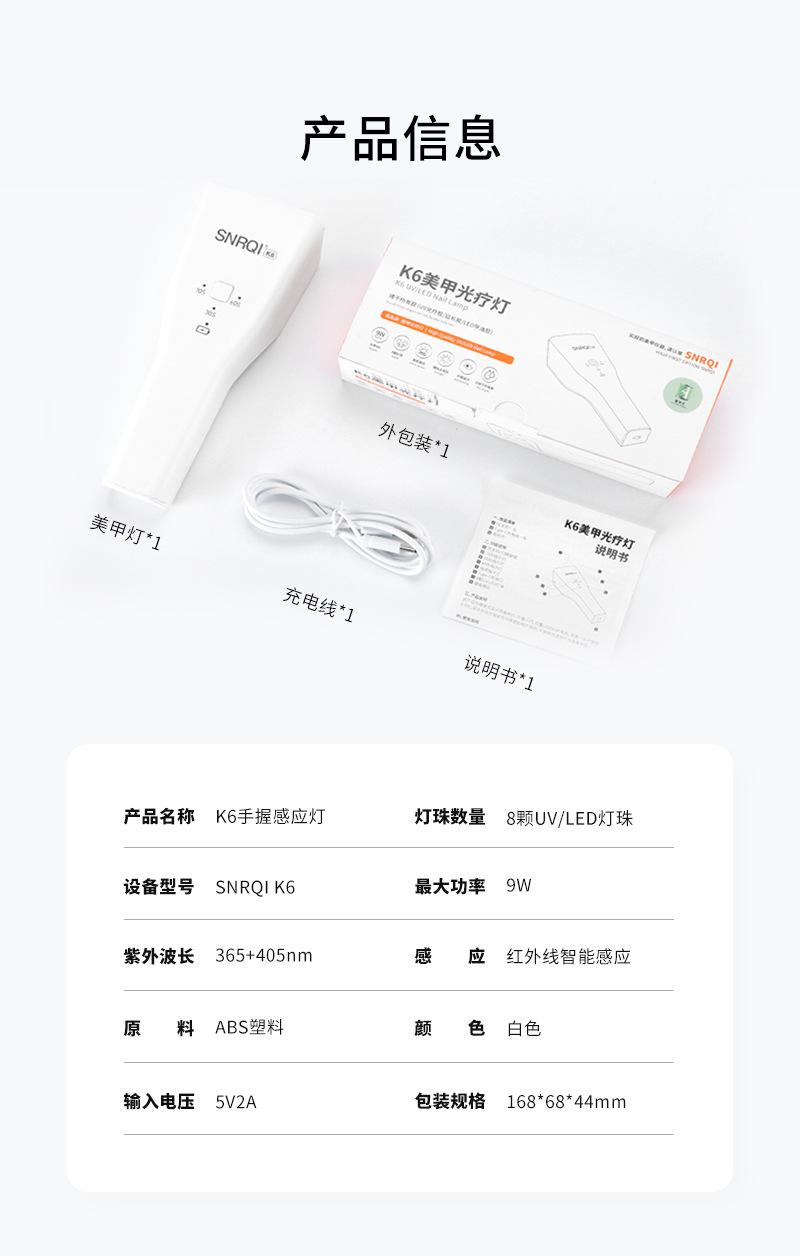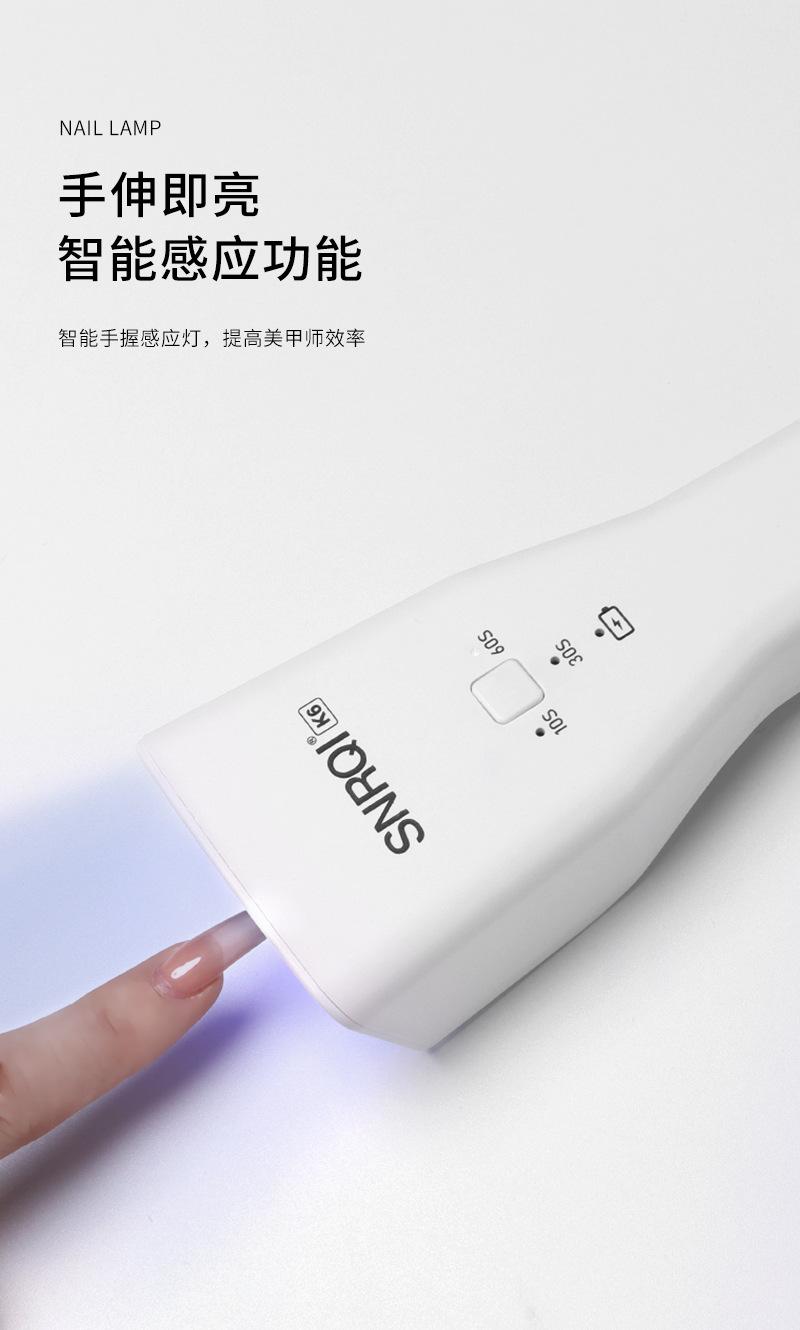 Lámpara de inducción portátil para uñas K6, con almacenamiento de energía inalámbrico, OEM/ODM, para fototerapia de uñas