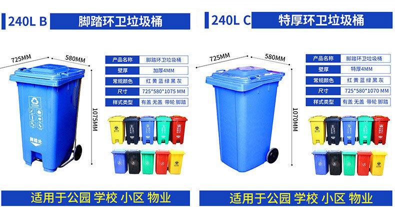 Contenedor de Basura Sanitario de 240L Colgante para Exterior Clasificación Plástico Pedal de Pie Contenedor de Basura Grande Propiedad Comunitaria Remolque con Tapa